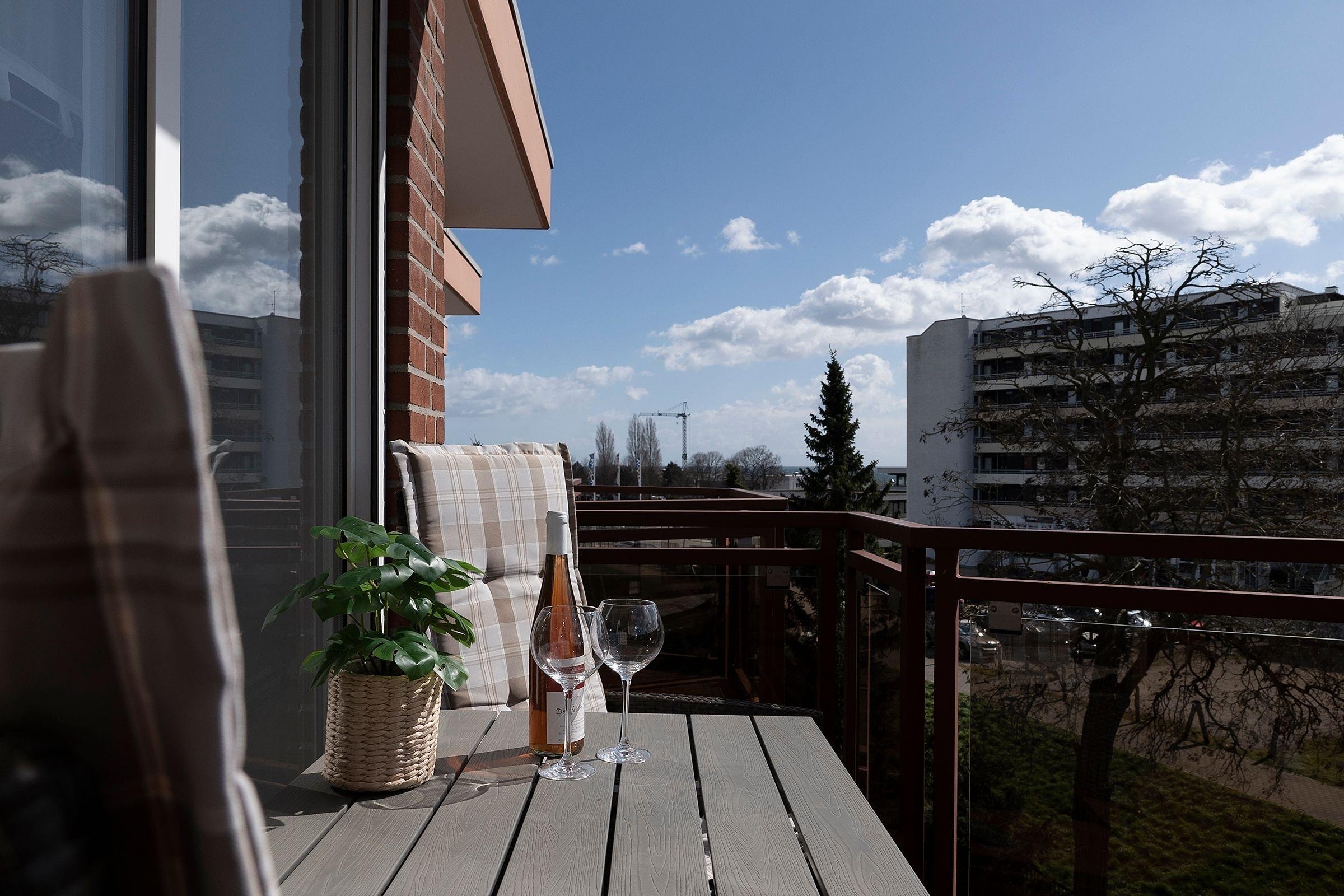 Alles was man braucht vorhanden, schöne Aufteilung und sogar 2 Balkons. Elektrische Außenrollos perfekt, wenn man gern dunkel schläft (oben als auch unten). Sonne von morgens bis abends aufm Balkon und eine super Lage. Der Parkplatz könnte für größere Autos schwierig werden. Bett leider recht hart.