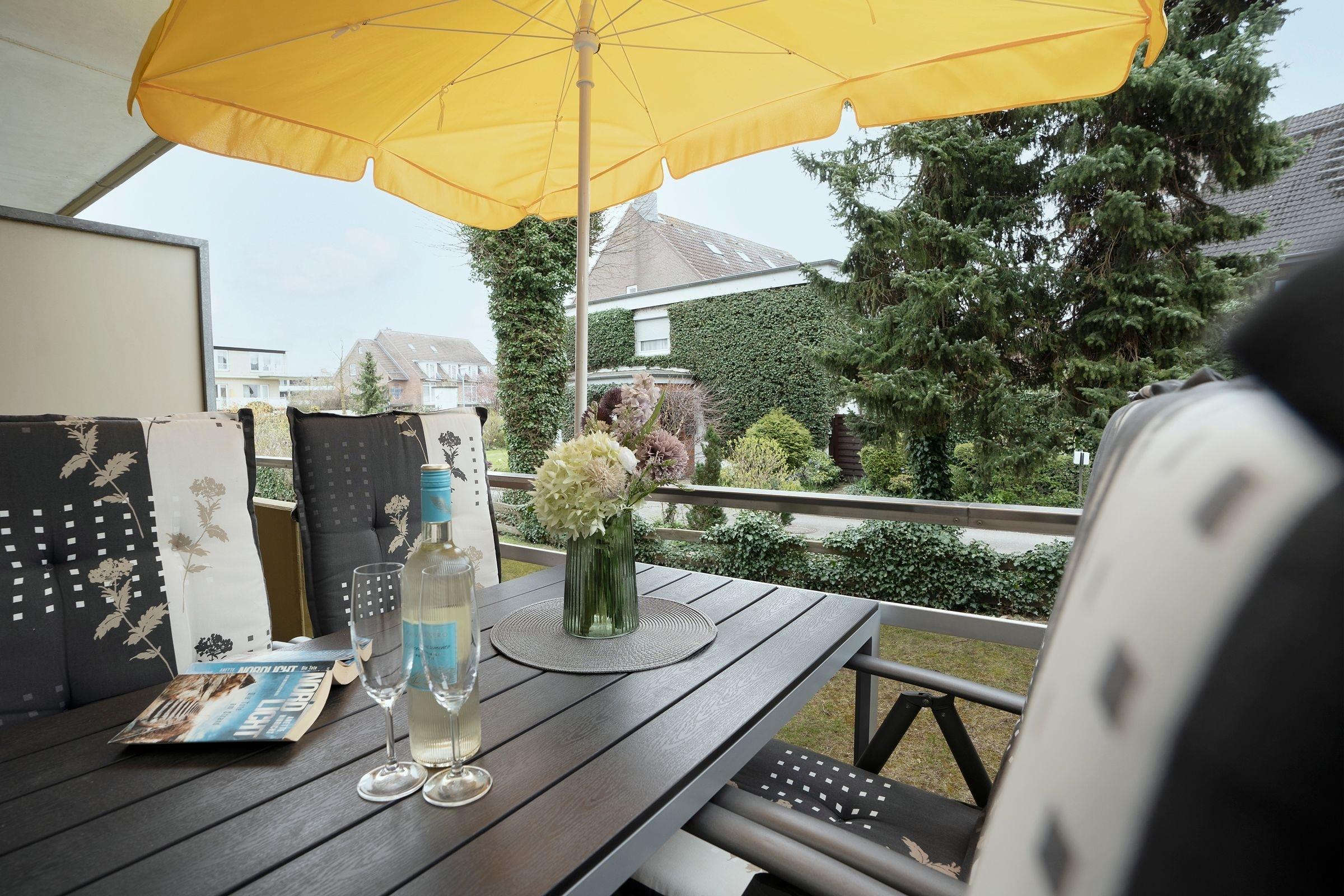 Gemütliche 2-Zimmer-Ferienwohnung in Grömitz mit Balkon und Garage, nahe Ostseestrand und Promenade.