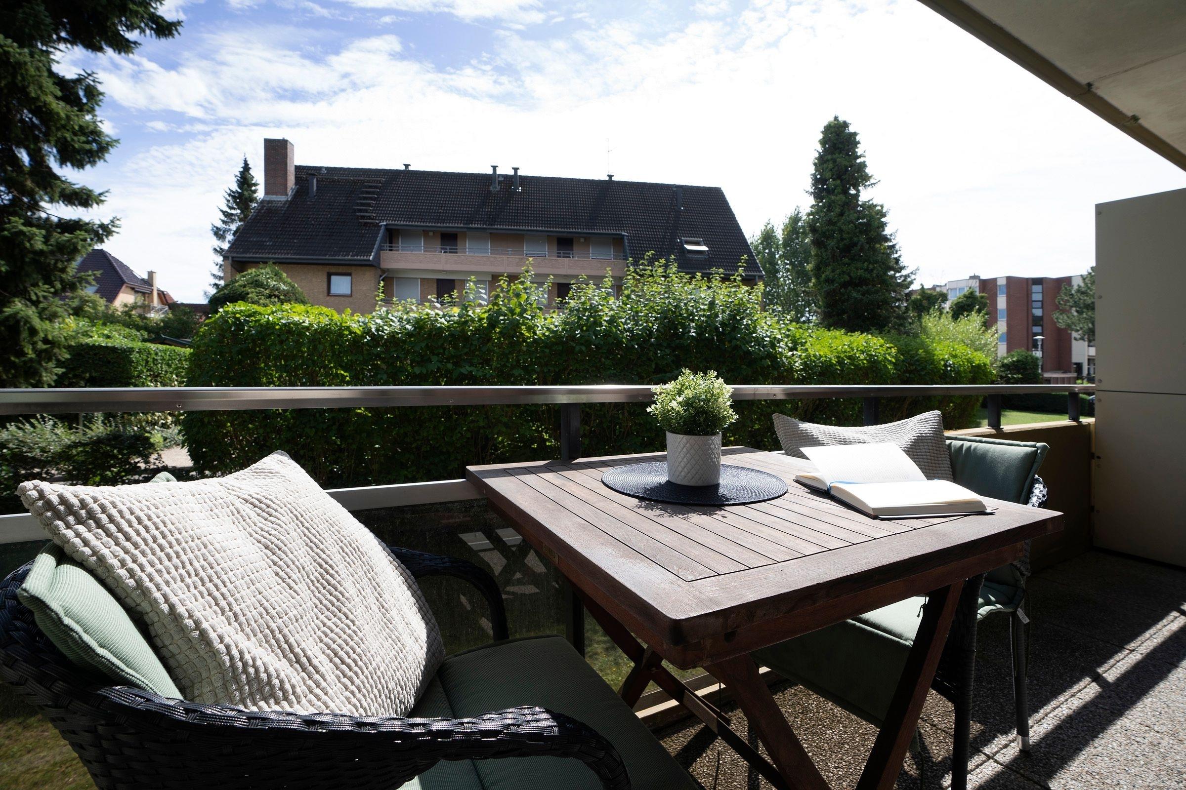 Gemütliche Einrichtung, Südost-Balkon für ein sonniges Frühstück und eine gute Lage erwarten Sie in dieser 2-Zimmer-Ferienwohnung für bis zu 2 Personen.