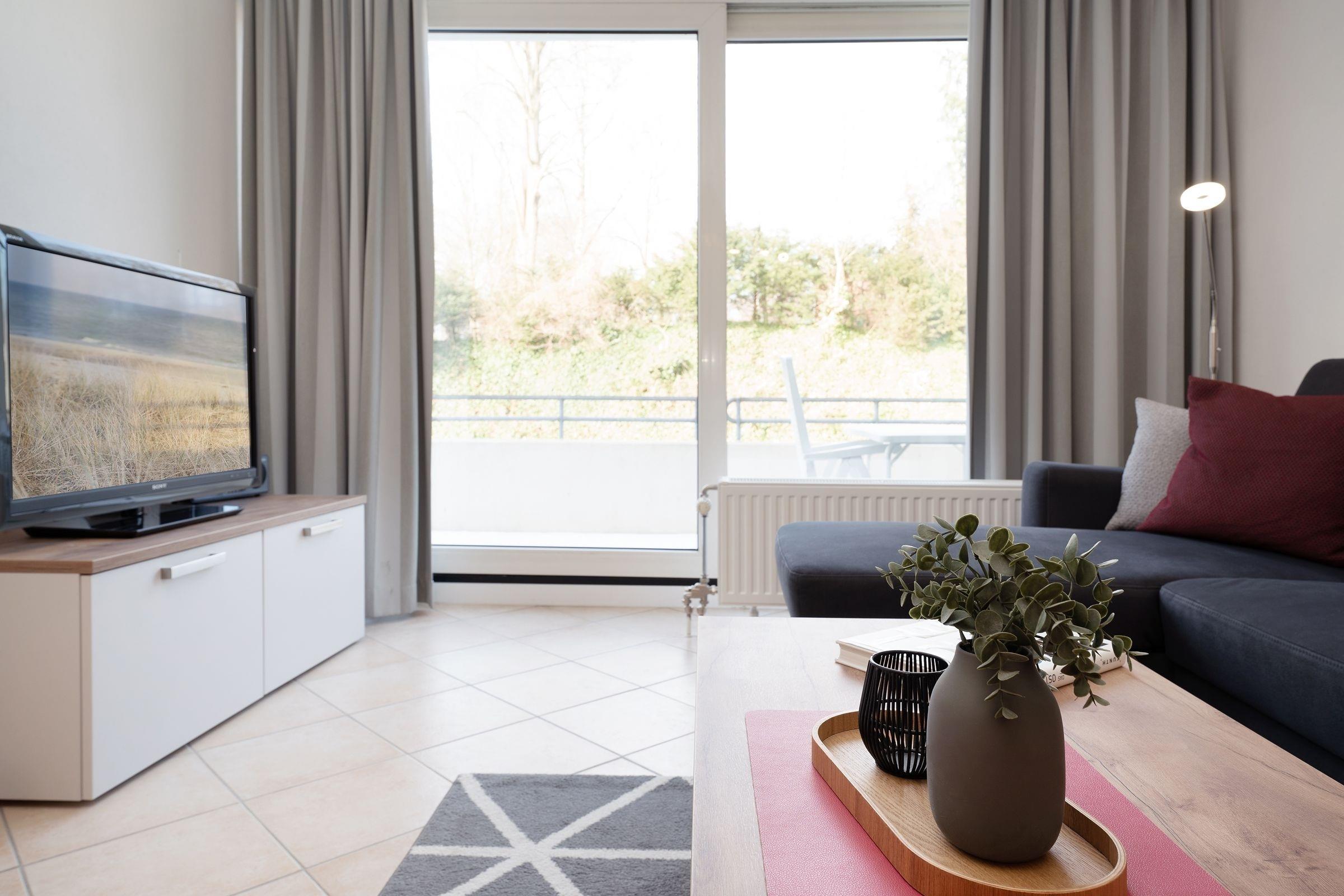 Moderne 2-Zimmer-Ferienwohnung mit Balkon nahe Kurpark und Ostseestrand in Grömitz.