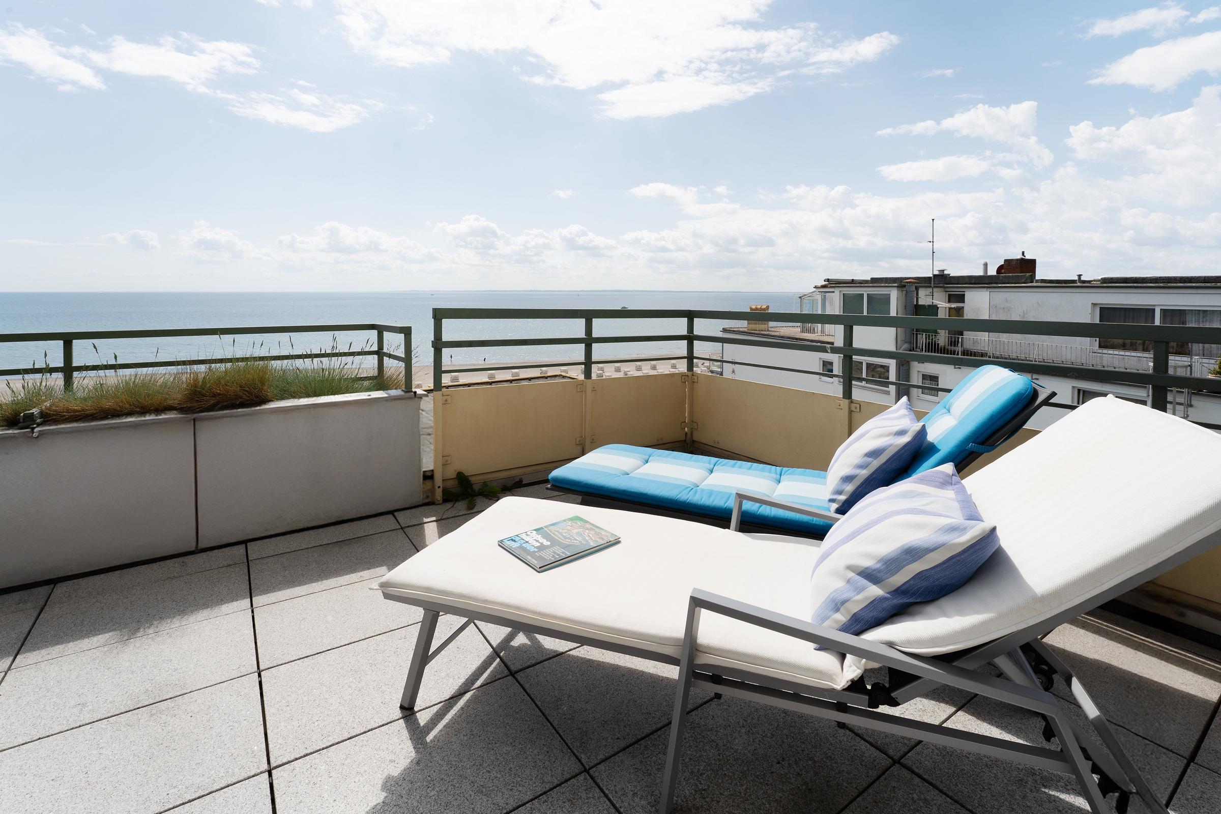 Exklusive Ferienwohnung Seestern in Grömitz mit Meerblick und Balkonterrasse, nur 50m vom Ostseestrand entfernt.