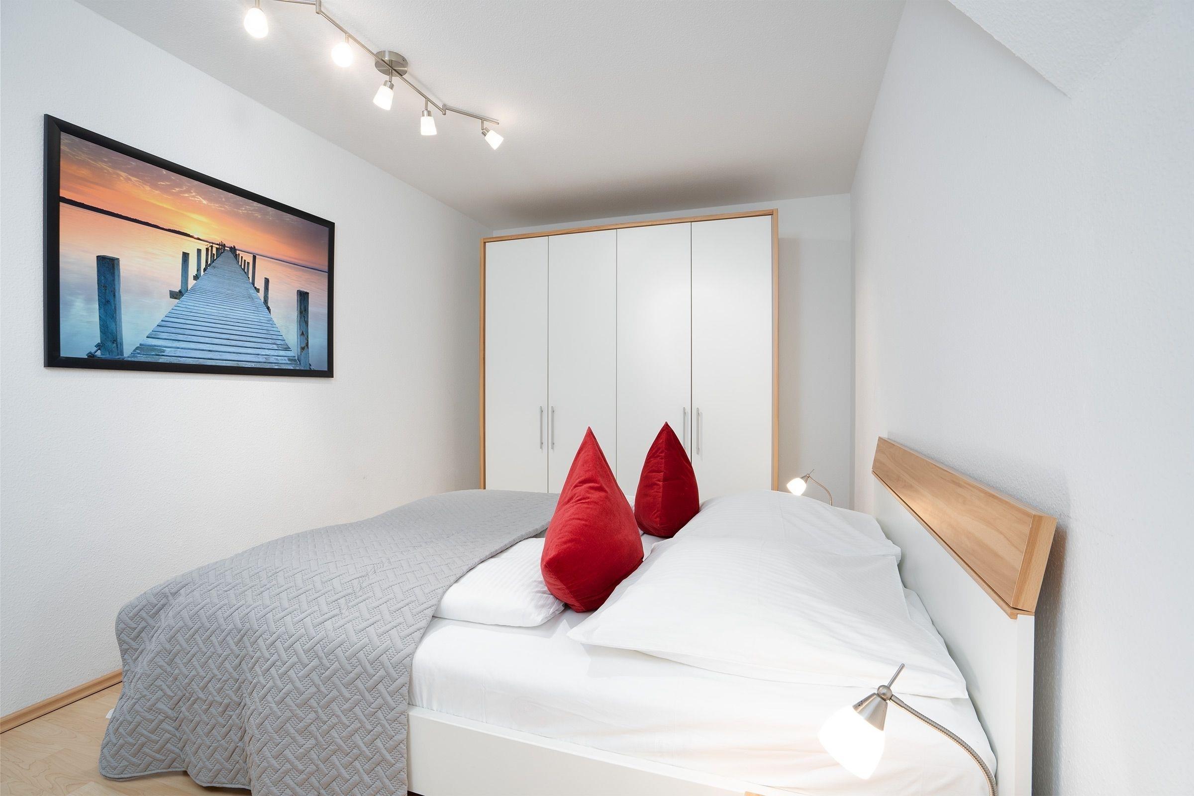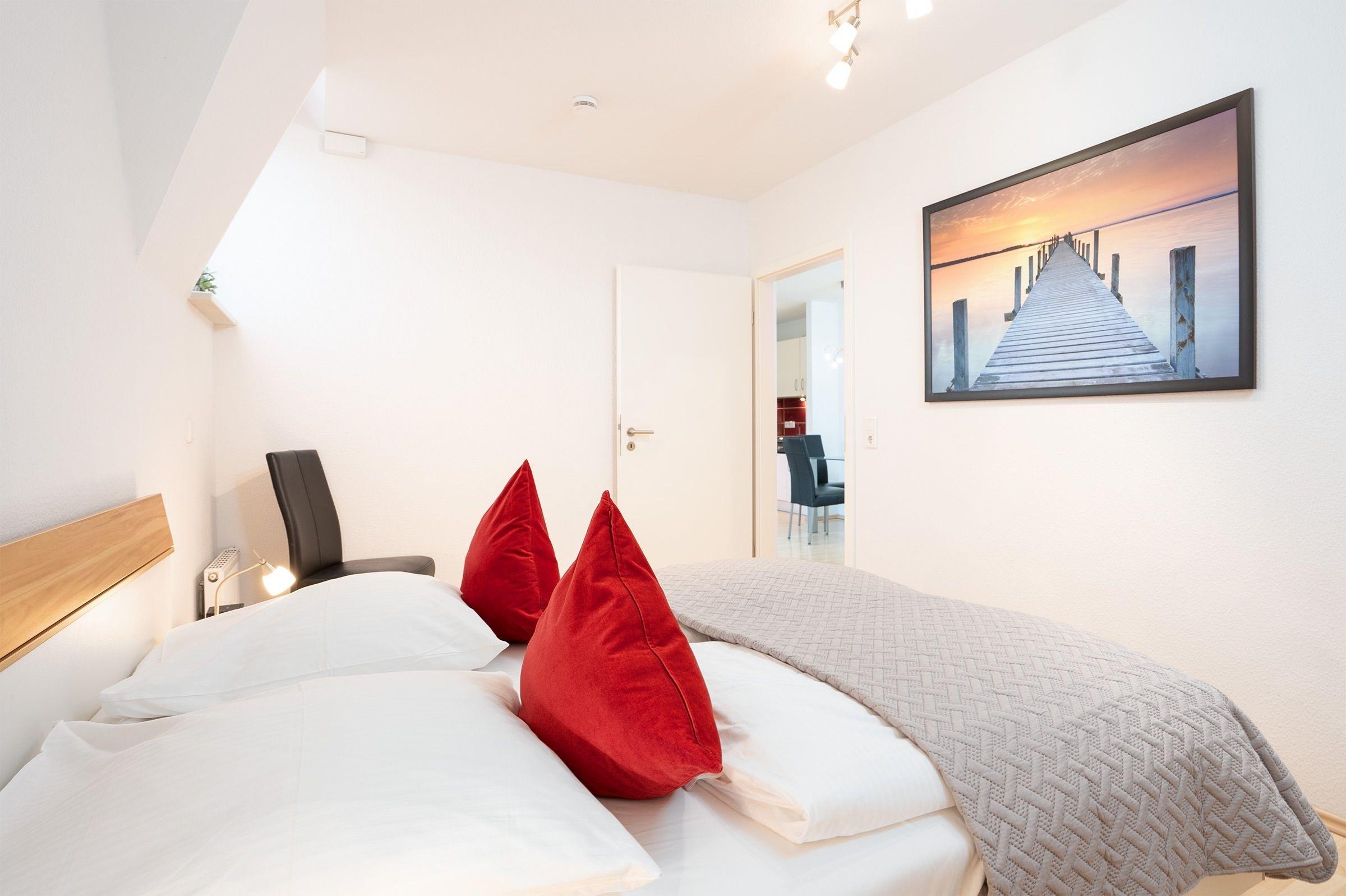 Die Wohnung liegt in der 1. Etage eines gepflegten Mehr-Appartement-Haus mit Fahrstuhl und verfügt über 2 schwellenlose Zimmer. Gemütlich eingerichtet und hochwertig möbliert lassen sich hier die wohlverdienten Urlaubstage komfortabel verbringen. Das Wohnzimmer ist ausgestattet mit einer Couch- und Essecke sowie einer offenen Küche, in der einem gemütlichen Kochabend nichts entgegensteht. Die Couch verfügt über eine Schlaffunktion (150x210 cm) und bietet somit Platz für einen 3. Urlaubsgast. Der Balkon zur Westseite (kleine Schwelle) lädt zum morgendlichen Frühstück ein, der Bäcker mit frischen Brötchen ist direkt um die Ecke. Im separaten Schlafzimmer erwartet Sie ein großes Doppelbett (160x200 cm) in dem Sie Ihren Urlaub erholsam genießen können. Ein Bad mit ebenerdiger Dusche sowie ein WC und ein Waschbecken rundet dieses Feriendomizil ab.