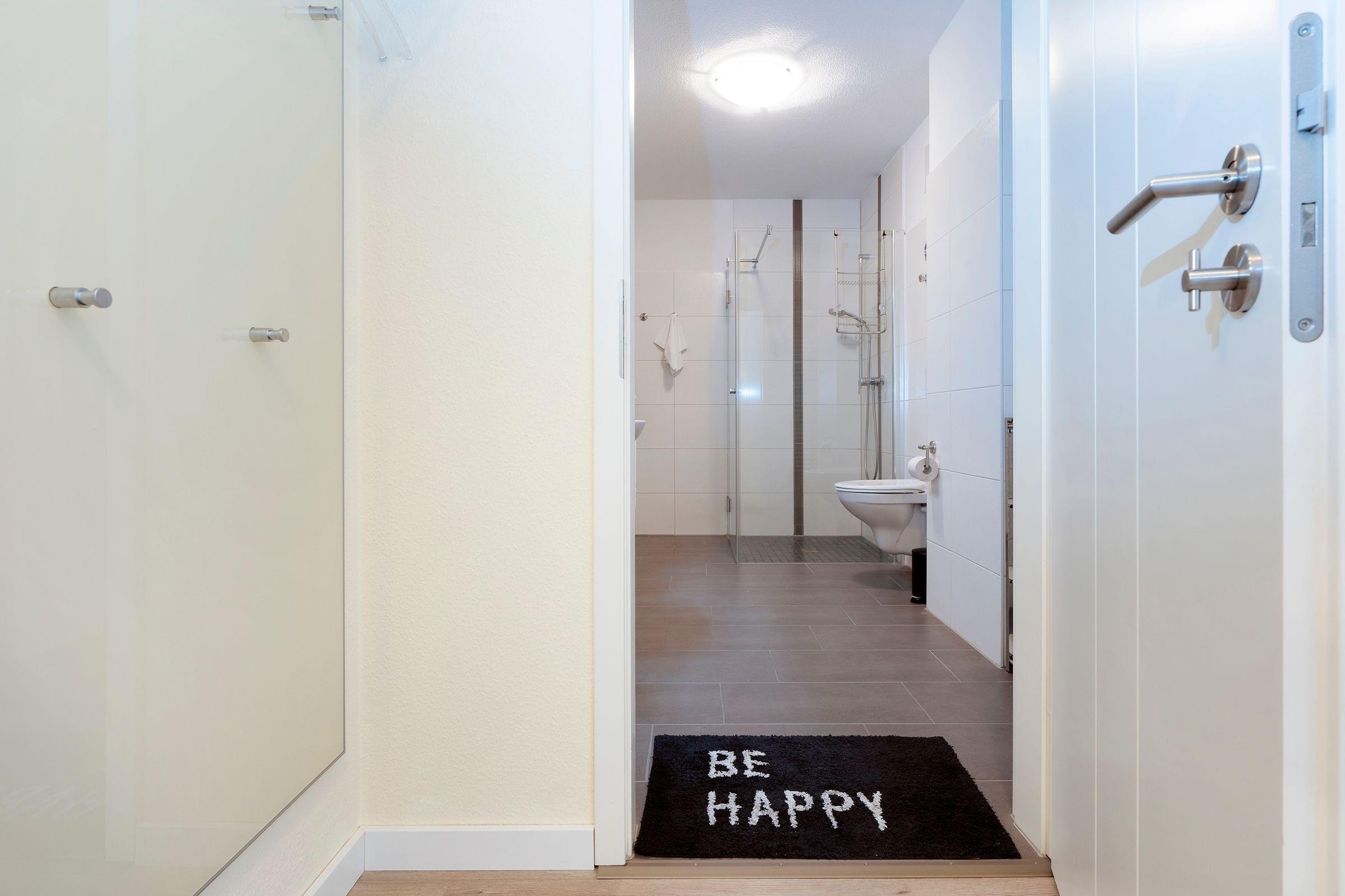Neben einer gemütlichen Einrichtung überzeugt das Urlaubsdomizil durch einen großzügigen, möblierten Südbalkon. Das helle Wohnzimmer empfängt Sie mit einer gemütlichen Couchecke zum Entspannen. Der angrenzende Essbereich und die gut ausgestattete Küche bieten ausreichend Platz für gesellige Kochabende. Die beiden Schlafräume verfügen über jeweils ein Doppelbett (je 2x 90x200 cm) und einen großen Kleiderschrank für Ihre Urlaubsgarderobe. Zudem gibt es in einem der Schlafzimmer einen zusätzlichen Fernseher. In beiden Schlafzimmern kann man die Fenster mit Rollos verdunkeln für einen ungestörten Schlaf. Das geräumige Badezimmer verfügt über eine große, bodengleiche Dusche, ein WC und ein Waschbecken.