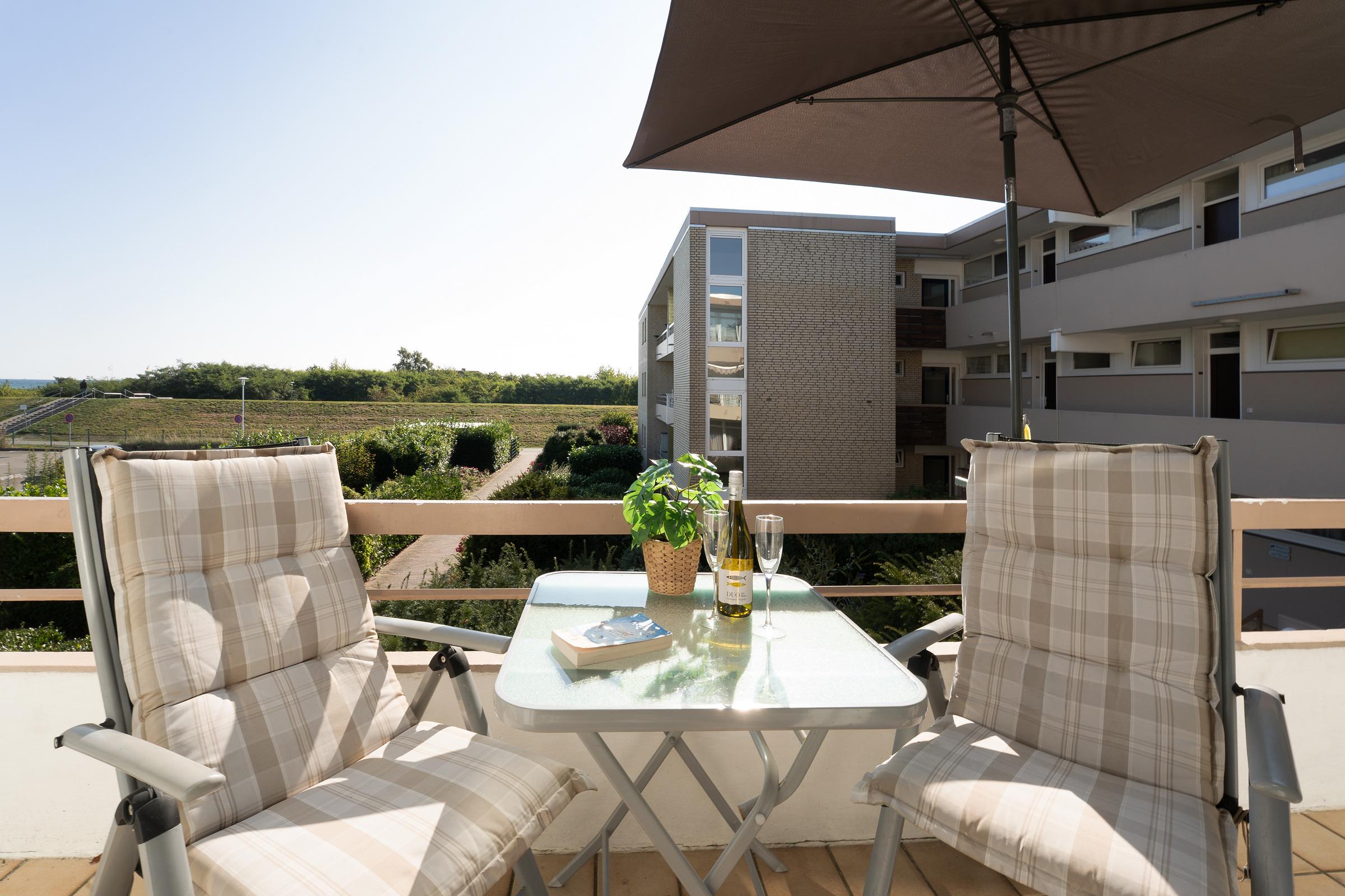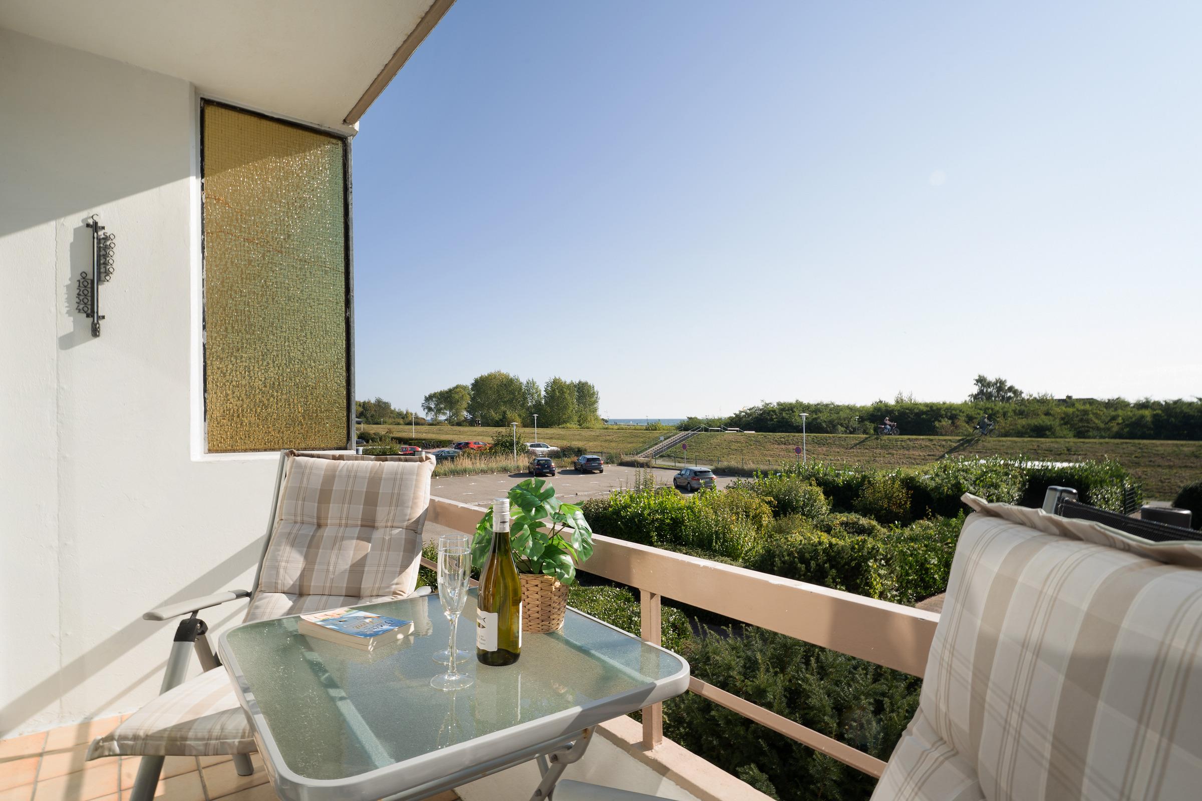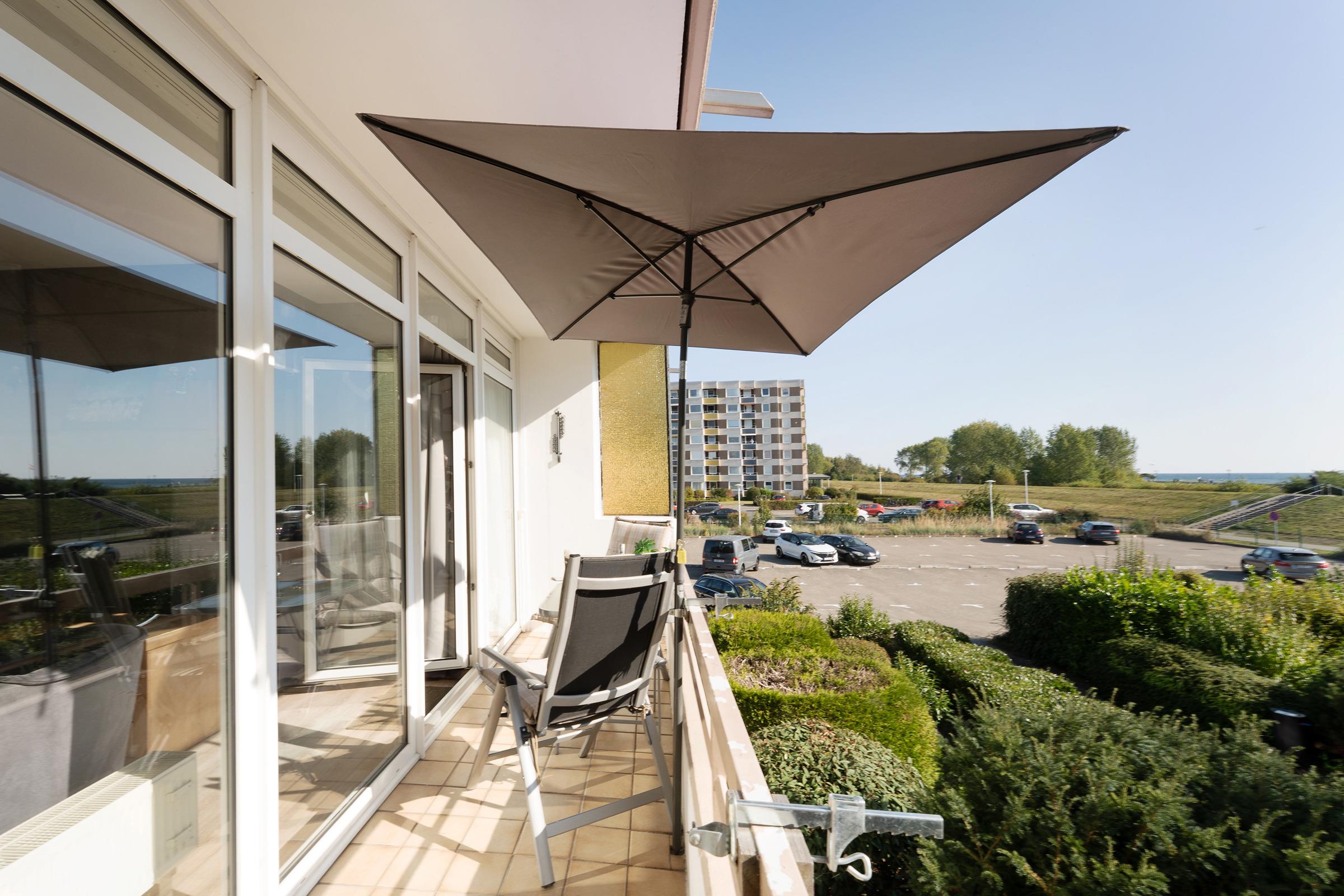 Charmante Ferienwohnung mit Balkon und Seeblick in Grömitz, ideal für erholsamen Strandurlaub.