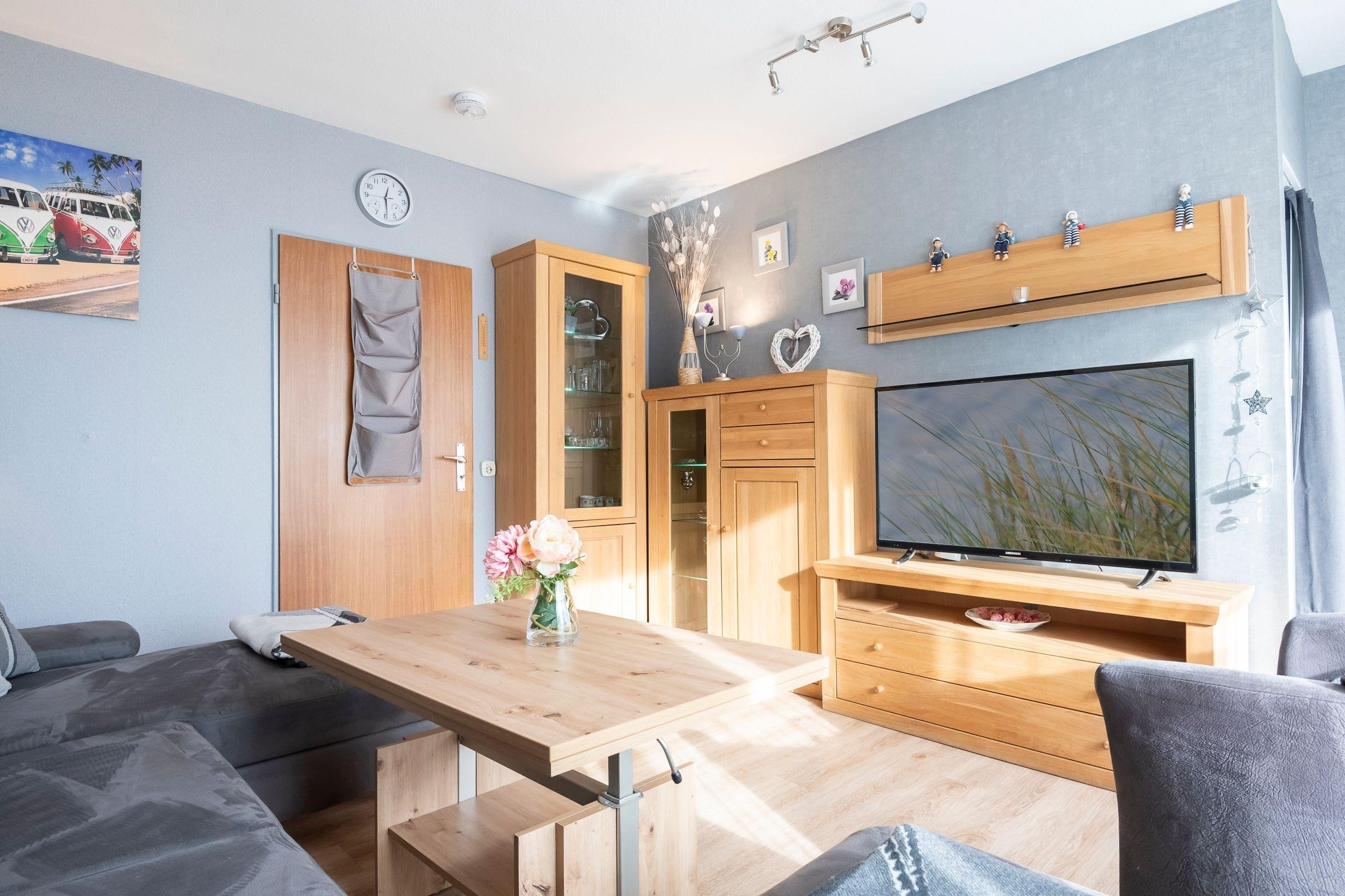 Sehr gepflegte 1,5-Zimmer-Ferienwohnung für 2 Personen mit einer Wohnfläche von ca. 33 m², separatem Schlafzimmer und Balkon im 1. Obergeschoss des Hauses Baltic mit Seeblick.