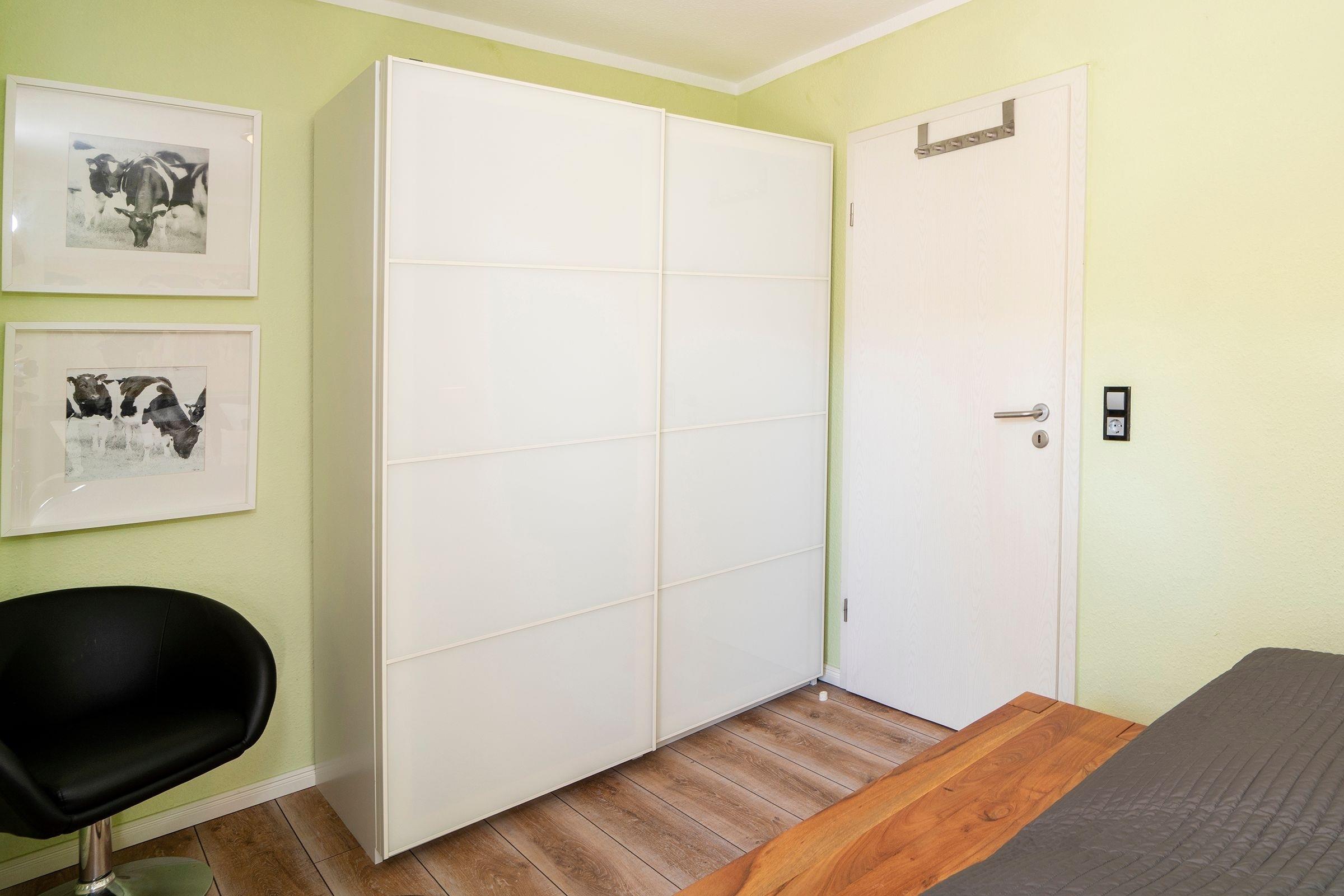 Schlafzimmer 1: 1 Boxspringbett (180x200 cm, elektrisch verstellbar), Kleiderschrank