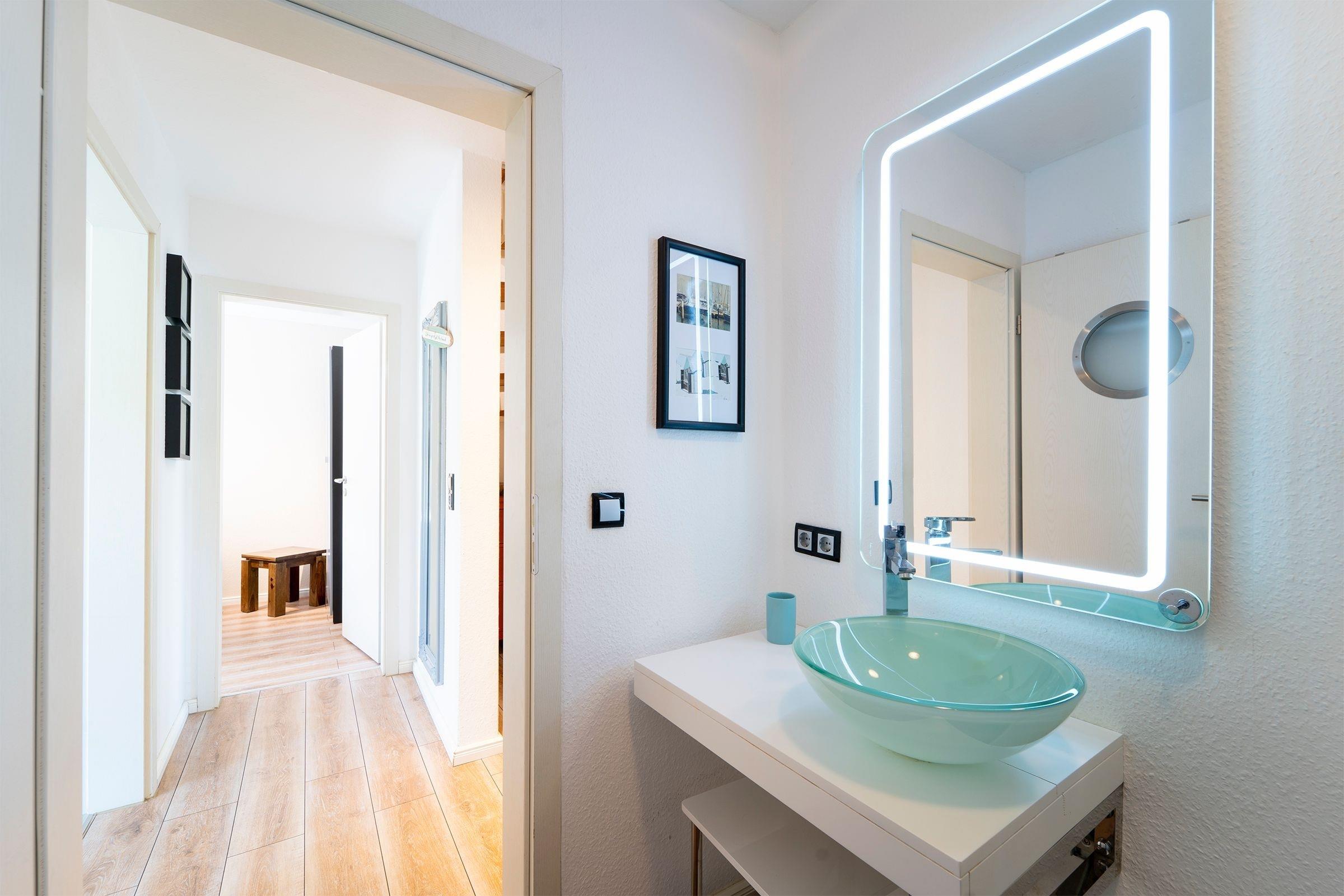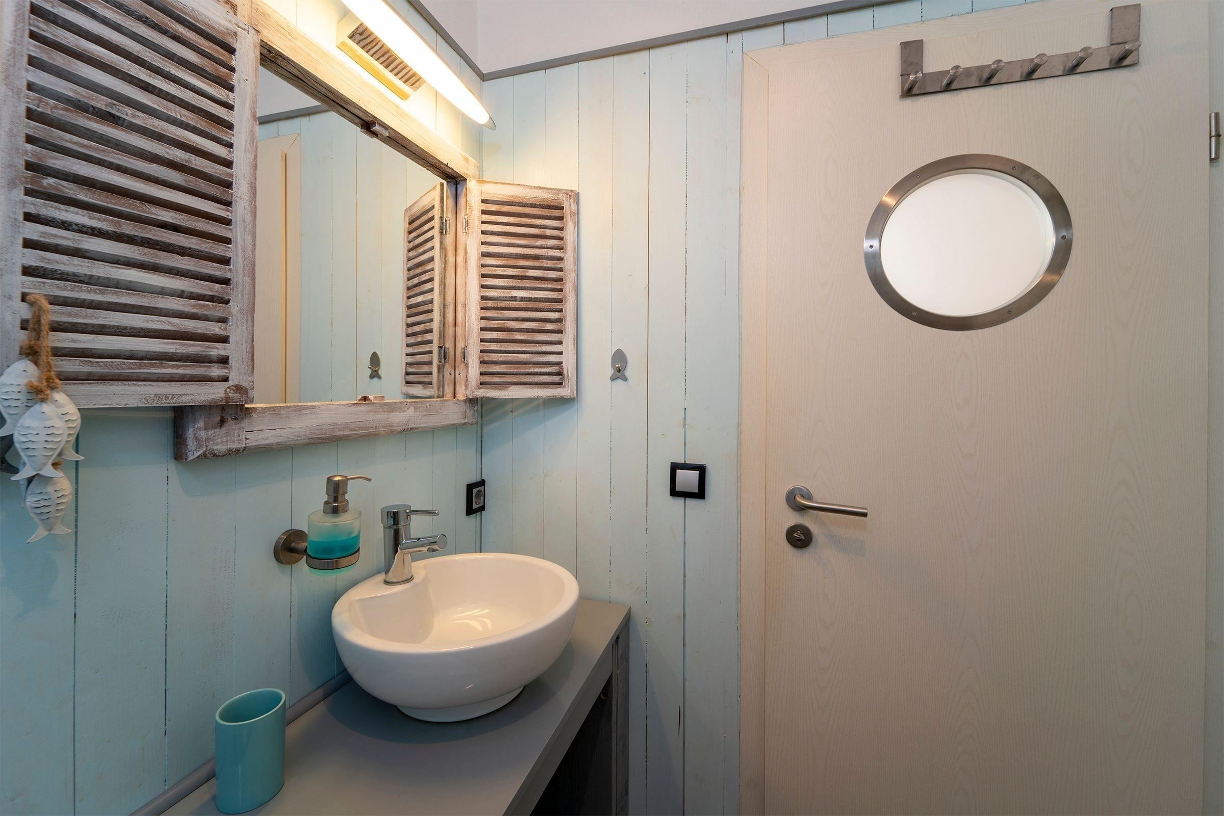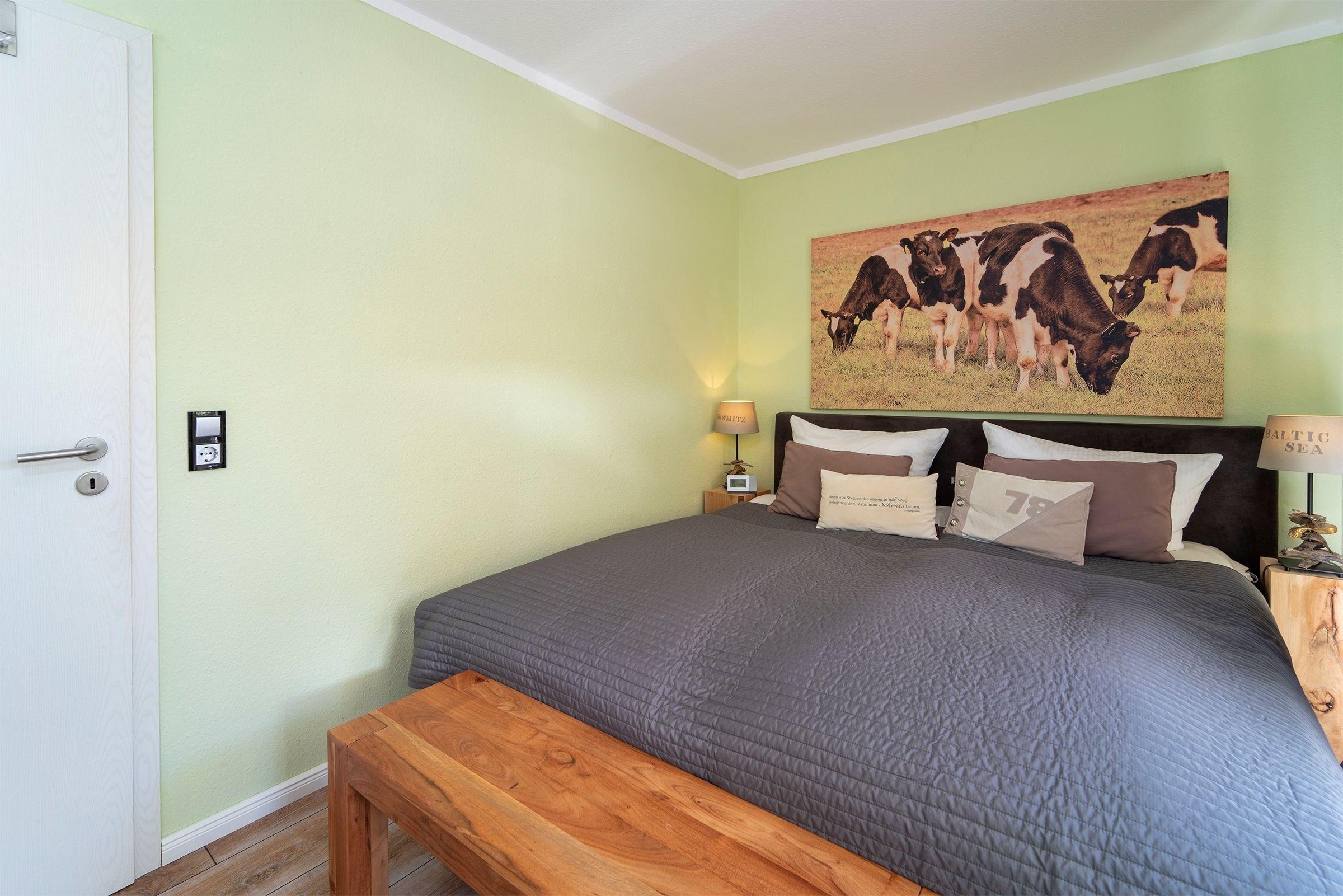 In das freundliche Souterrain gelangen Sie über eine Treppe in der Wohnung. Bitte beachten Sie, dass keine Kindersicherung vorhanden ist. Dort befinden sich zwei geschmackvoll gestaltete Schlafräume. Das erste Schlafzimmer ist u.a. mit einem großen, elektrisch verstellbaren Boxspringbett (180cm x 200cm) und einem Safe ausgestattet. Von hier aus gelangen Sie direkt auf die Terrasse, auf der Sie ab dem Frühjahr ein gemütlicher Strandkorb einlädt, den Abend bei einem Glas Wein ausklingen zu lassen. Das Souterrain präsentiert sich mit der nach Süden ausgerichteten großen Fensterfront hell und freundlich. Das zweite Schlafzimmer verfügt ebenfalls über ein Boxspringbett (140cm x 200cm). Auf dieser Ebene befindet sich das maritim eingerichtete Duschbad. Das gesamte Logis begeistert mit stilsicherer Einrichtung und wertigem Charakter.