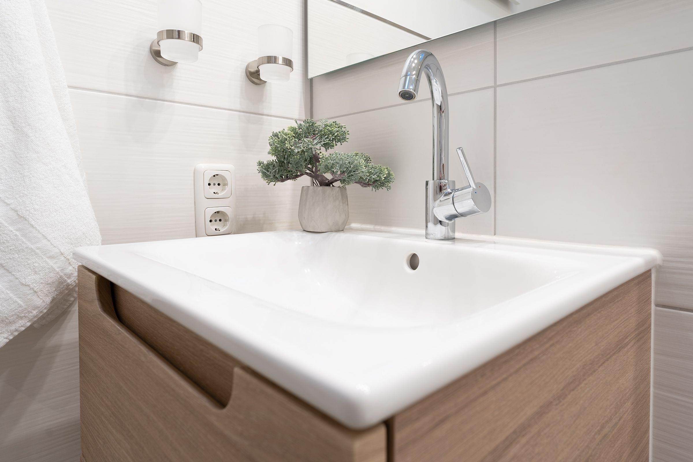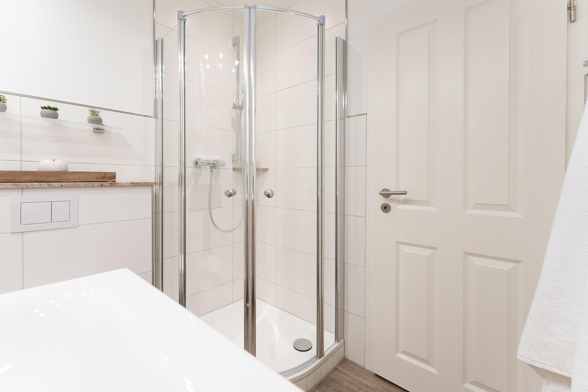 Über eine kleine Treppe gelangen Sie zum absoluten Schmuckstück der Ferienwohnung: Die idyllisch und blickdicht angelegte Terrasse mit Südausrichtung. Völlig ungestört genießen Sie hier einen heißen Kaffee am Morgen oder eine leckere Grillwurst am Abend. Das weiß geflieste Badezimmer verfügt über eine Dusche und reichlich Abstellfläche. Erholsame Nachtruhe finden Sie im angrenzenden Schlafzimmer. Das komfortable Bett verfügt über