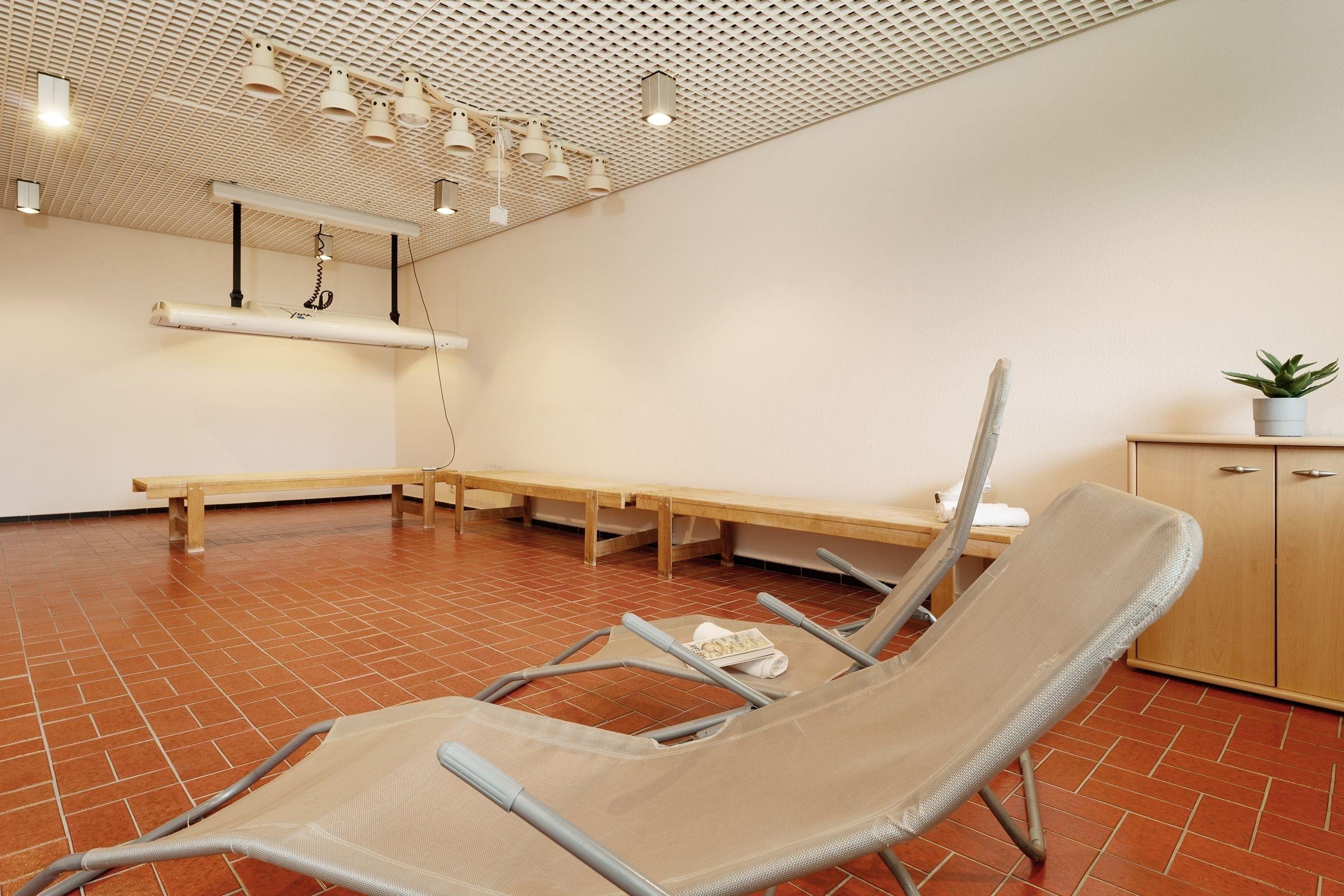 Zu dieser Ferienwohnung gehört ein PKW-Tiefgaragenstellplatz im Haus A (max. Durchfahrtshöhe 200 cm). Zur gemeinschaftlichen Nutzung gibt es eine Sauna in Ihrem Wohnblock (gegen Gebühr), einen Tischtennisraum, einen Fahrradkeller, ein Sonnendach, einen Tennisplatz sowie einen Kinderspielplatz. Außerdem befinden sich eine Waschmaschine und ein Trockner im Keller des Hauses und können gegen Gebühr genutzt werden.
