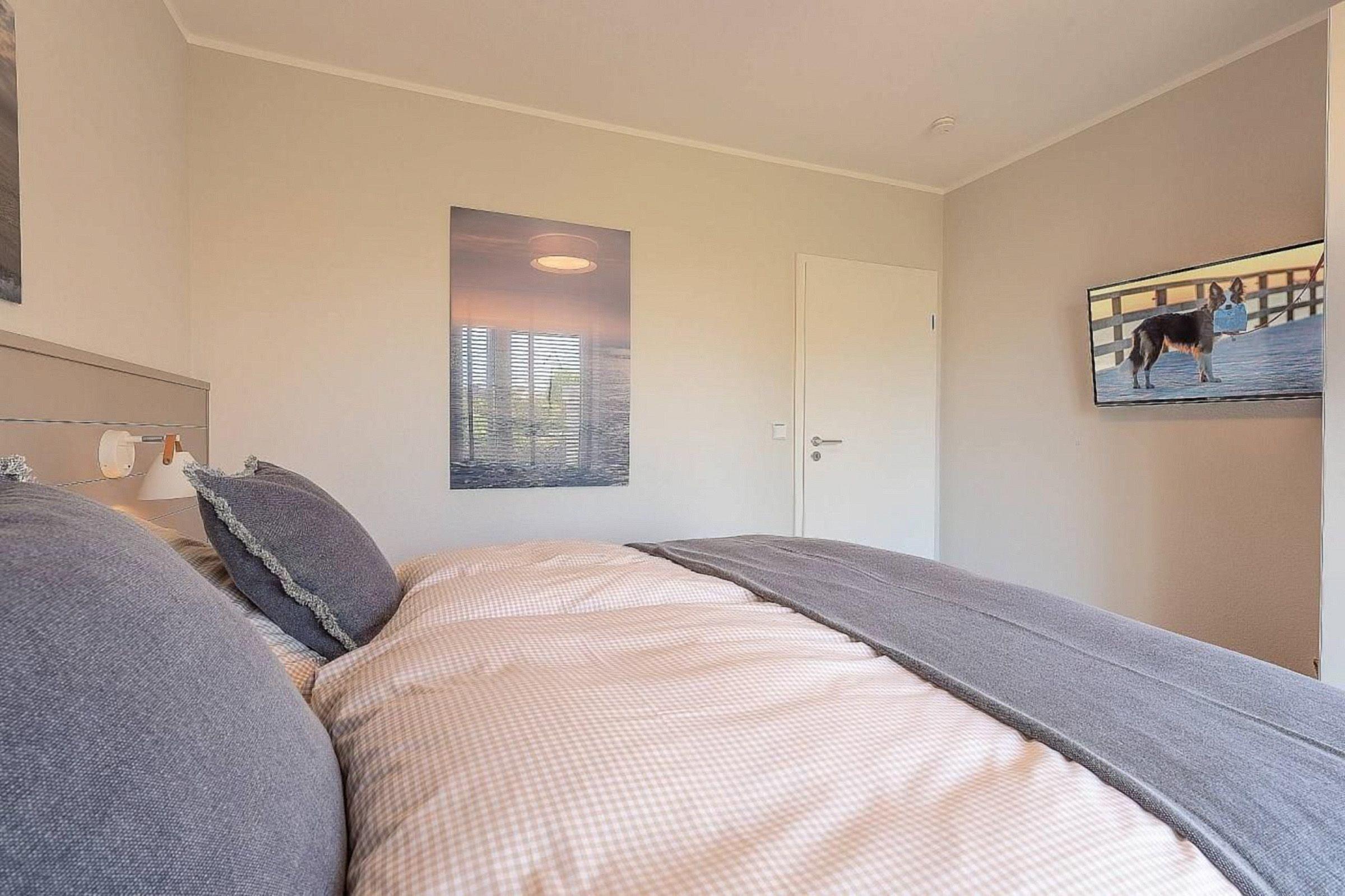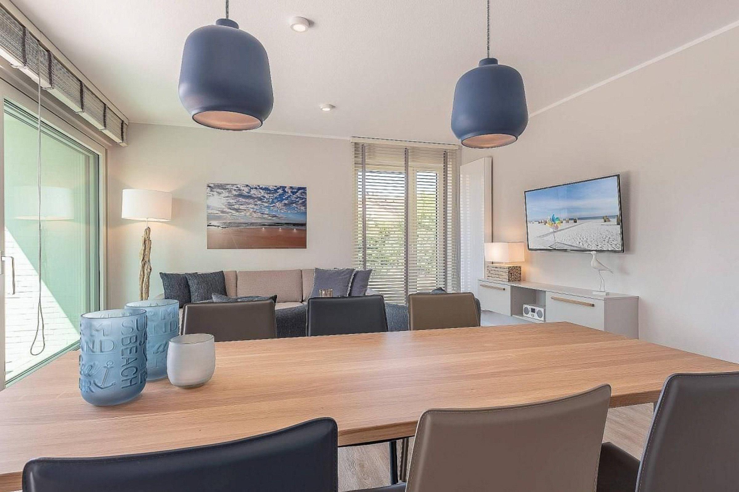 Der Wohnbereich empfängt Sie mit einer hochwertigen, geschmackvollen Einrichtung und versprüht Wohlfühl-Atmosphäre vom ersten Moment an! Die moderne Küche ist offen gestaltet und perfekt in den Wohnbereich integriert, sie bietet alles, was Hobby-Koch-Herzen höher schlagen lässt. Zwei separate Schlafräume mit komfortablen Boxspring-Doppelbetten (je 2x 90x200cm) bieten reichlich Platz für Ruhe und Erholung, beide sind jeweils mit einem zusätzlichen Flat-TV ausgestattet. Das Badezimmer überzeugt im modernen Stil mit Dusche und WC. Auf Ihrer Terrasse mit Südausrichtung genießen Sie die herrliche Ostseeluft und eine leckere Tasse Kaffee am Morgen.