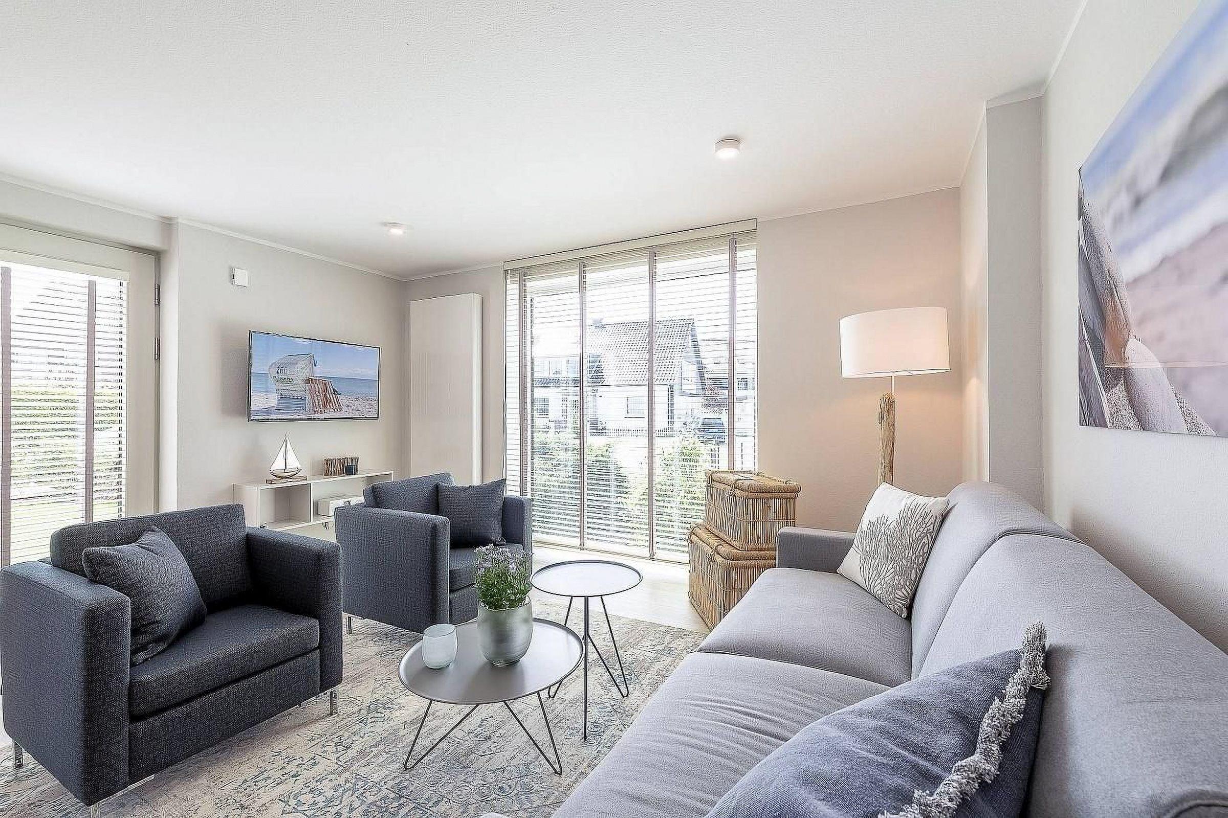 Wir haben hier eine sehr schöne Zeit verbracht. Die Ausstattung ist schön und zweckmäßig, die technische Einrichtung (WLAN, TV, Radio) ist auf dem aktuellen technischen Stand. Zum Strand sind es vielleicht 5 Minuten zu Fuß, bis zur Innenstadt dauert es etwas länger. In den Betten kann man angenehm liegen. Alles ist noch "wie neu". Das Preis-Leistungsverhältnis ist aus unserer Sicht angemessen. Zwei Dinge trübten leider den guten Gesamteindruck und sind verantwortlich für den leichten Punktabzug. Zum einen liegt das Schlafzimmerfenster Richtung Osten. Rollläden gibt es leider, wie so oft in Ferienwohnungen, nicht. Die innenliegenden Jalousinen sind leider in keinster Weise in der Lage, das Sonnenlicht fernzuhalten, sodaß es um 6 Uhr morgens taghell im Schlafzimmer war, was den Schlaf nicht gerade gefördert hat. Hier hätten wir uns, wenigstens im Schlafzimmer, "richtige" Rolläden gewünscht. Zum anderen führen von der Terrassentür keine Stufen auf die Terrasse, man muss praktisch "heruntersteigen" um auf die Terrasse zu gelangen. Dies kann gerade mit kleinen Kindern durchaus gefährlich werden. Warum man die zwei Meter rechts liegenden Stufen zur Eingangstür nicht einfach bis unter die Terrassentür verlängert hat, ist uns ein Rätsel. Aber das ist Jammern auf hohem Niveau. Wir können die Wohnung auf jeden Fall weiterempfehlen und wünschen allen Urlaubern nach uns eine schöne Zeit in der Wohnung.
