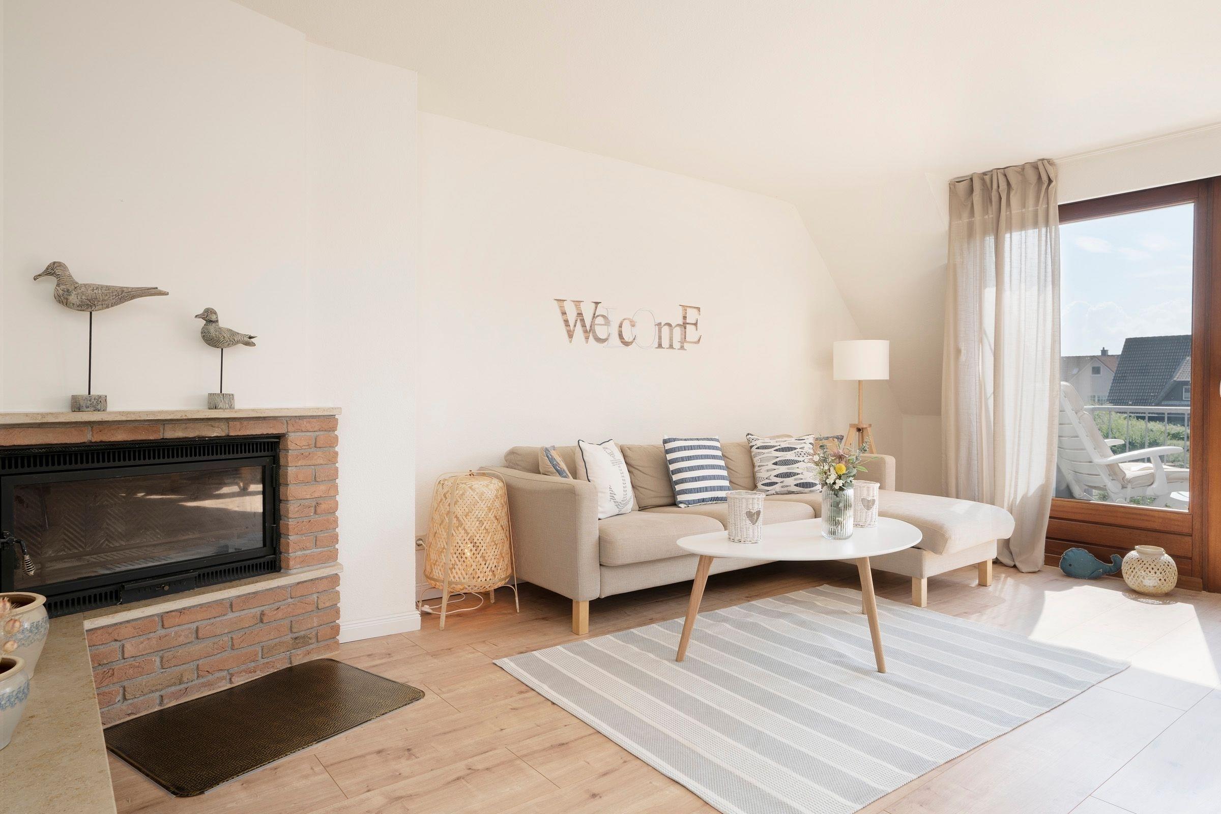 Im offenen Galeriebereich im Obergeschoss befindet sich die offene Küche und der Wohnbereich - von hier aus erreichen Sie den Balkon mit Süd-Ausrichtung. Nehmen Sie Platz auf dem Ecksofa oder an dem großen Esstisch und genießen Sie das knisternde Feuer und die wohlige Wärme des Kamins.