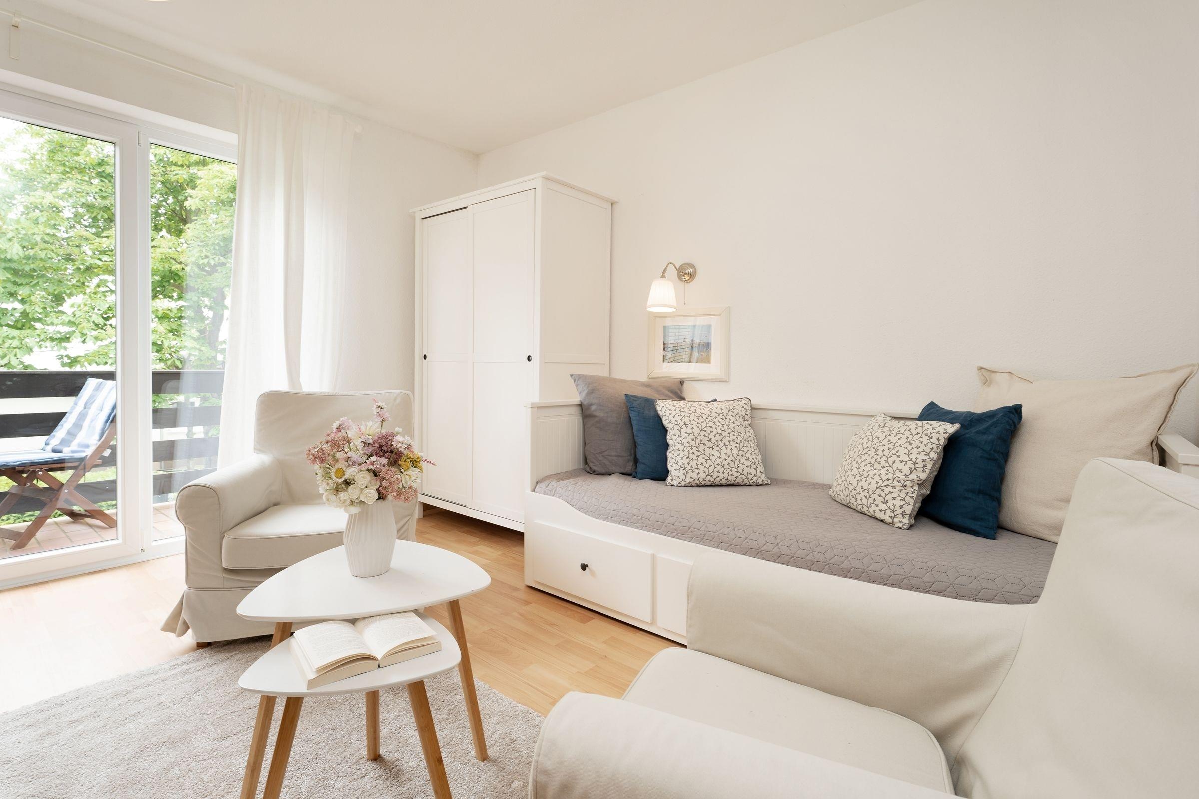 Helle Ferienwohnung in Grömitz mit Balkon und Meeresblick für erholsame Tage am Strand.