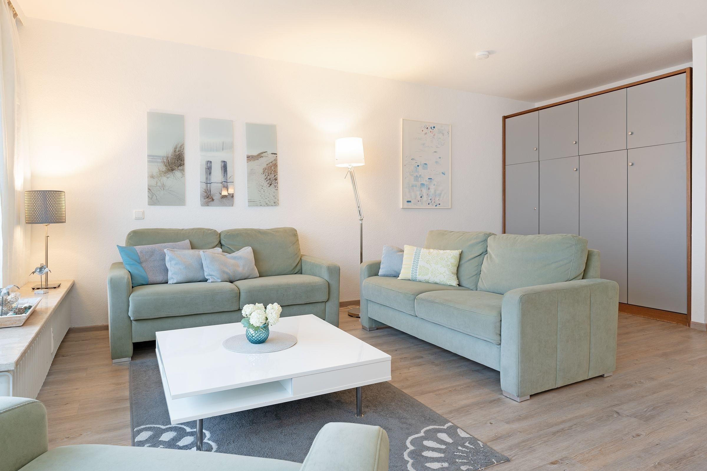 Die Wohnung erreichen Sie bequem mit dem Fahrstuhl, über eine Übergangsbrücke können Sie die Wohnung auch mit dem Rollstuhl befahren. Ihr helles und freundliches Feriendomizil umfasst 3 Zimmer, davon 2 separate Schlafzimmer und verfügt über eine Wohnfläche von ca. 55m², somit bietet es ausreichend Platz für bis zu 4 Personen.