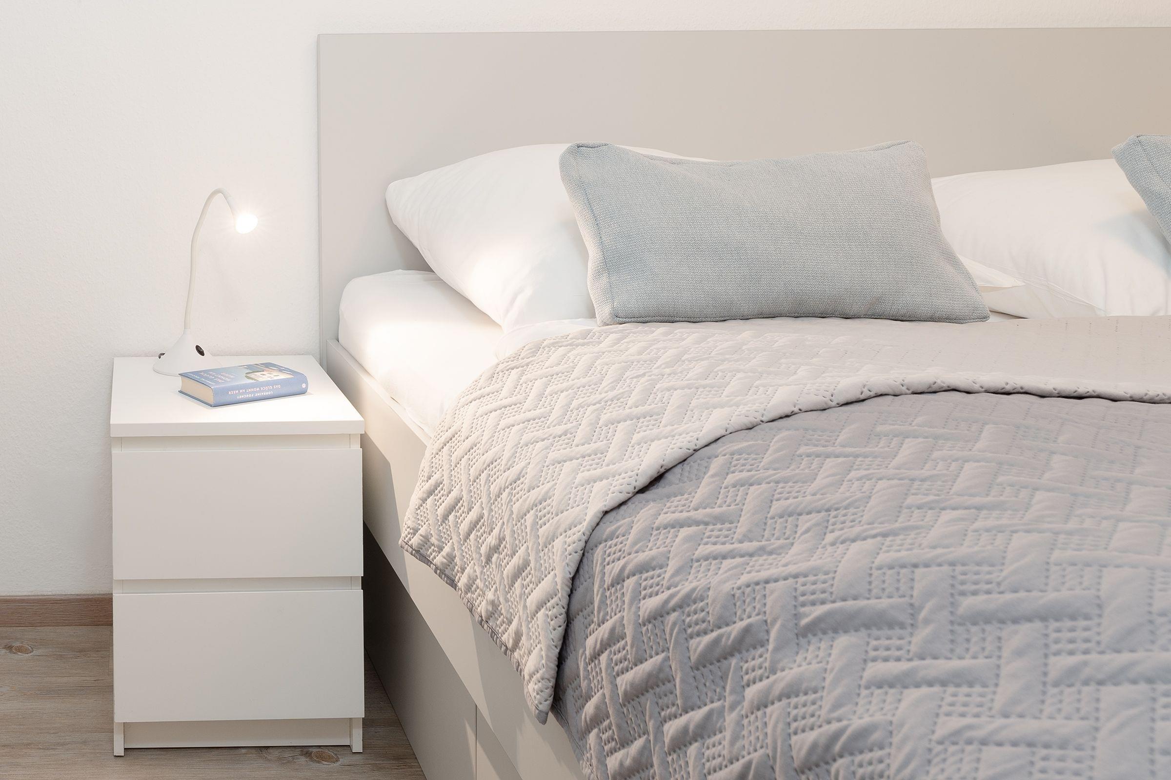 Schlafzimmer 1: 1 Doppelbett (2x 100x190 cm), Kleiderschrank, Verdunkelung: Außenjalousie