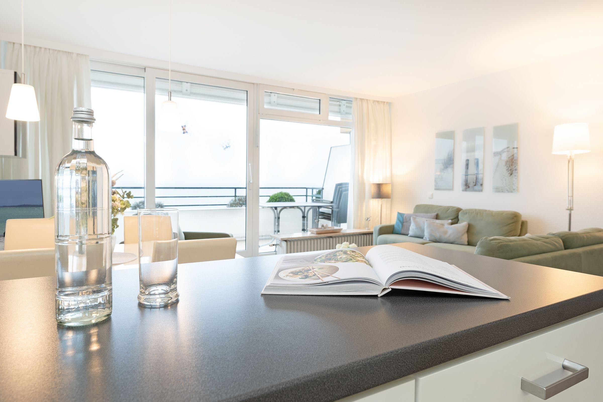 Moderne Ferienwohnung mit Meerblick und Strandkorb in Grömitz, 50m vom Strand entfernt.