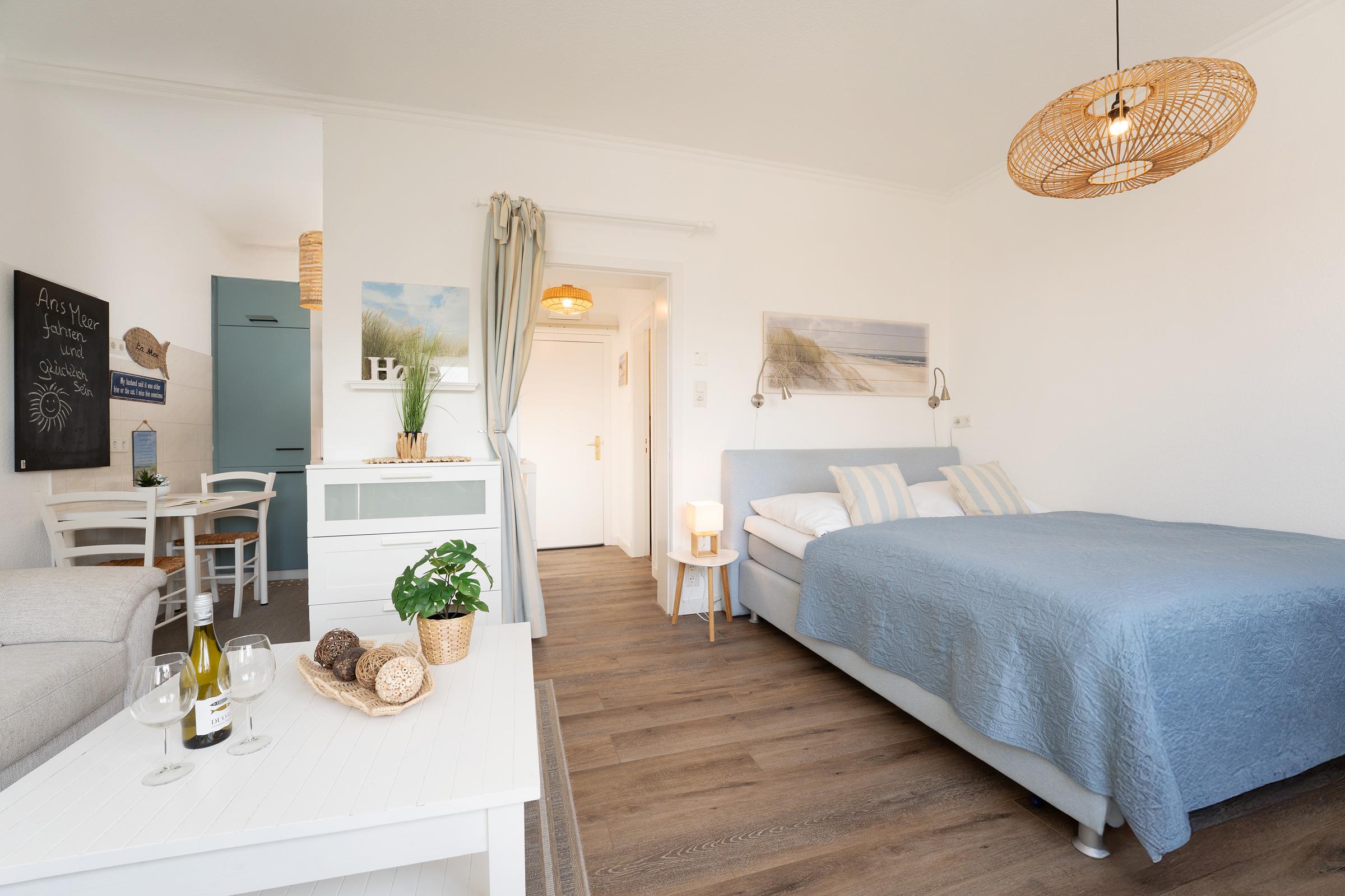 Diese liebevoll eingerichtete 1-Zimmerwohnung liegt in einem ruhigen Wohngebiet und dennoch zentral und strandnah. Sie erreichen den nächsten Supermarkt und Bäcker nach nur 400m und auch die belebte Strandpromenade mit Ihren zahlreichen Cafés und Restaurants liegt nur einen kleinen Spaziergang von 650m entfernt. Ein wunderbarer Ausgangspunkt für einen herrlichen Ostseeurlaub!