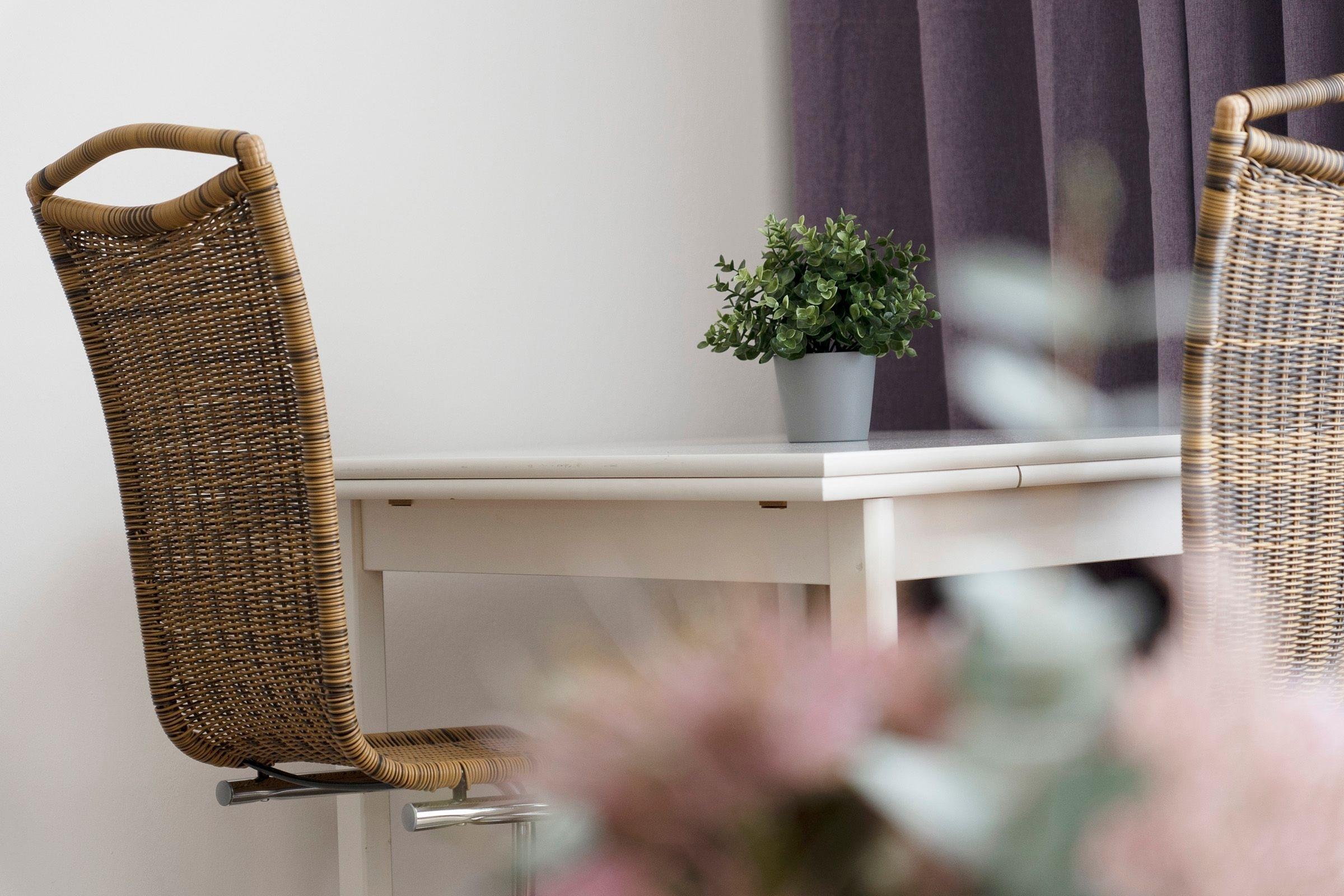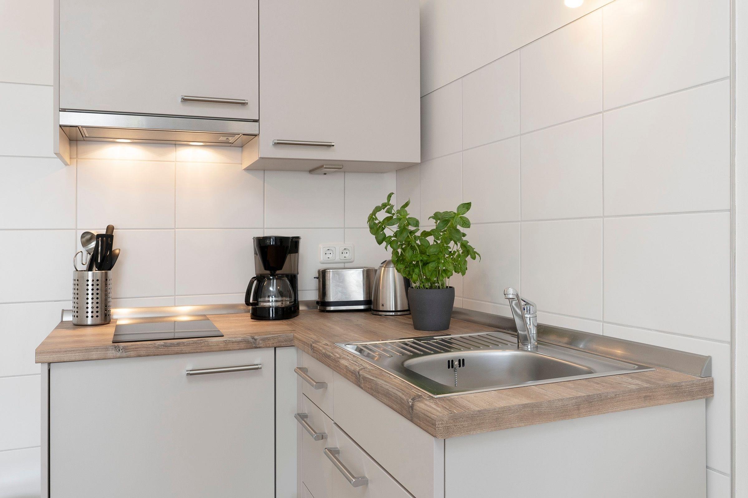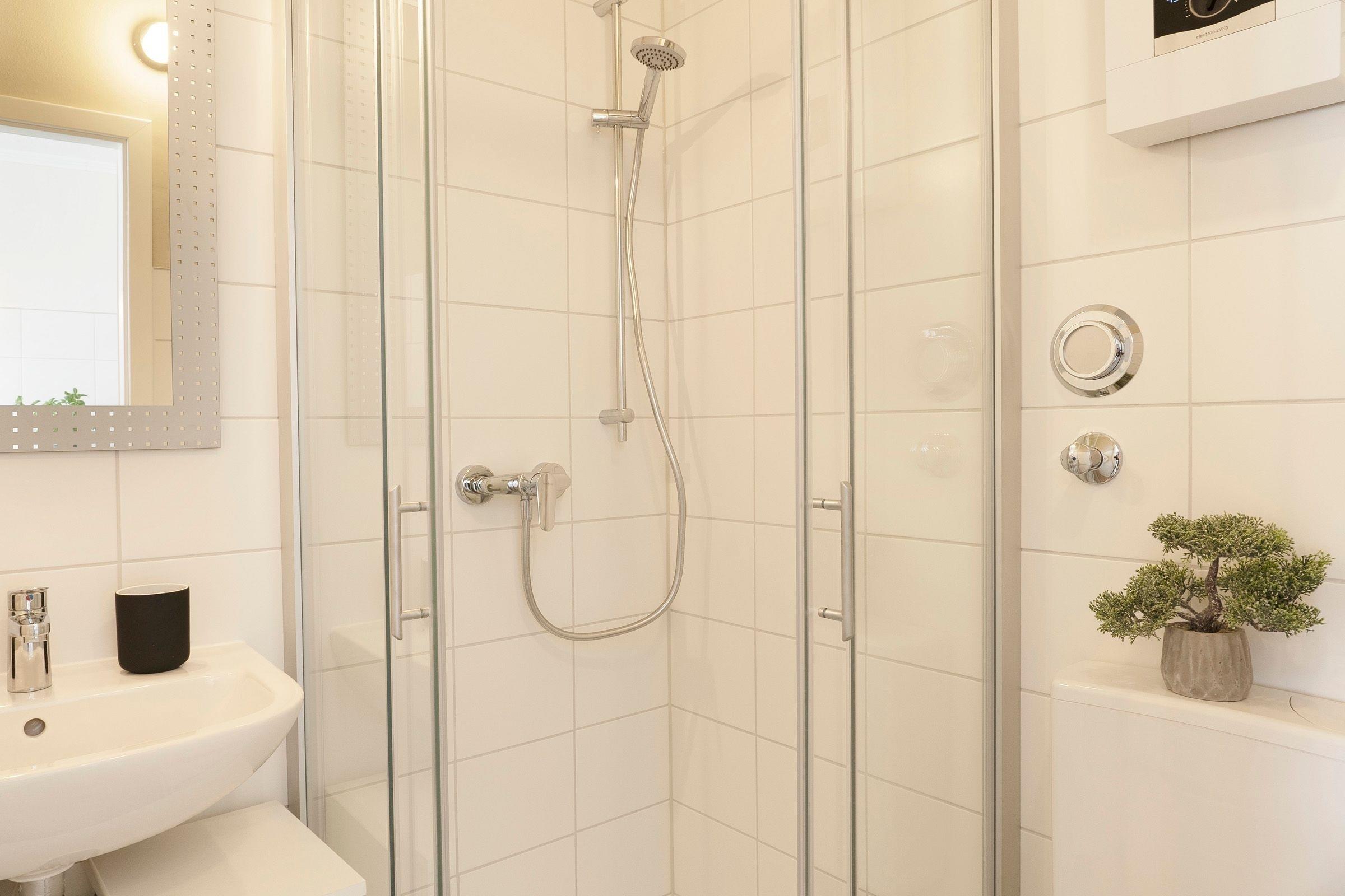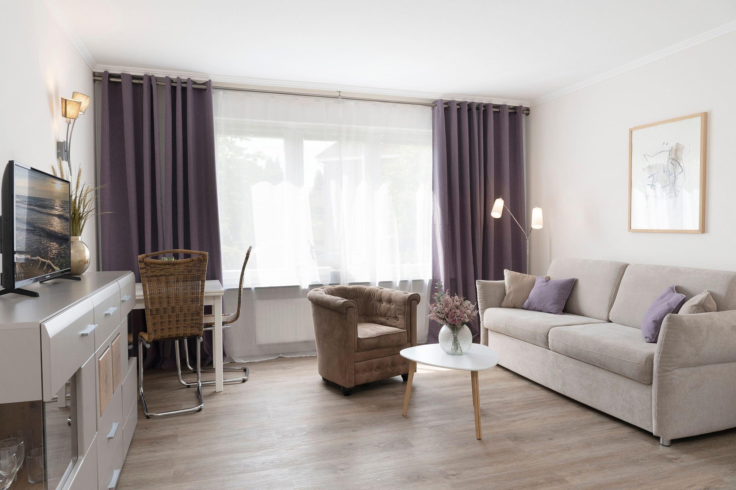Es erwartet Sie ein offen gestalteter Wohn-/Schlafraum mit einfach auszuklappendem Schlafsofa (Liegefläche 150x200cm, orthopädische Komfortmatratze), TV und integrierter Küchenzeile mit 2-Plattenherd, Kühlschrank und Kaffeemaschine, sowie Esstisch am Fenster. Duschbad mit bodentiefer Dusche und praktischer Handtuchheizung. Ein kostenfreier WLAN-Anschluss gehört hier zur Grundausstattung.