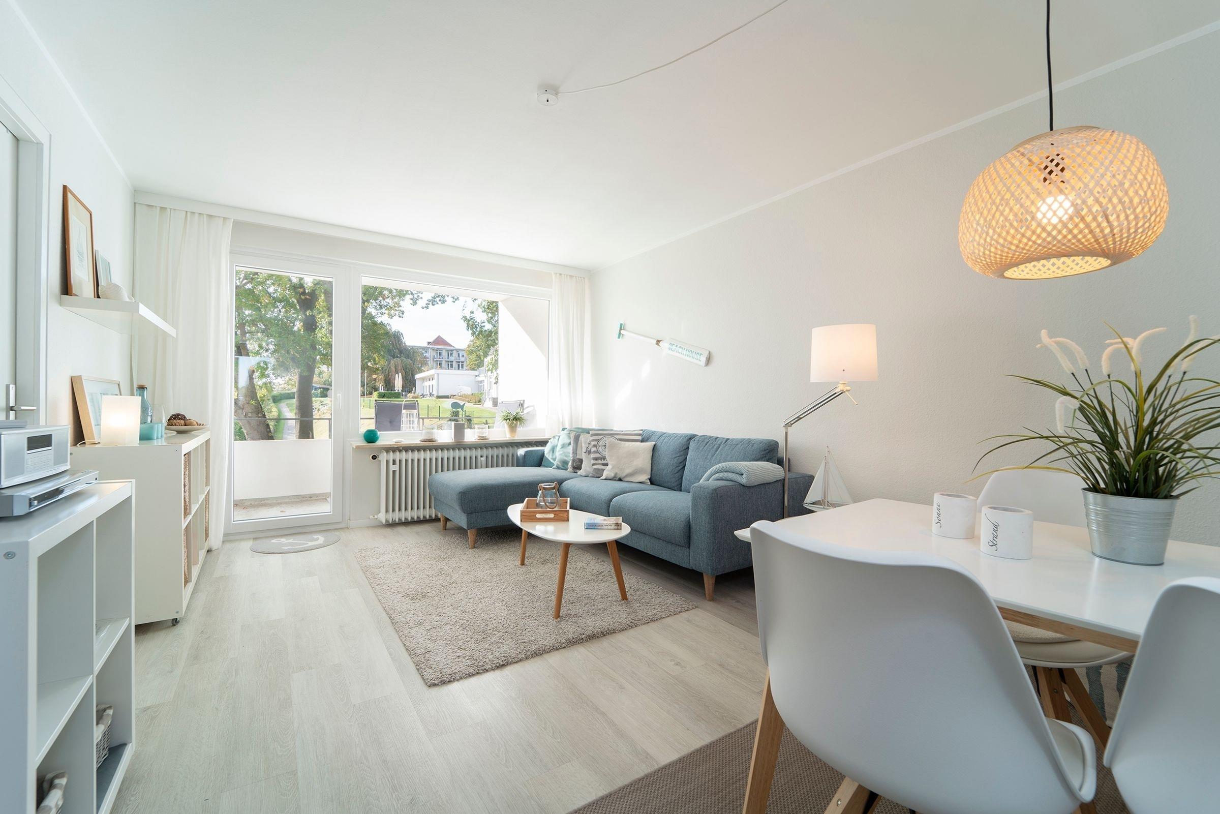 Geschmackvolle Ferienwohnung mit Balkon und seitlichem Ostseeblick in Grömitz, nahe Strand und Yachthafen.
