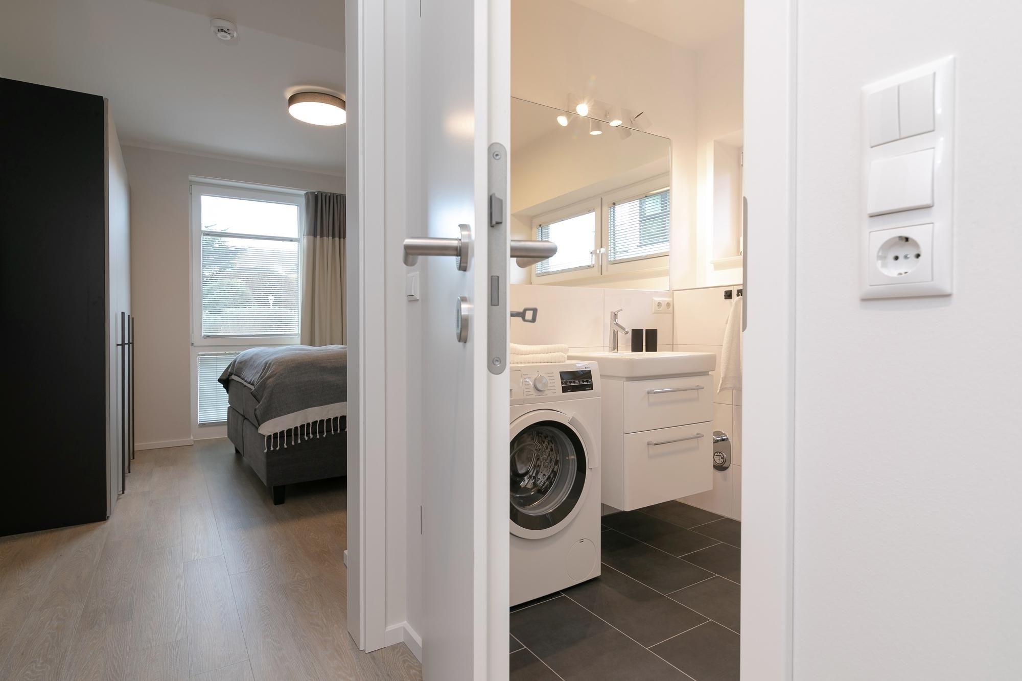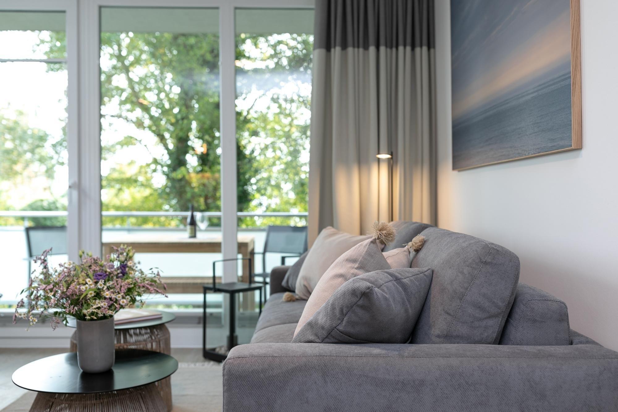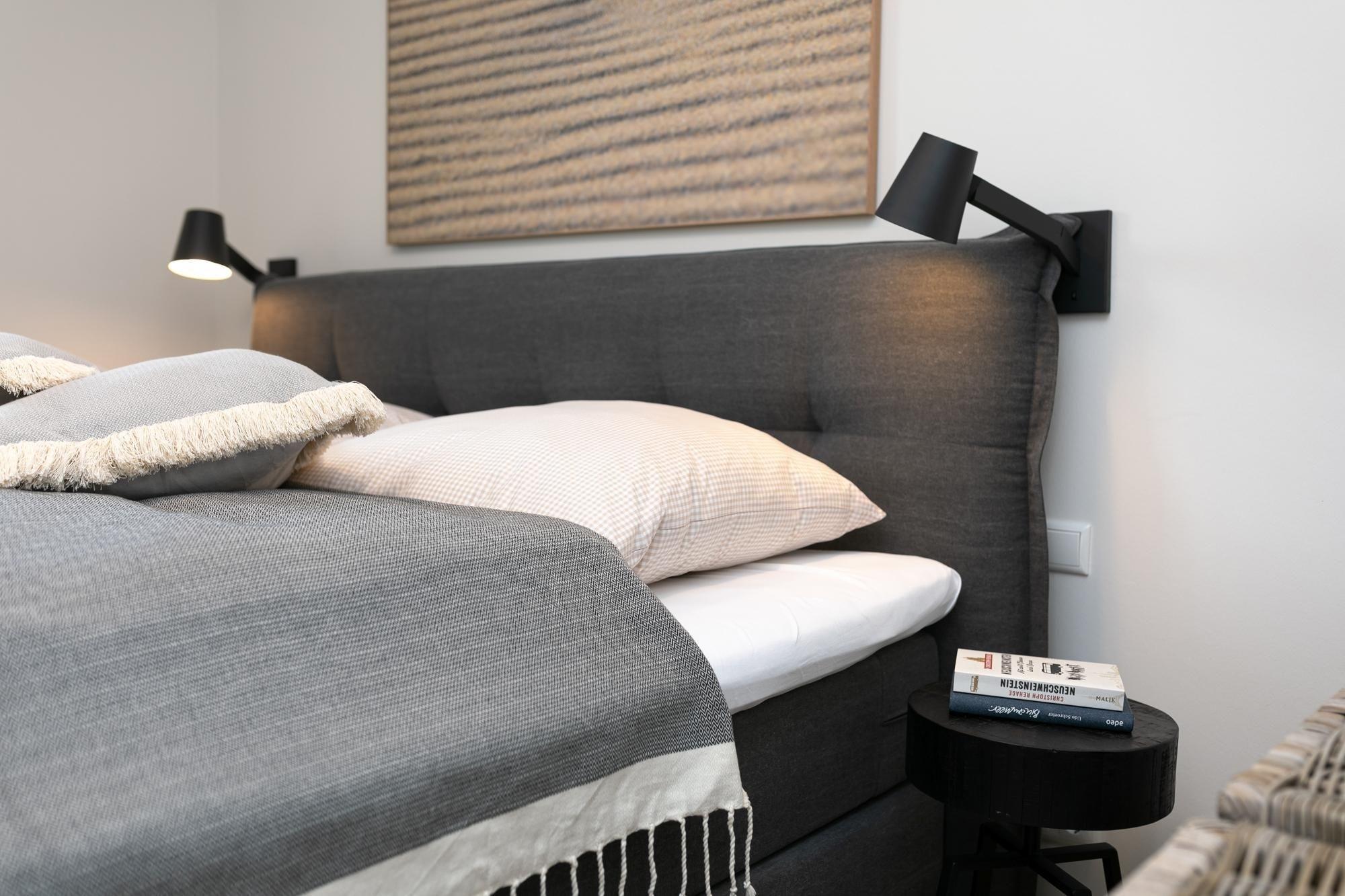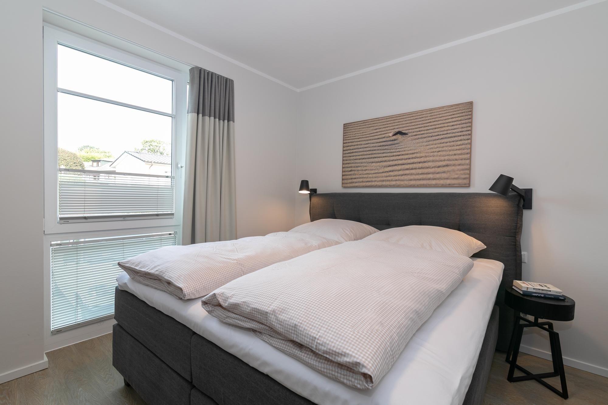 Das stilsichere Ferienobjekt verfügt über ein separates Schlafzimmer mit Doppelbett (durchgehender Topper 180x200cm), einen offen gestalteten Wohn-/Schlafraum mit hochwertiger Schlafcouch (Liegefläche 160x200cm), Sitzecke, TV und clever integrierter Küchenzeile inkl. Essplatz sowie einen möblierten Balkon mit saisonal bedingtem Meerblick (im Winterhalbjahr). Fußbodenheizung sorgt im gesamten Logis für wohlige Wärme, das geschmackvolle Bad überzeugt mit bodentiefer Dusche und beheizbarem Handtuchhalter, Plissees sorgen für angenehme Verdunklung. Lässiger Komfort verbunden mit Wohlfühlambiente und hochwertiger Ausstattung.