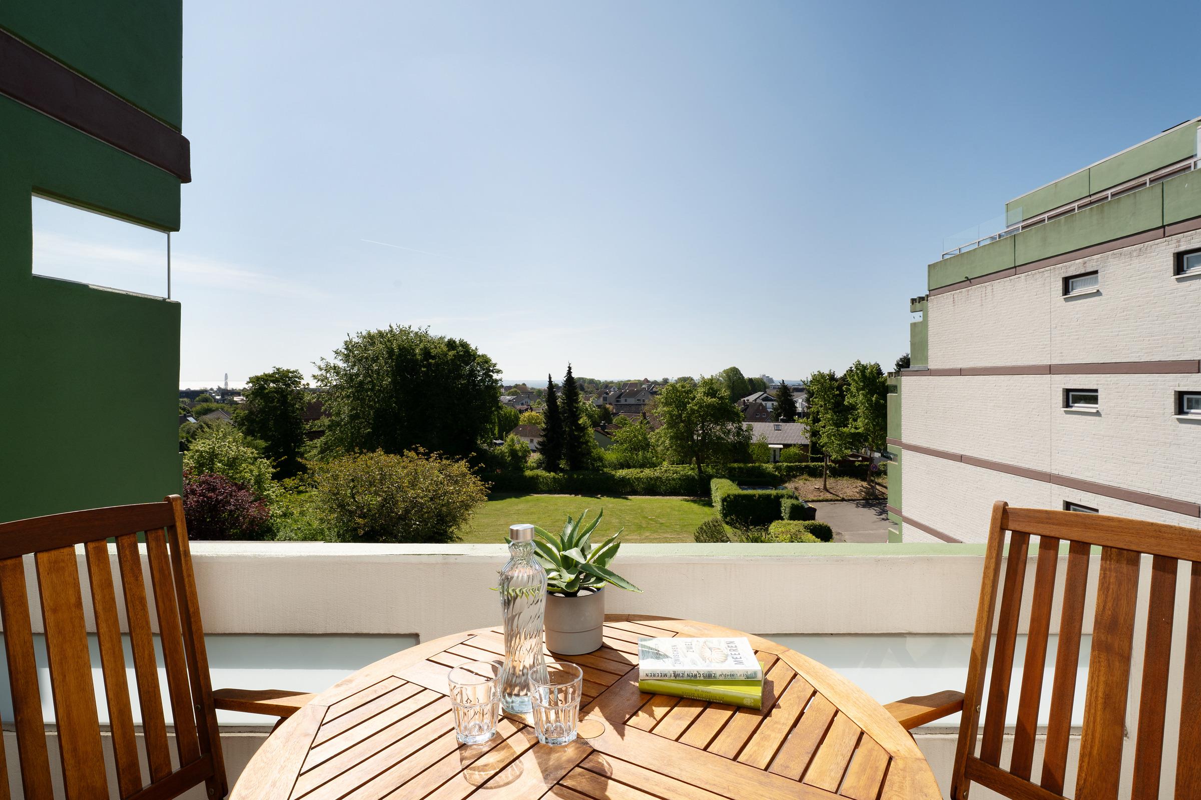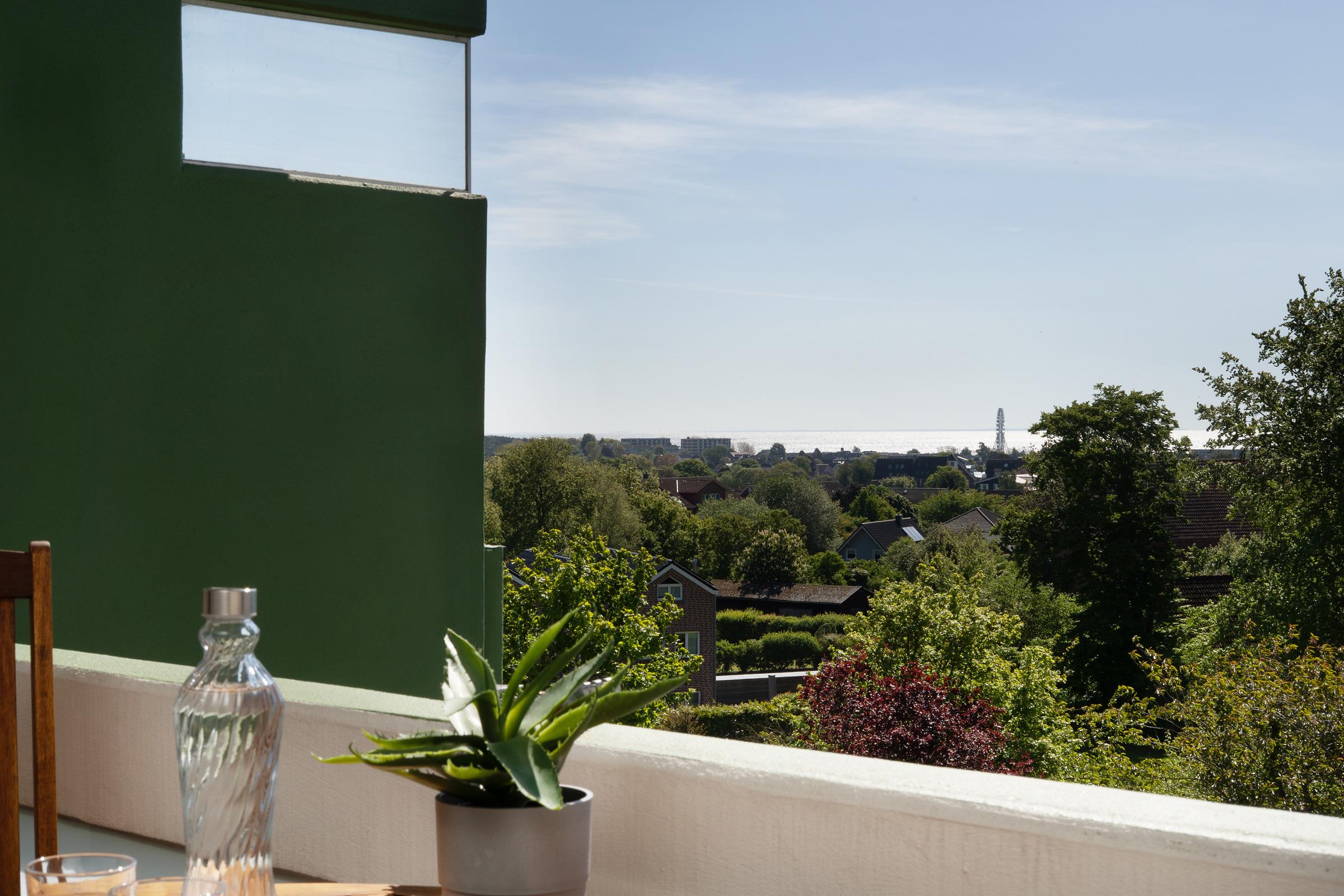 Panoramablick inklusive - Vom Balkon dieser gemütlichen 1-Zimmer-Ferienwohnung aus blickt man über die Dächer von Grömitz und genießt einen freien Ostseefernblick! Nach nur 500m erreichen Sie den Ortskern von Grömitz mit zahlreichen Einkaufsmöglichkeiten, Bäckerfilialen und Restaurants. Von dort aus geht es entlang der Fußgängerzone mit diversen kleinen Lädchen und Cafés und gelangen nach einem Spaziergang von ca. 20 Minuten an den weißen Strand oder die malerische Seebrücke.