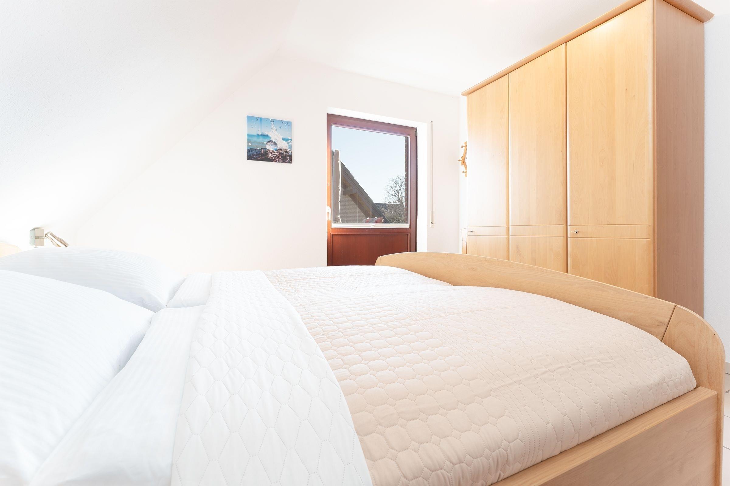 Schlafzimmer: 1 Doppelbett, (2x 90x200 cm), Kleiderschrank, Verdunkelung (Plissee, Außenjalousie)