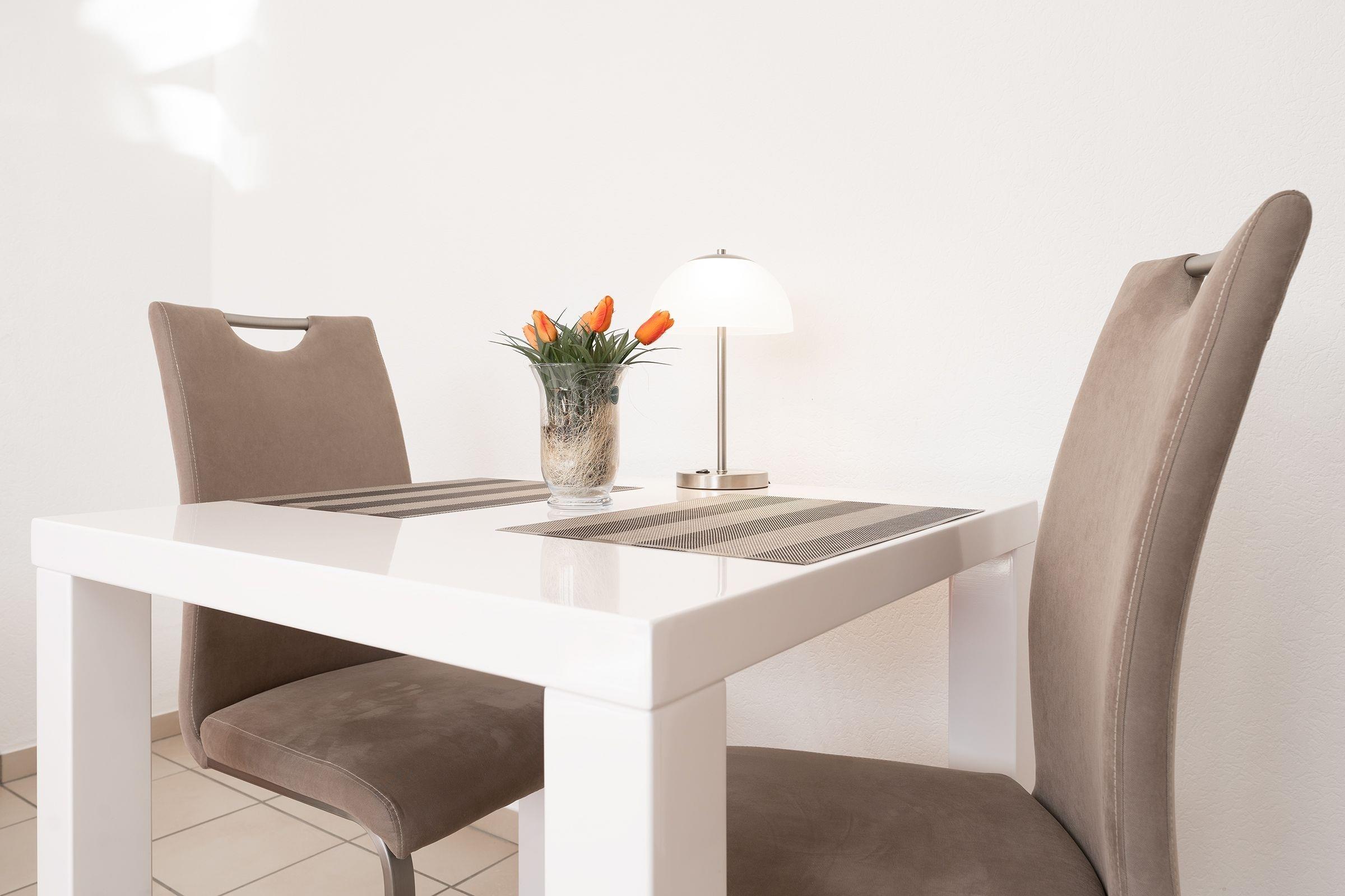 Das Wohnzimmer ist mit komfortabler Sofaecke, Essplatz für 2 Personen, und TV hell und gemütlich eingerichtet. Die moderne Küche ist mit Annehmlichkeiten wie Cerankochfeld, Backofen, Kühlschrank, Spülmaschine, sowie Mikrowelle gut ausgestattet. Das separate Schlafzimmer verfügt über ein bequemes Doppelbett (2x 90x200 cm) und einen geräumigen Kleiderschrank, sowie direkten Zugang zum möblierten Süd-Ost-Balkon. Das tageslichthelle Badezimmer bietet Dusche, WC und Waschmaschine. Das gesamte Domizil ist mit Fliesen ausgelegt, Fußbodenheizung sorgt für wohlige Wärme.