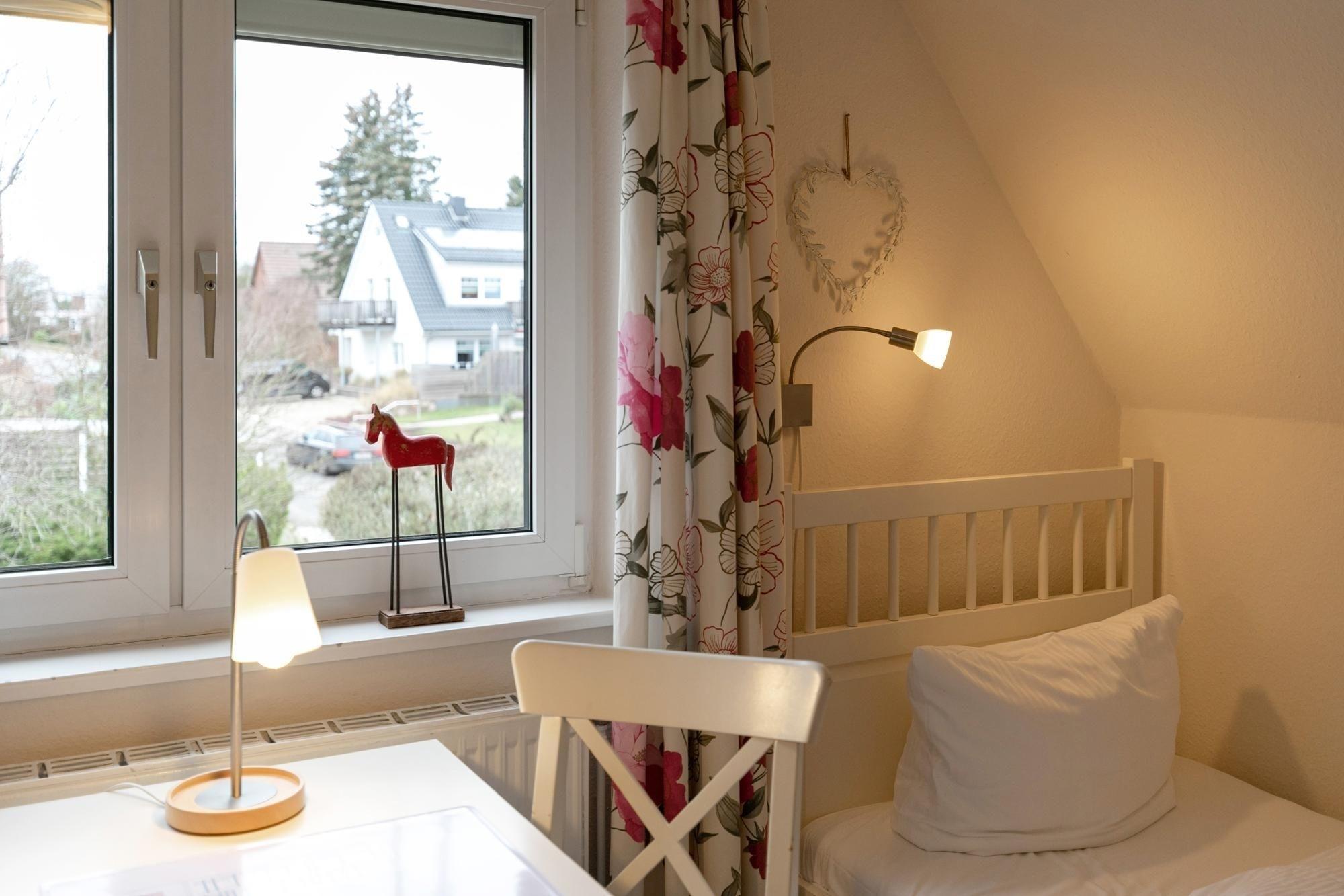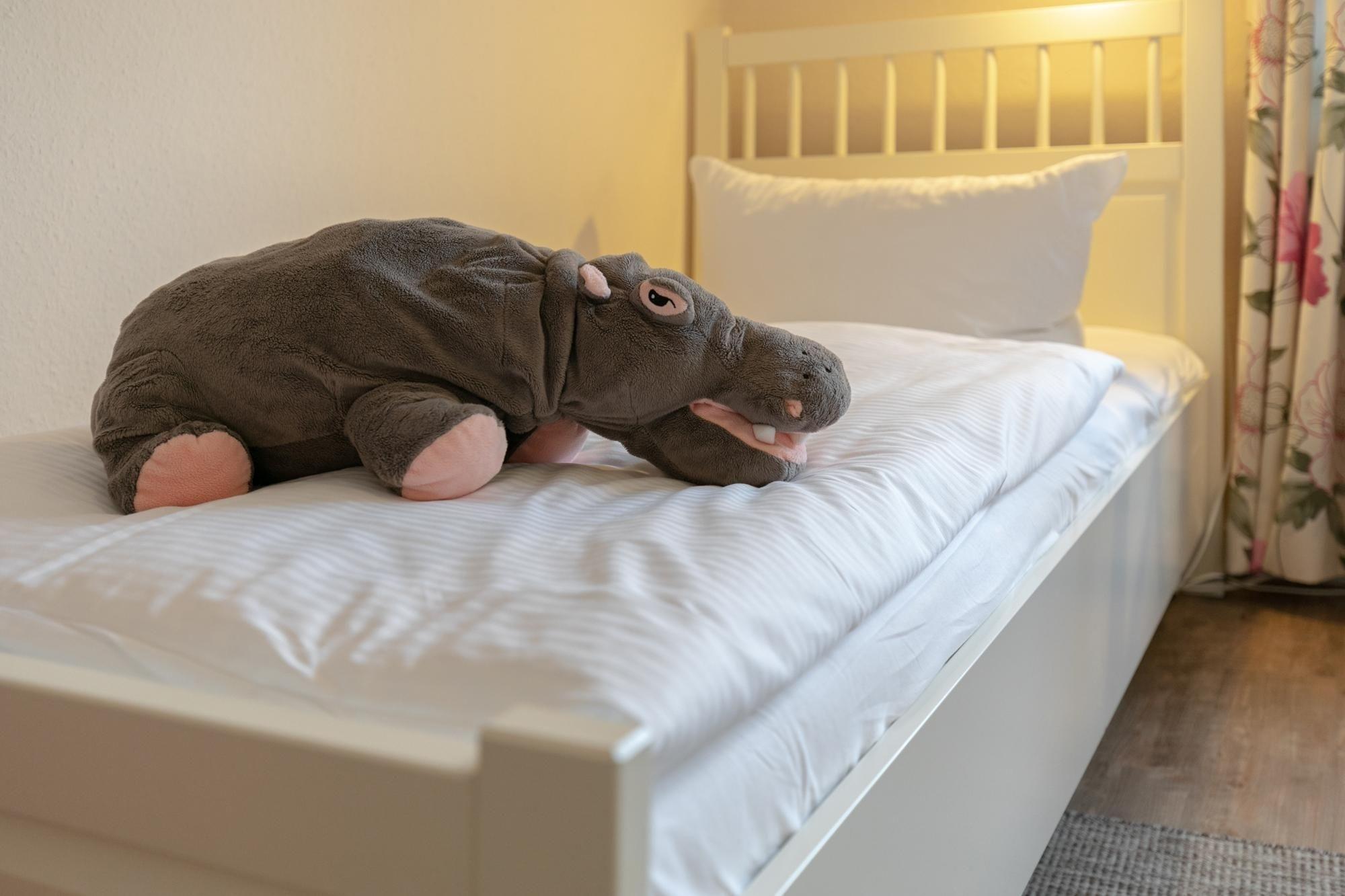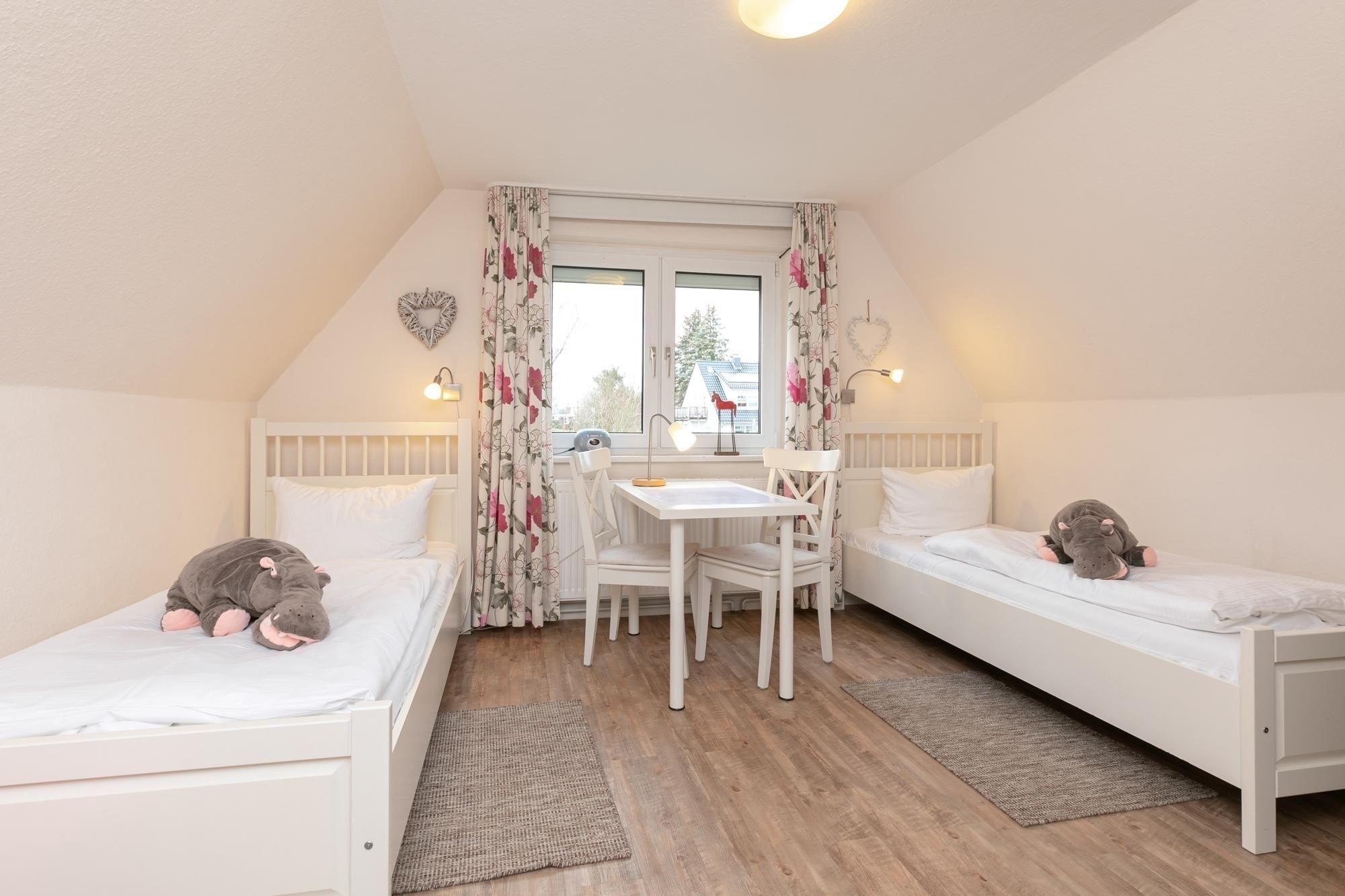 Schlafzimmer 2: 2 Einzelbetten (2x 90x200 cm), TV, Kleiderschrank, Platz für eine Kinderreisebett, Verdunkelung (Außenrolllade)
