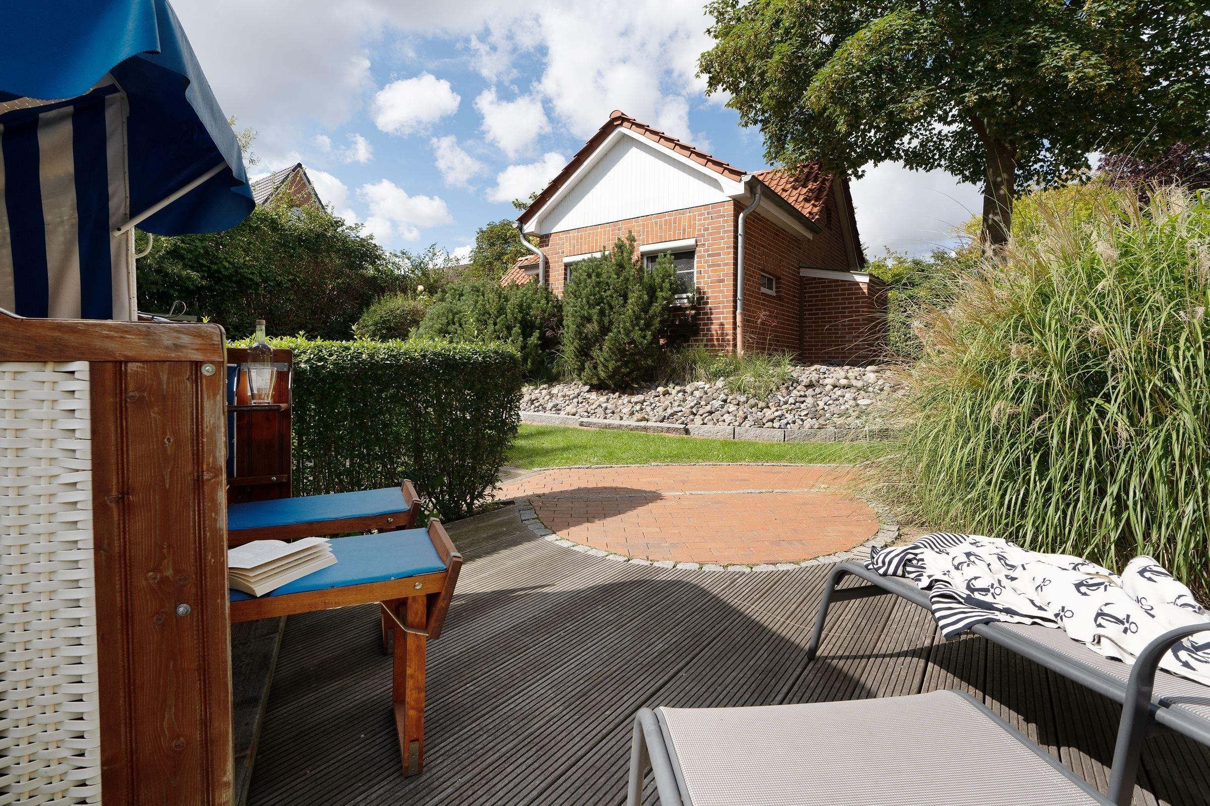 Moderne Ferienwohnung in Grömitz mit Terrasse, Kamin und Strandkorb, nur wenige Gehminuten vom Ostseestrand entfernt.