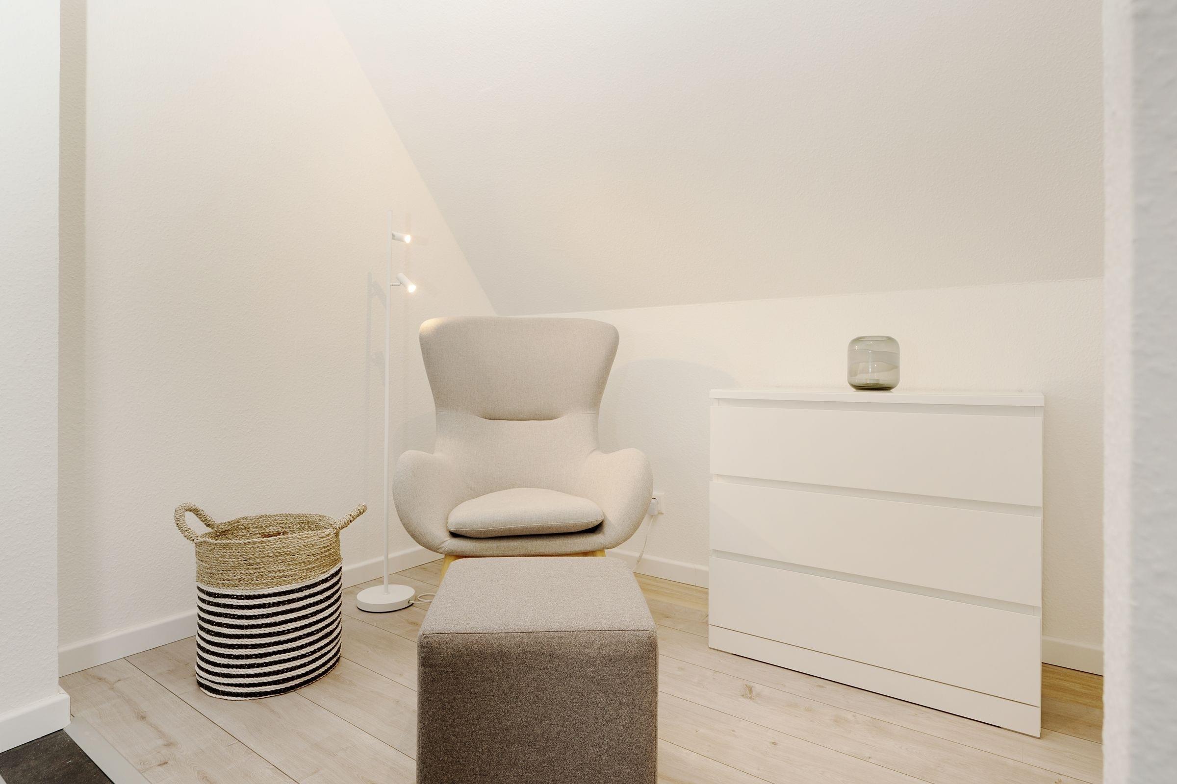 Ein eigener PKW-Außenstellplatz befindet sich direkt hinter dem Gebäude. Ihre Fahrräder können Sie im abschließbaren Fahrradkeller unterbringen. Ein kostenfreier WLAN-Anschluss ist vorhanden. Das Haus verfügt über einen Fahrstuhl sowie barrierearme Zugänge. Waschmaschine und Trockner stehen zu Ihrer Nutzung im Waschraum des Hauses bereit. Eine Entkalkungsanlage sorgt im ganzen Haus für natürlich weiches Wasser.