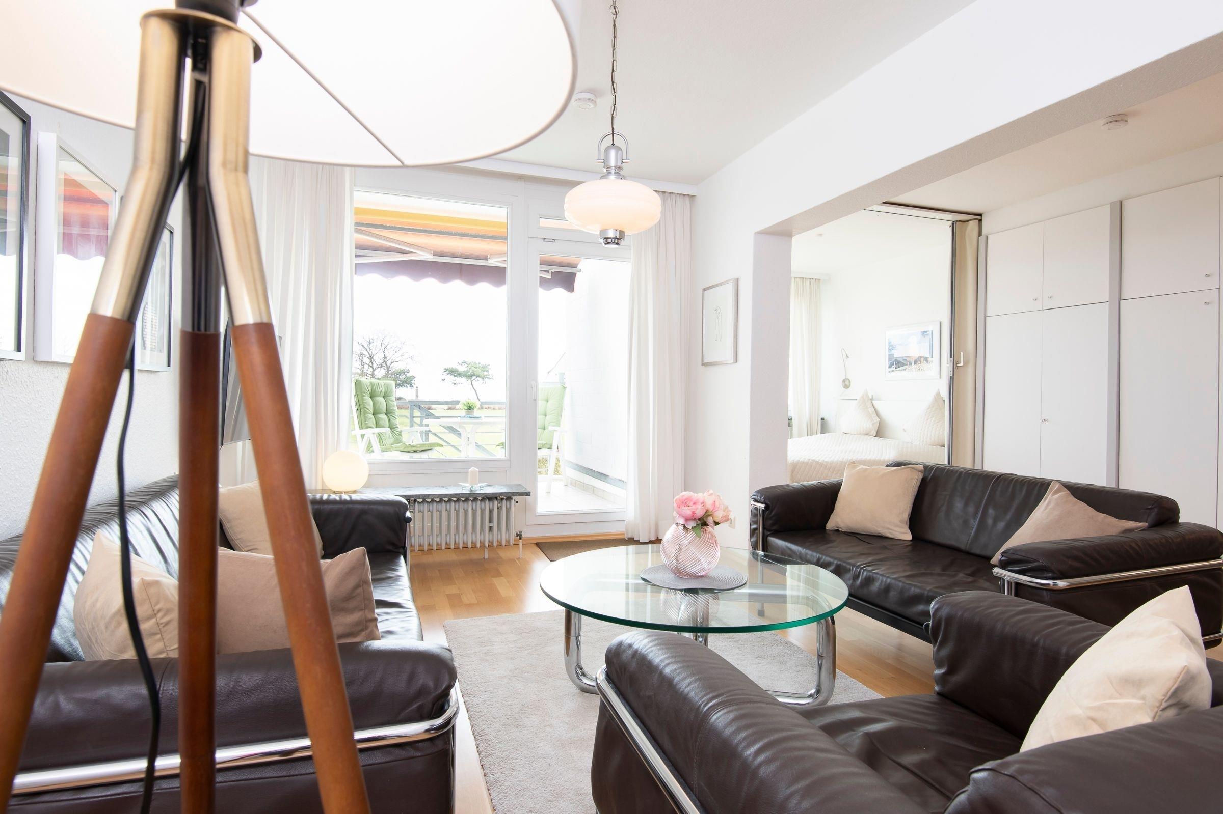 Gemütliche Ferienwohnung mit Meerblick, Strandzugang und Terrasse in Grömitz, ideal für erholsame Ostseeferien.
