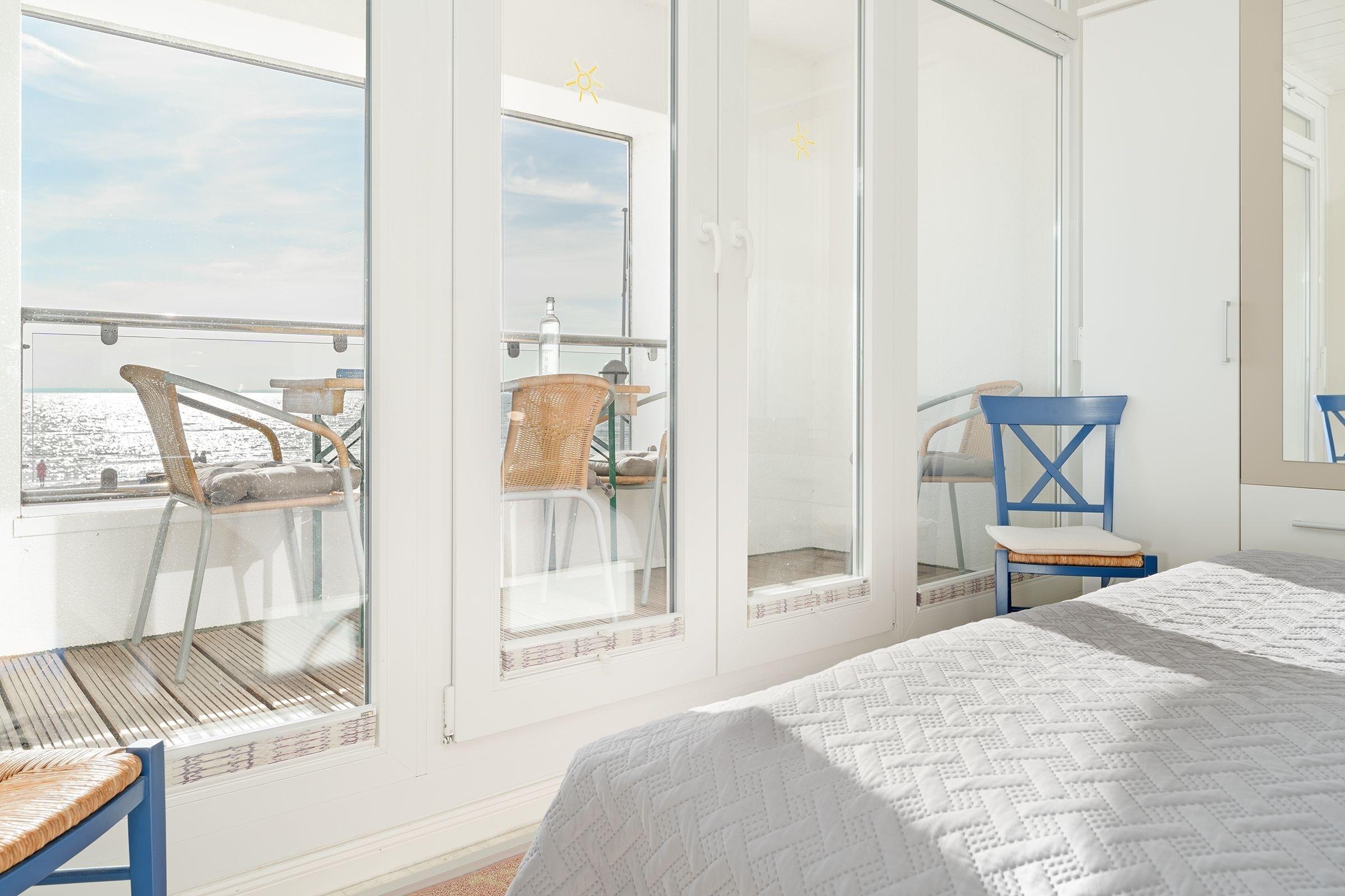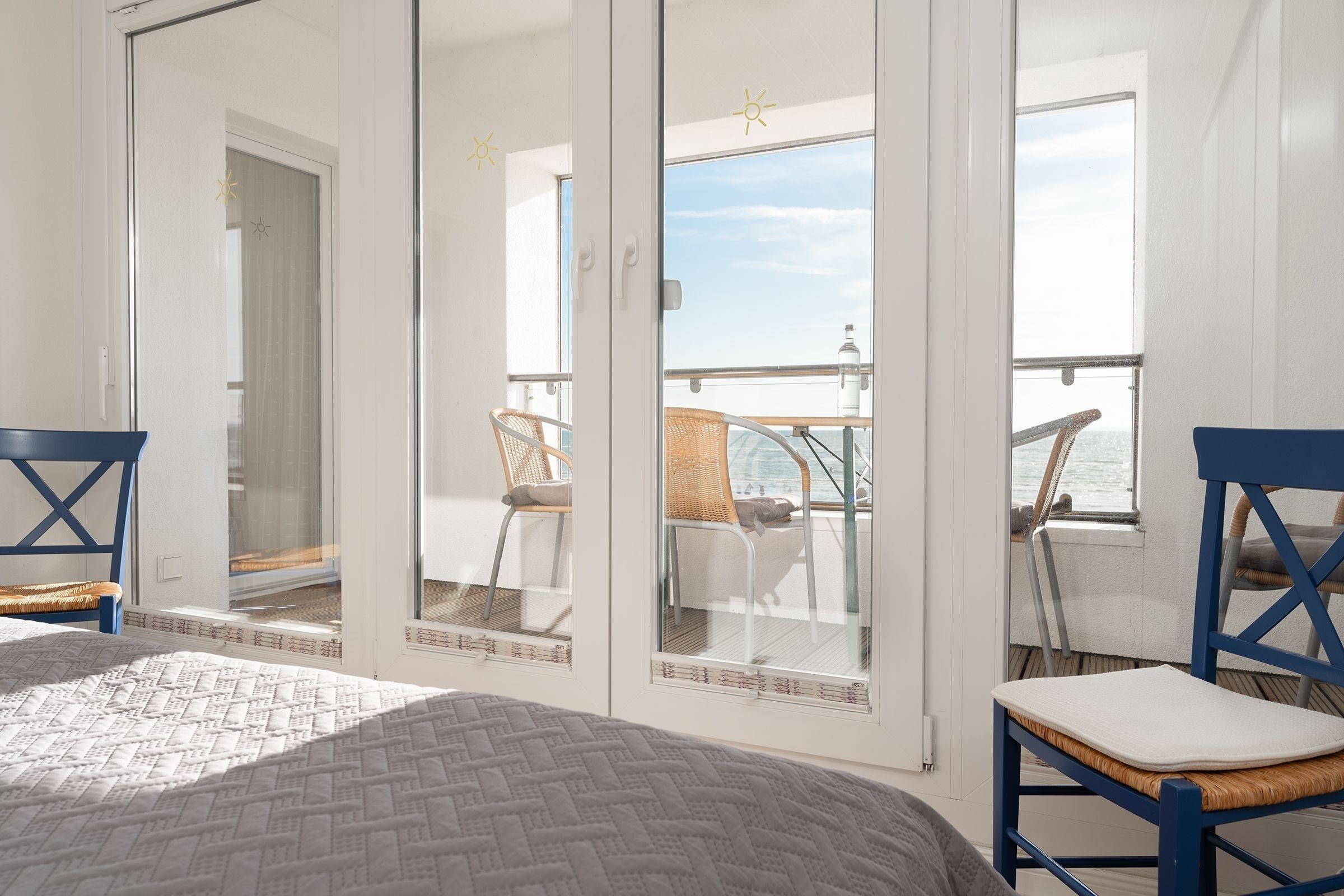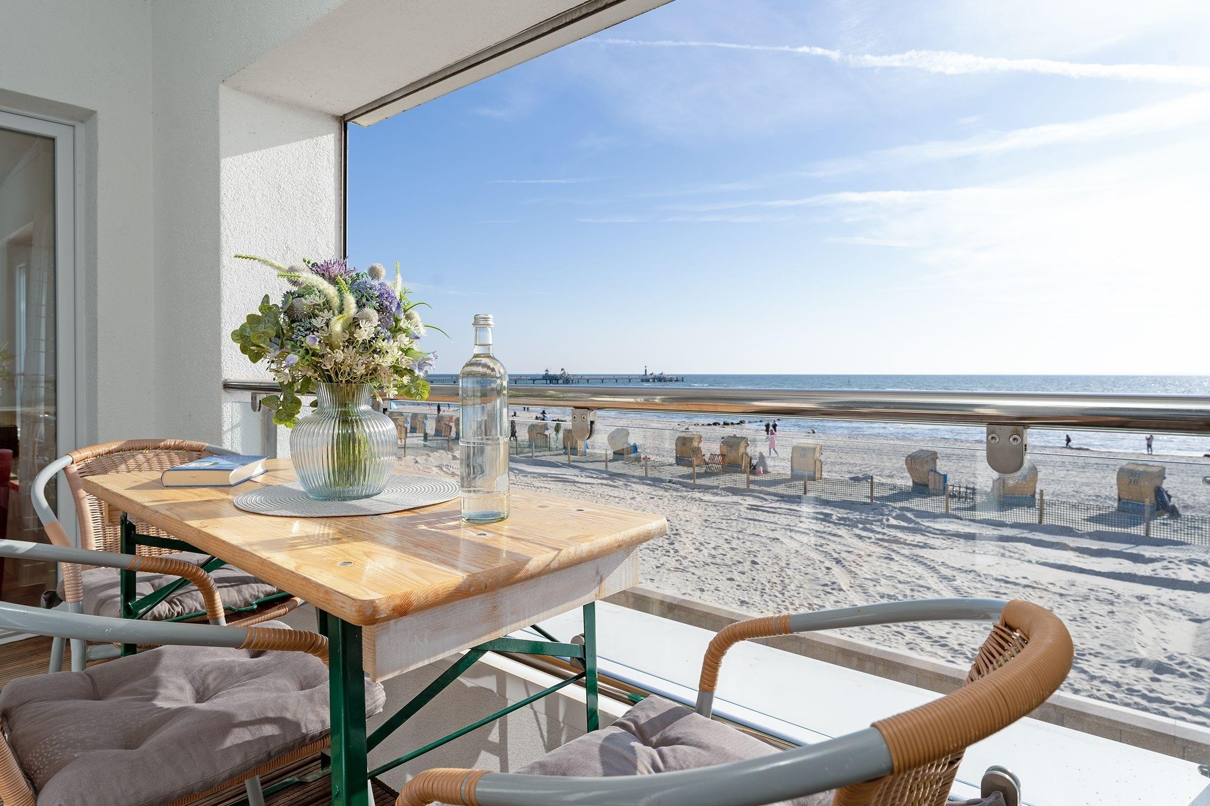 Sehr zentral gelegen. Schöner Blick auf den Strand und die Ostsee. Kleiner innenliegender Balkon wo man sich auch bei Regen gut aufhalten kann.
