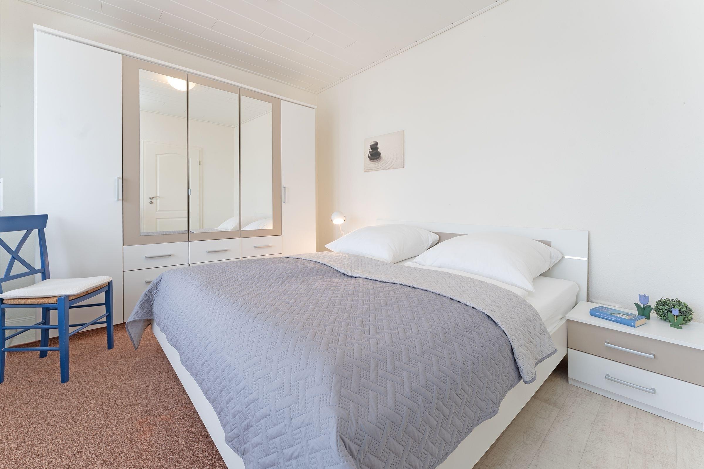 Dieses Feriendomizil liegt im 1. Obergeschoss. Ausgelegt für 6 Personen verteilen sich die 96 m² auf 4 Zimmer, davon 3 Schlafzimmer und ein Wohnzimmer.