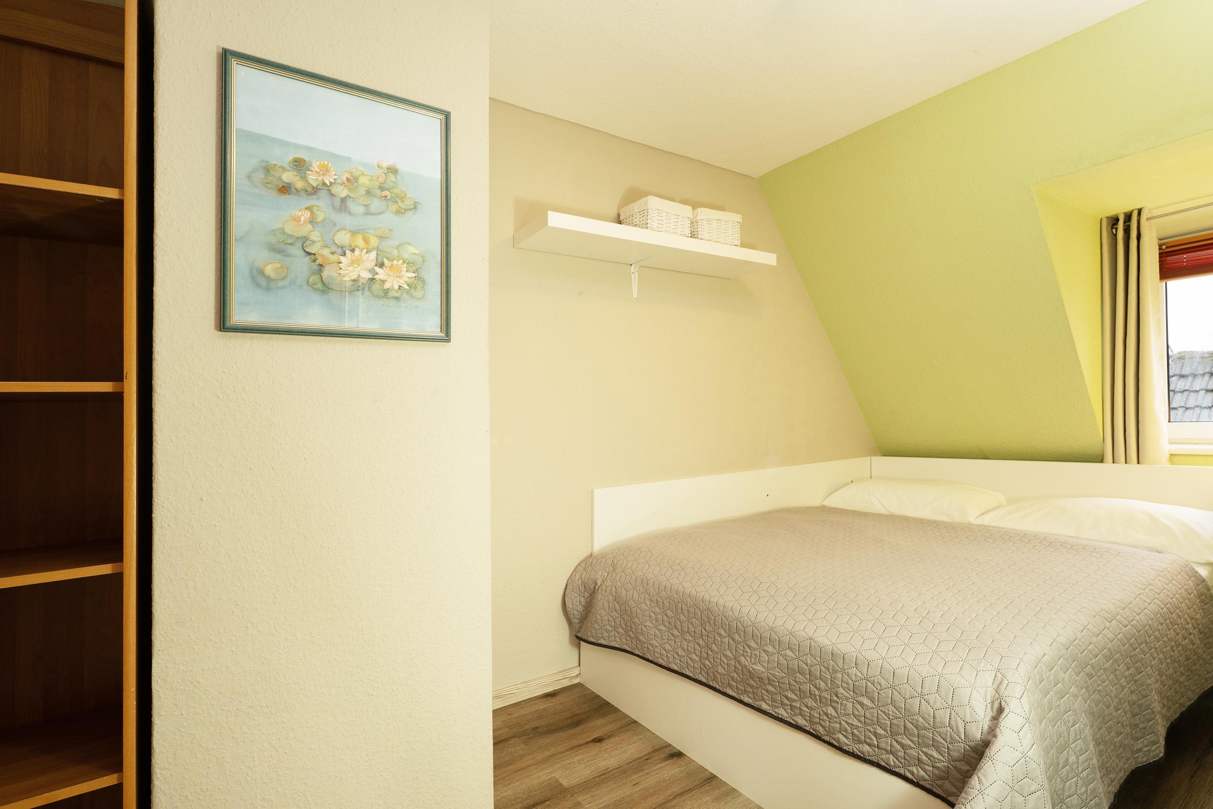 Schlafzimmer 1: 1 Boxspring-Doppelbett (2x 90x200 cm), Kleiderschrank, Innenjalousien.