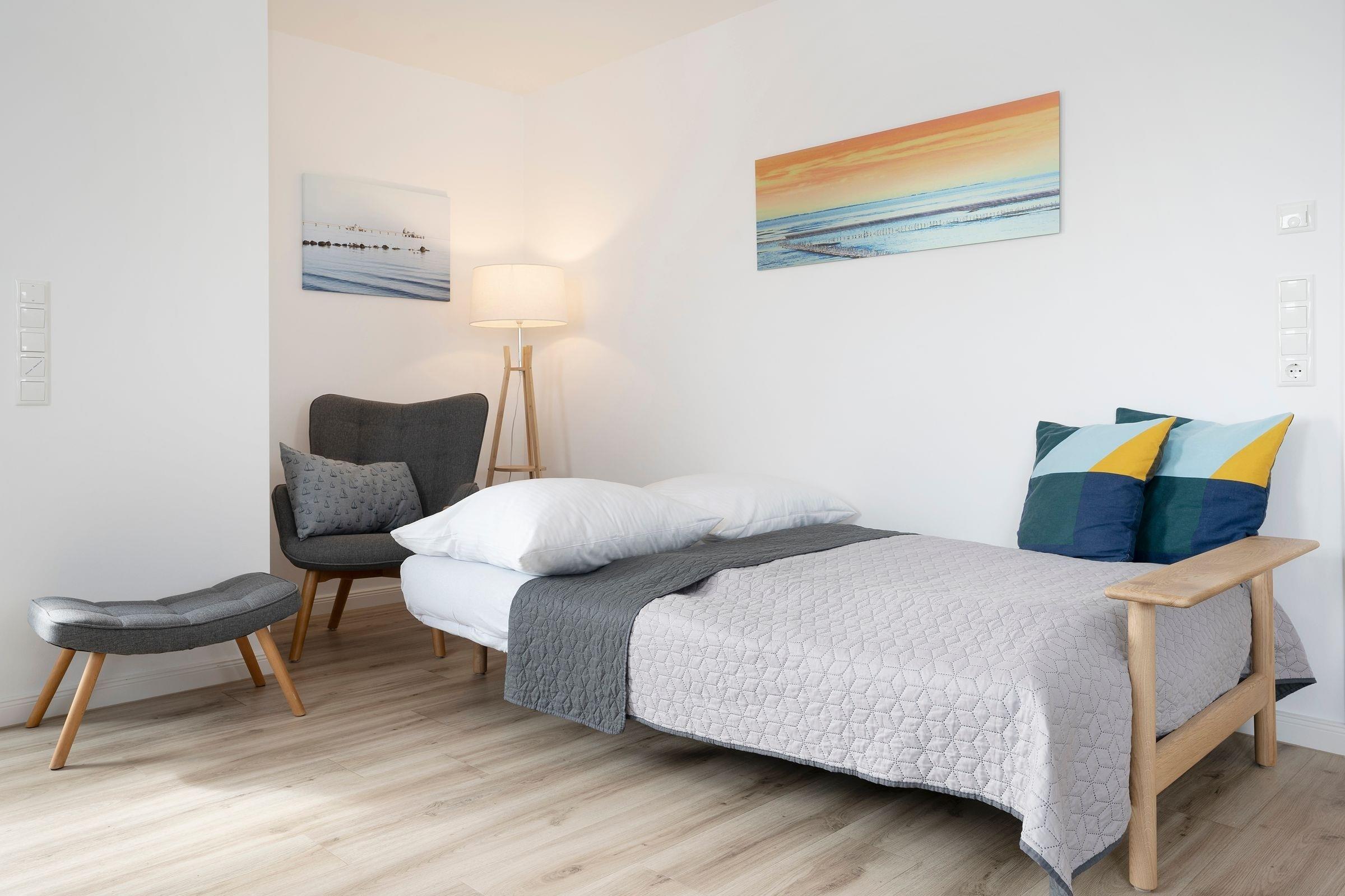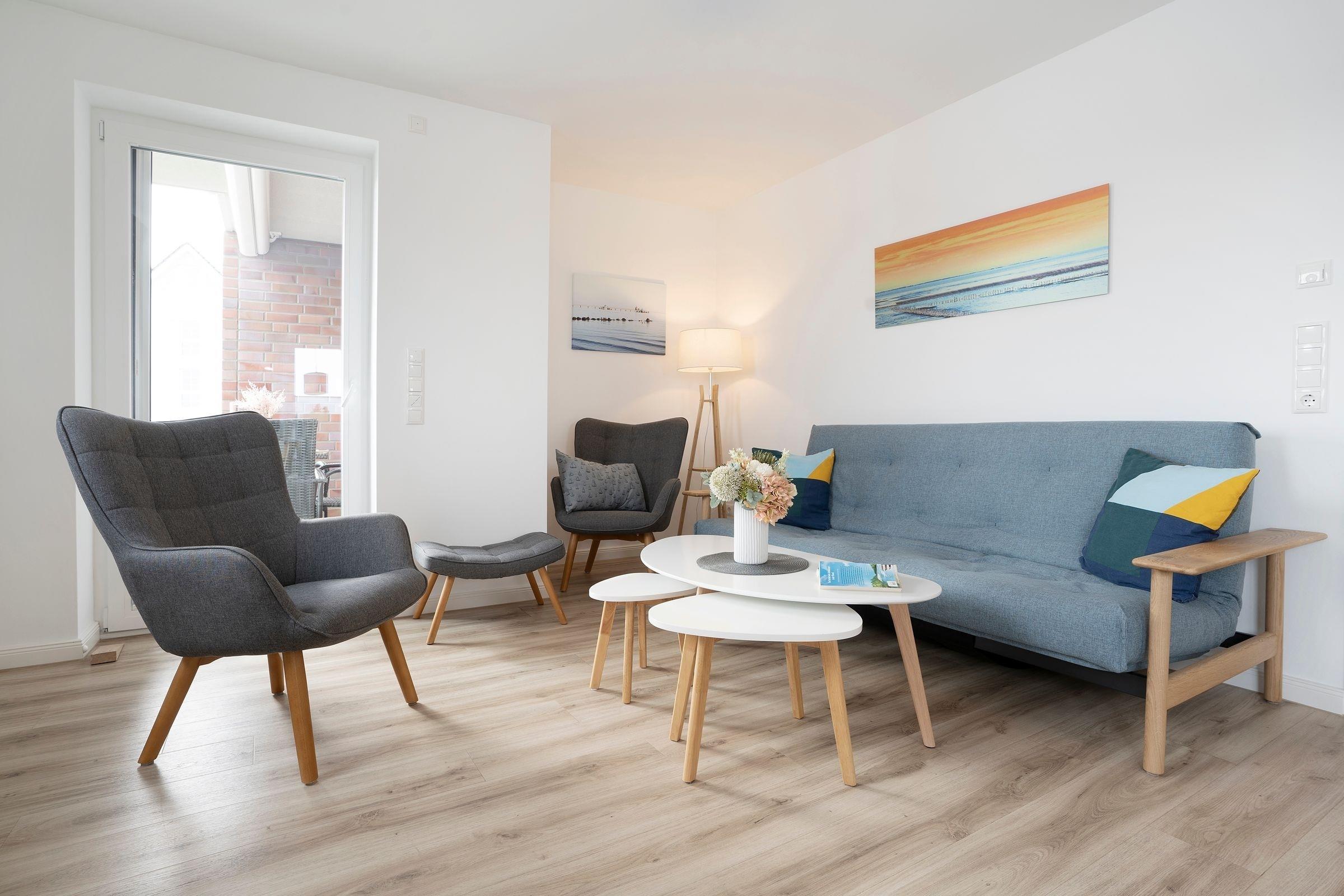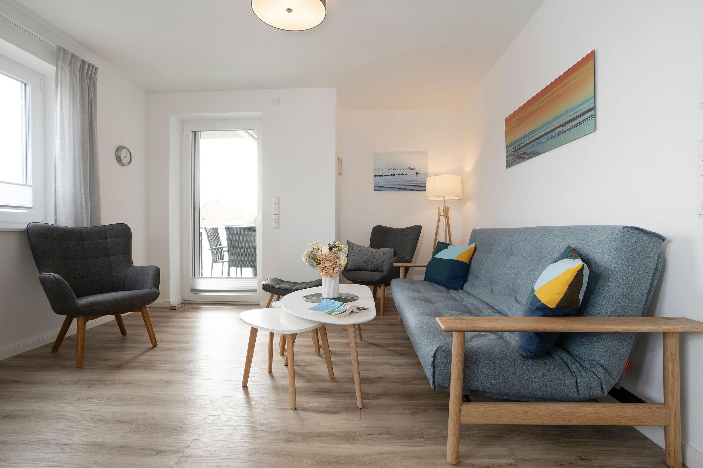 Moderne Ferienwohnung in Grömitz mit Balkon, Fußbodenheizung und WLAN, ideal für erholsame Tage an der Ostsee.