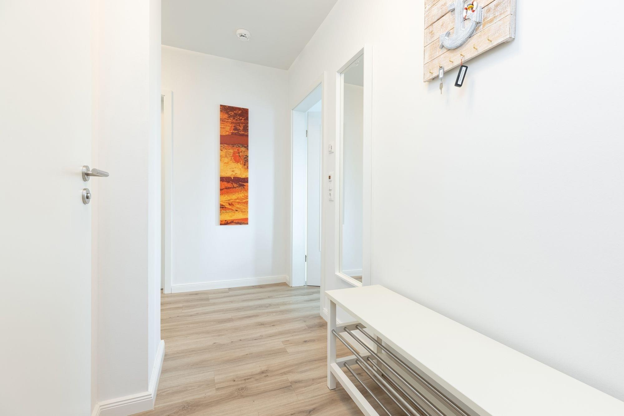 Willkommen im Urlaub! Diese 74 m² große 3-Zimmer-Ferienwohnung im 2. OG für max. 4 Erwachsene und 1 Kind erreichen Sie bequem mit dem Fahrstuhl. Öffnen Sie die Tür und treten Sie ein in Ihr Wohlfühlparadies.