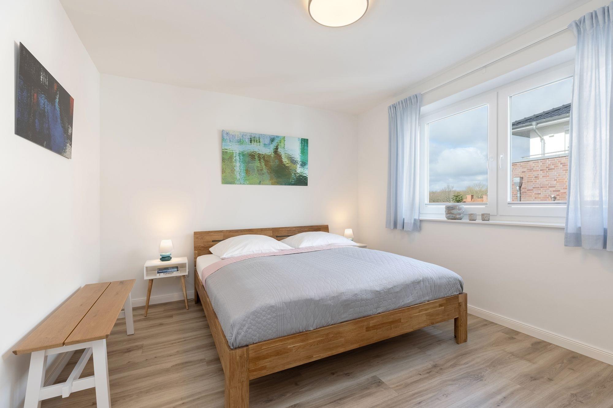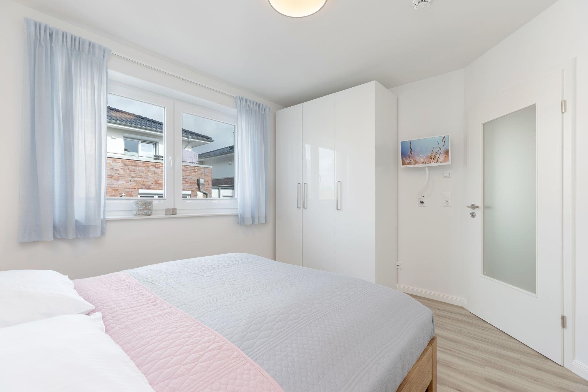 Schlafzimmer 1: 1 Doppelbett (2x 90x200 cm), Kleiderschrank, TV, Verdunkelung: Außenjalousie