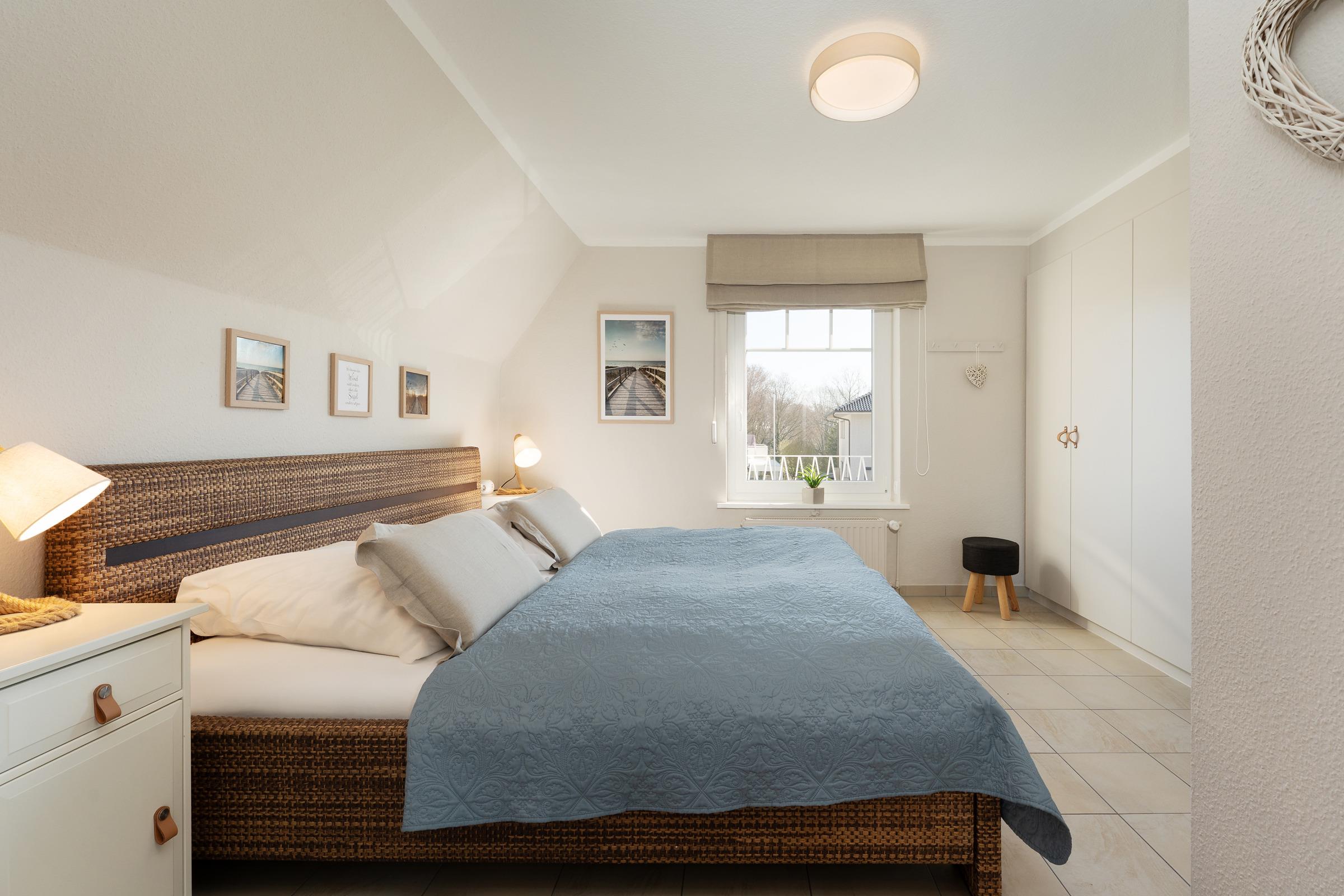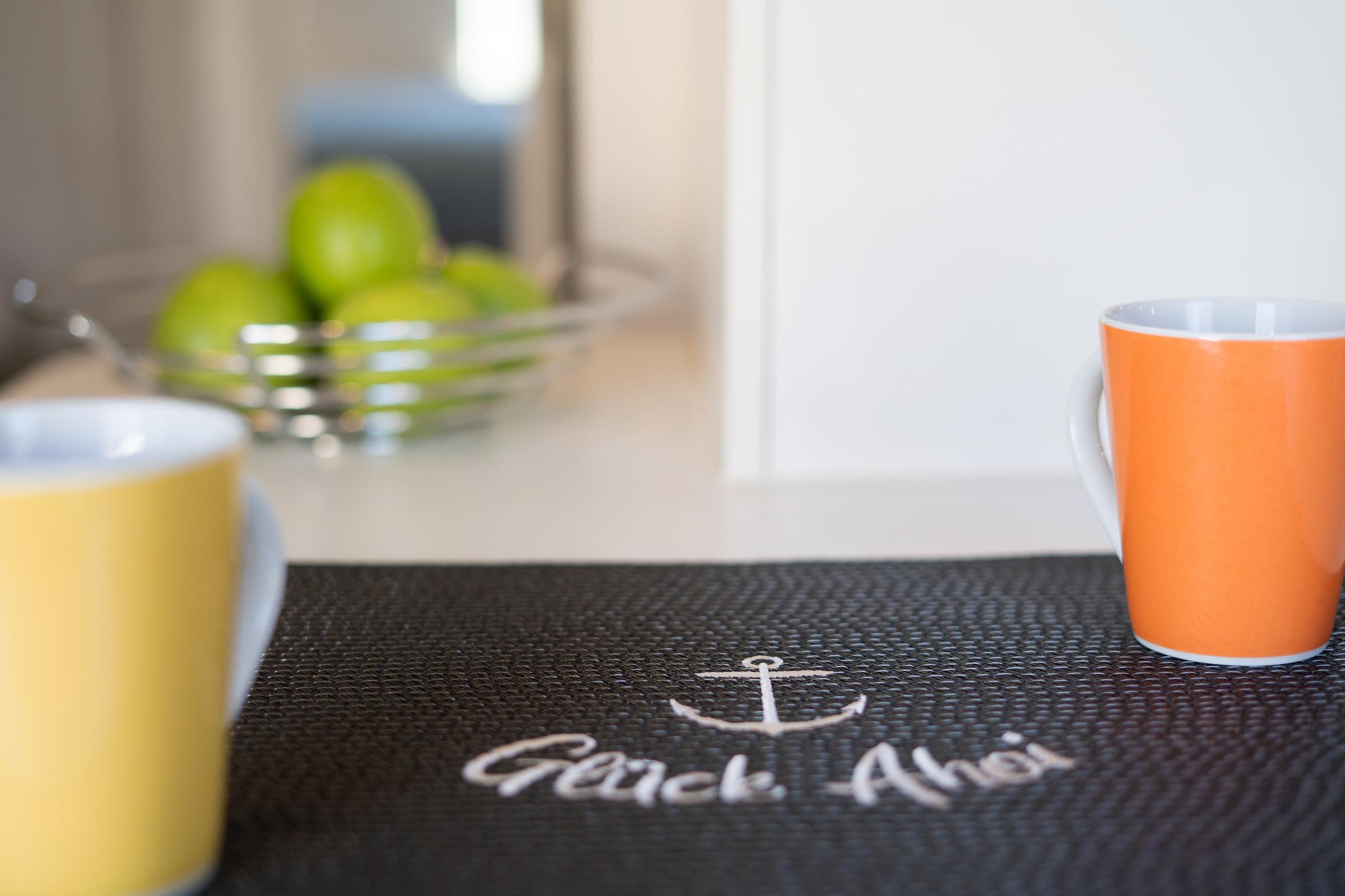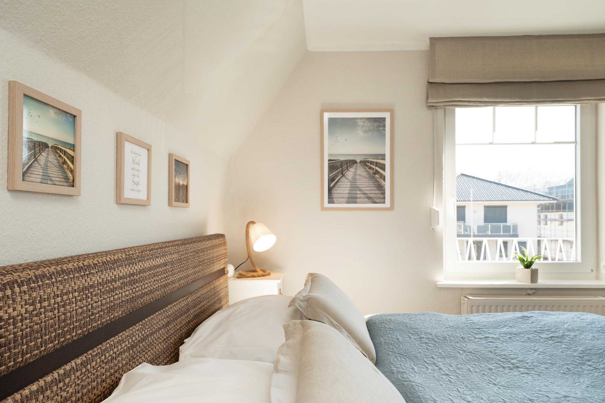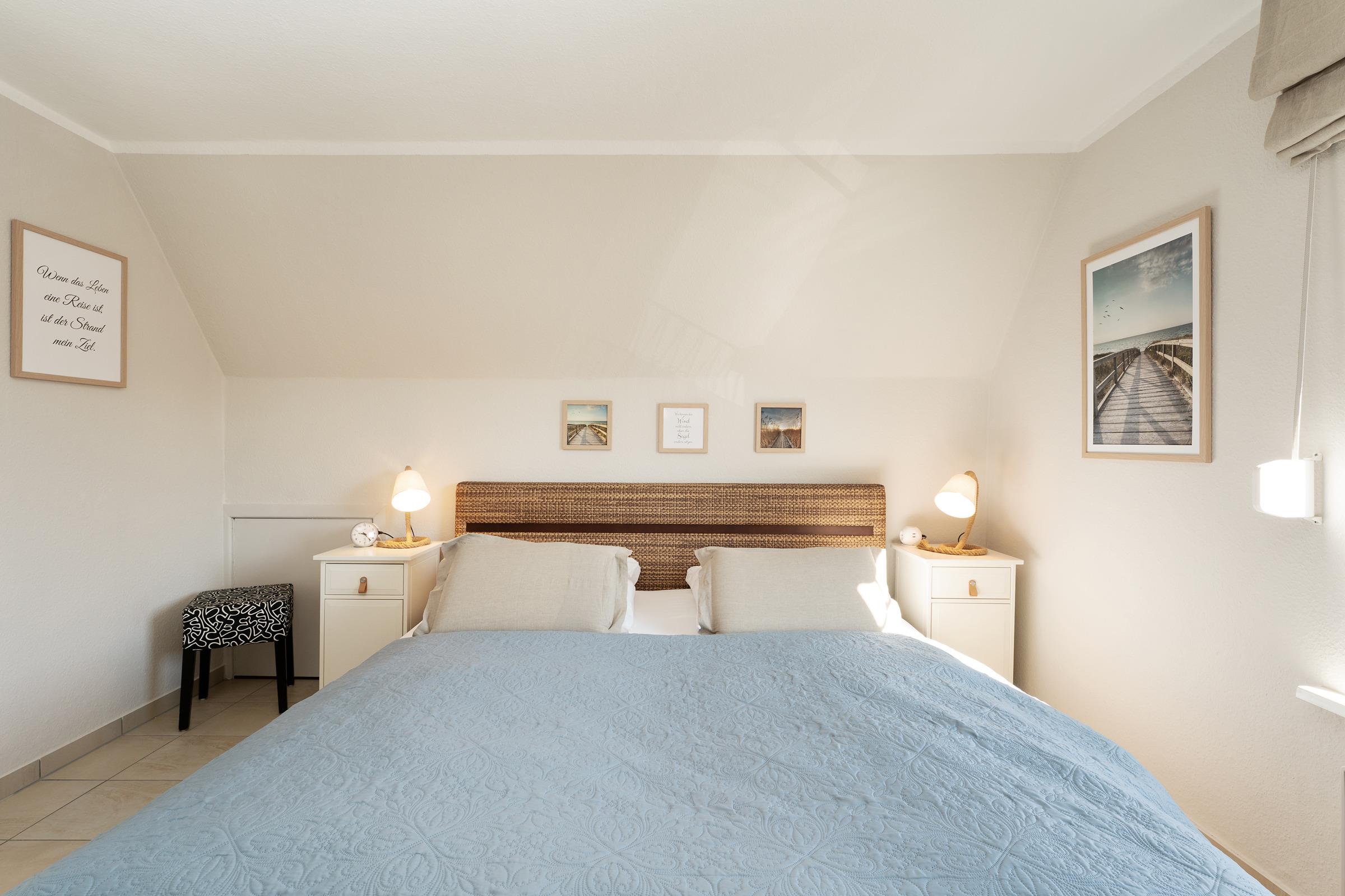 Im hellen und freundlichen Wohnbereich können Sie ungestörte Zweisamkeit genießen. Auch an Regentagen lässt es sich hier gut aushalten, denn ein Flat-TV und ein kostenloser WLAN-Anschluss zum Streamen Ihrer Lieblingsmusik stehen Ihnen zur Verfügung. In der zum Wohnbereich offenen Küche sorgen Sie mühelos für Ihr leibliches Wohl. Dank hochwertiger Ausstattung geht die Zubereitung schmackhafter Köstlichkeiten leicht von der Hand - zum Beispiel eine Kaffeespezialität aus der Nespresso-Kapselmaschine. Ein gemütlicher Essplatz ist ebenfalls integriert. Bei Sonnenschein können Sie Ihre Mahlzeiten aber auch auf der eigenen großzügigen Dachterrasse genießen, bei Bedarf verwandelt diese sich durch eine Markise in ein schattiges Plätzchen. Sonnenliegen, Terrassenmöbel und auch ein Strandkorb bieten vielfältige Rückzugs- und Entspannungsmöglichkeiten. Ein auf dem Steingrill zubereiteter Ostseefisch schmeckt unter freiem Himmel bei einem Glas Wein doppelt gut. Ein Sichtschutz sorgt für ungestörte Urlaubsmomente. Erholung und Ruhe finden Sie im komfortablen Doppelbett (2x 90x200 cm) im separaten Schlafzimmer, das sich angenehm abdunkeln lässt. Ihre Reisegarderobe bringen Sie mühelos in einem geräumigen Kleiderschrank unter. Das zeitlose Tageslichtduschbad rundet die stilvolle Ausstattung dieses Feriendomizils ab.