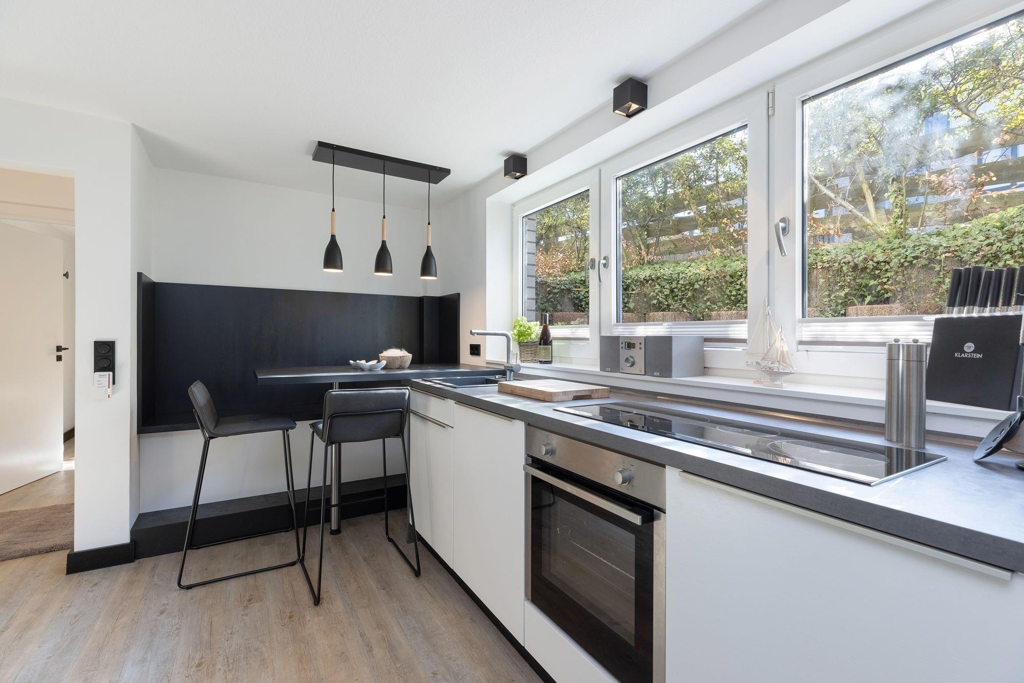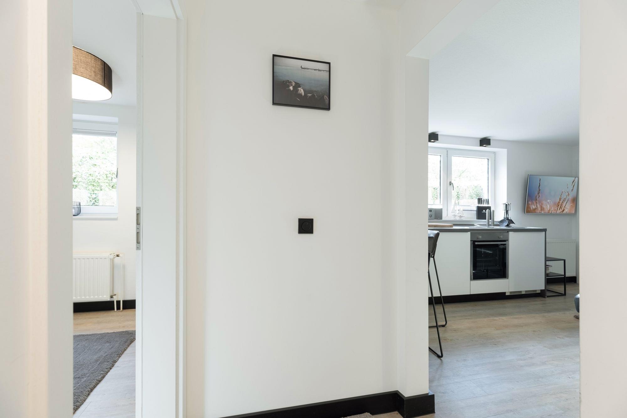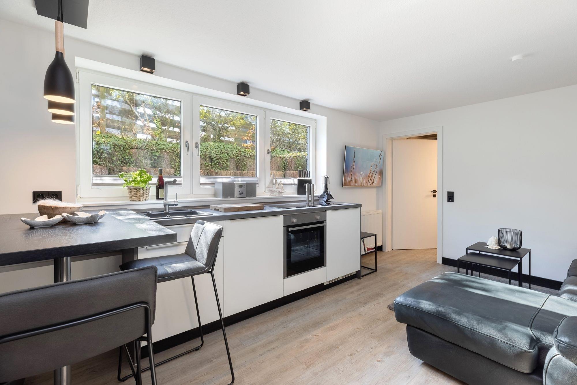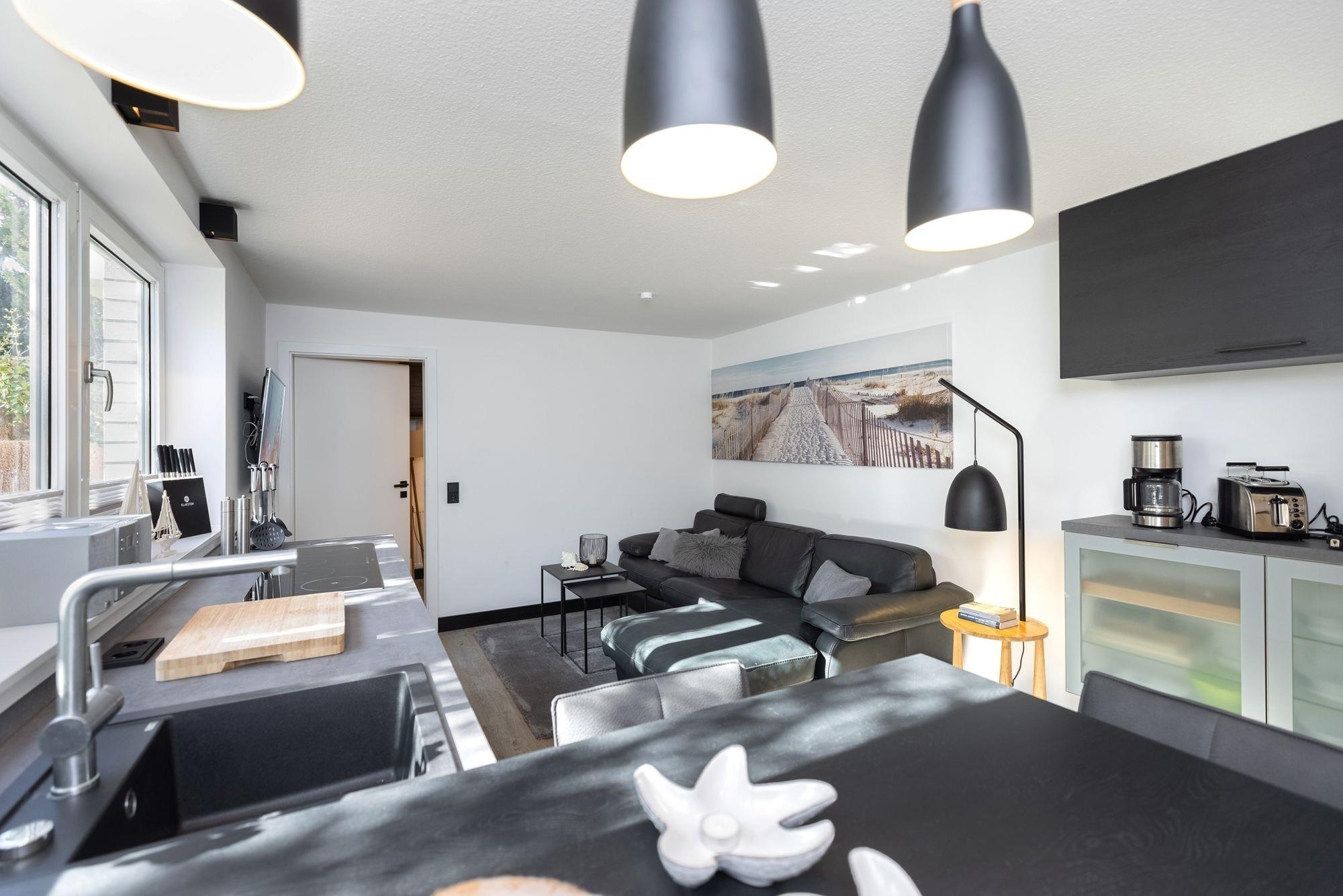 Der offene Wohn- und Kochbereich lässt keine Wünsche offen. Hier können Sie wertvolle Familienzeit verbringen und gemeinsam kochen, essen, spielen und lachen. In der voll ausgestatteten Küche sollte es Ihnen an nichts fehlen. Über einen kostenlosen WLAN-Anschluss können Sie Ihre Lieblingsmusik streamen oder erste Urlaubsfotos mit Ihren Lieben daheim teilen. Zur Nachtruhe laden zwei separate Schlafzimmer zum Erholen ein. Im ersten Schlafzimmer mit Kleiderschrank erwartet Sie ein komfortables Doppelbett (160x200 cm). Im zweiten Schlafzimmer können Sie sich ebenfalls in die Kissen eines gemütlichen Doppelbettes (140x200 cm) fallen lassen. Ein Tageslichtbad mit bodentiefer Dusche und Handtuchheizkörper komplettiert die Ausstattung dieser Ferienwohnung.