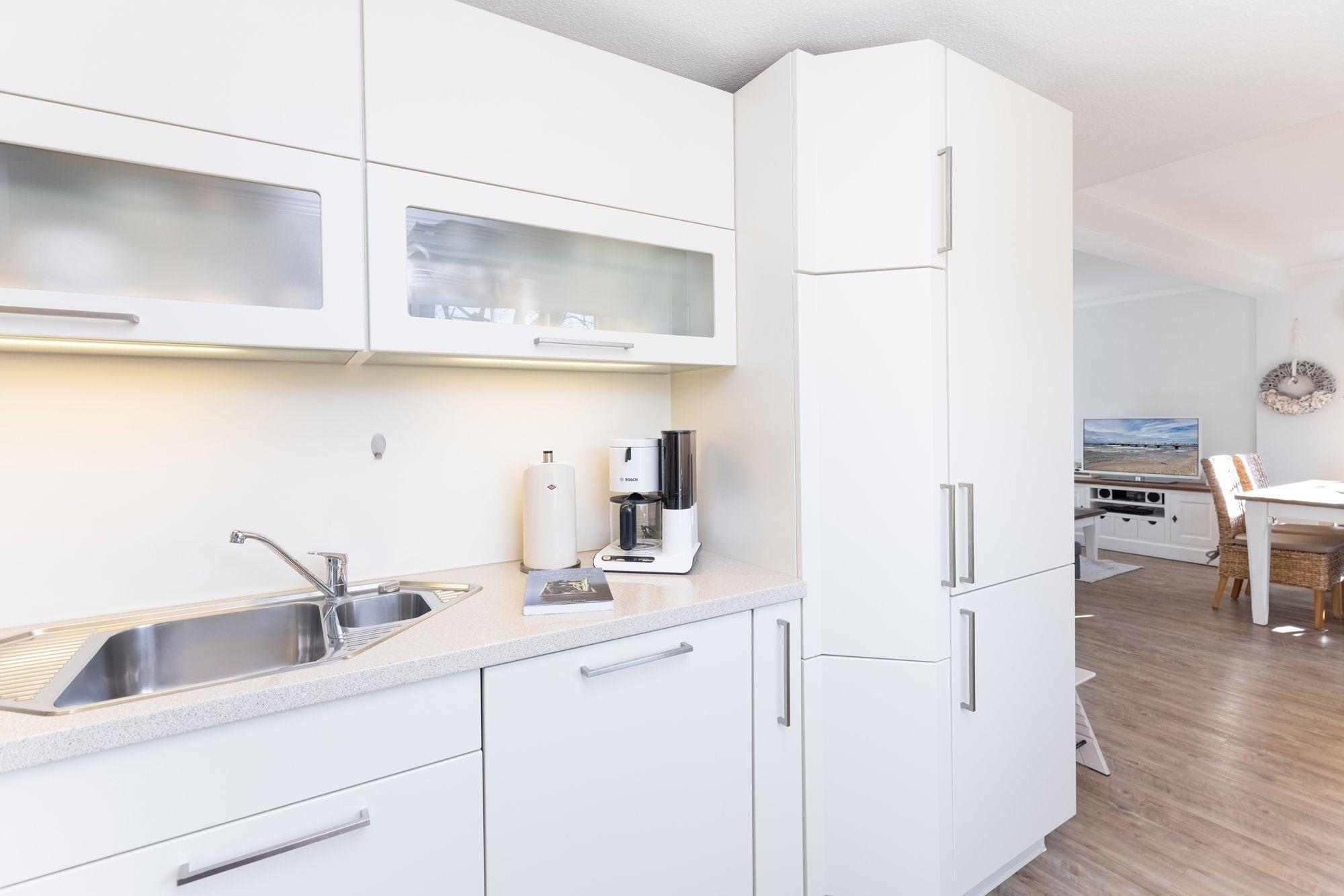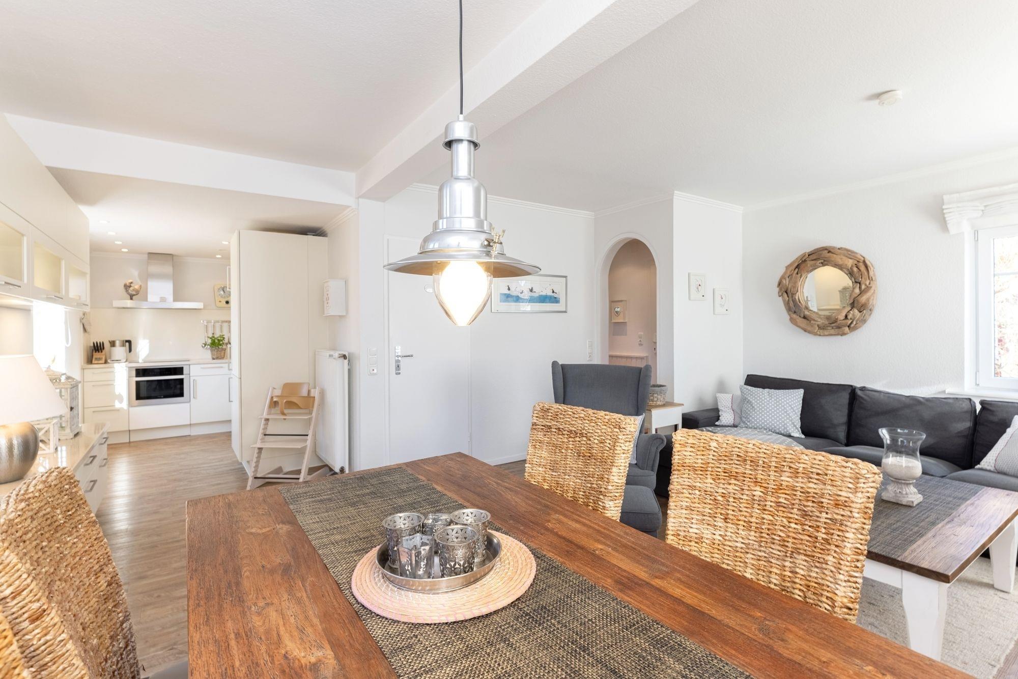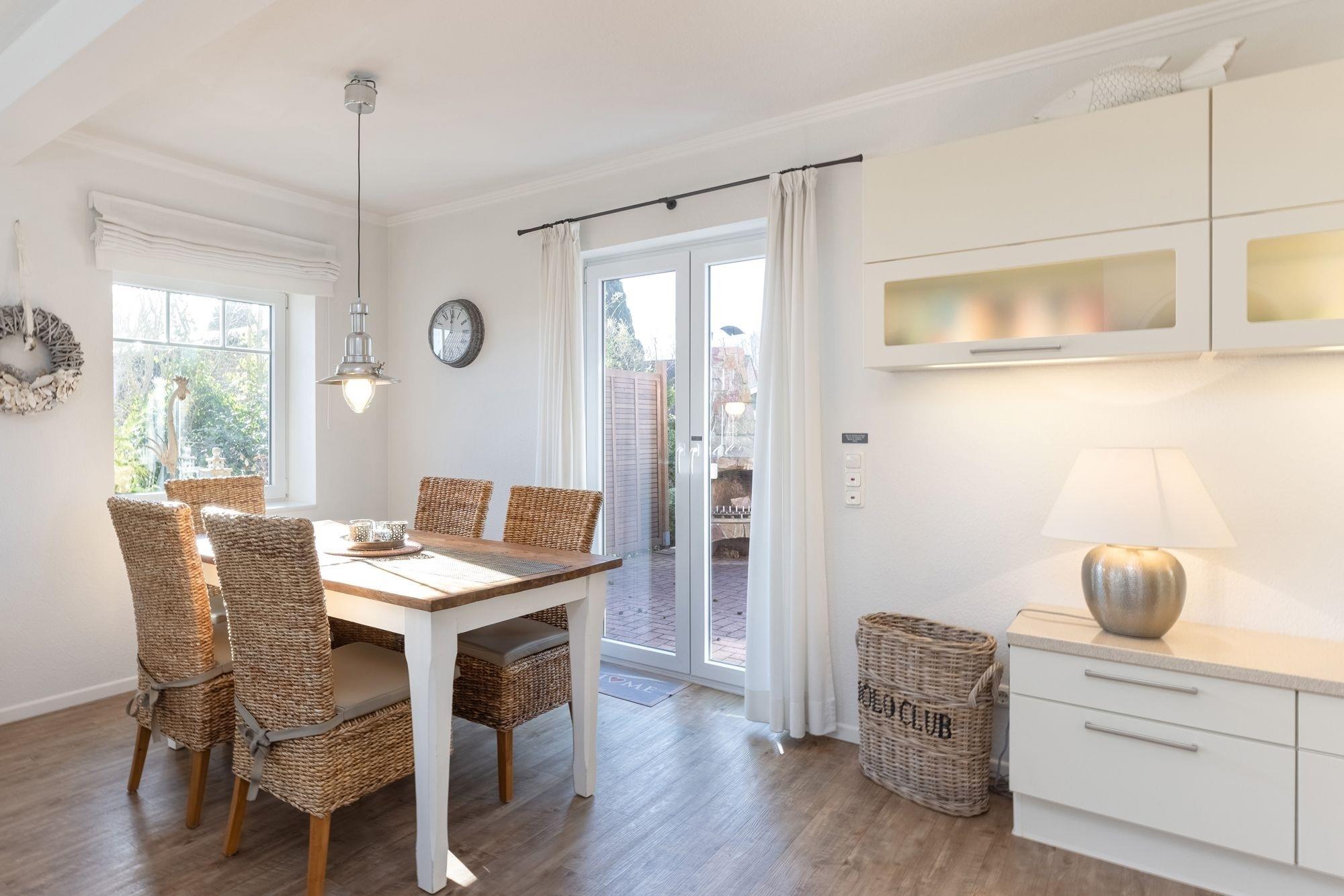 Dieses wunderschöne, frei stehende Ferienhaus mit ca. 80 m² für max. 4 Personen lässt keine Wünsche offen. Die gesamte Einrichtung ist sehr geschmackvoll am Landhausstil orientiert und lässt den Alltag schnell vergessen. Der Wohn- und Essbereich ist durch die großen Fenster hell und lichtdurchflutet. Die offene Küche ist voll ausgestattet und hat neben vielen Extras z. B. folgende Highlights: Eine Kaffee-Kapselmaschine von Dolce Gusto, einen großen Tiefkühler und eine komplette Kinderausstattung.