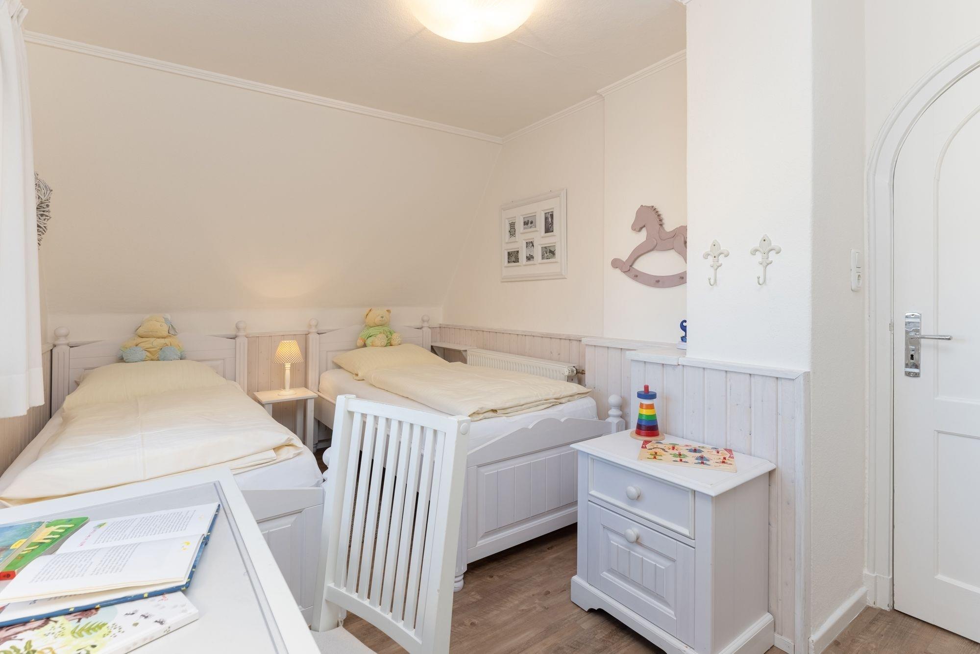 Schlafzimmer 2: 2 Einzelbetten (2x 90x200 cm), Kleiderschrank, TV, elektr. Außenrollläden, Platz für Babybetten vorhanden