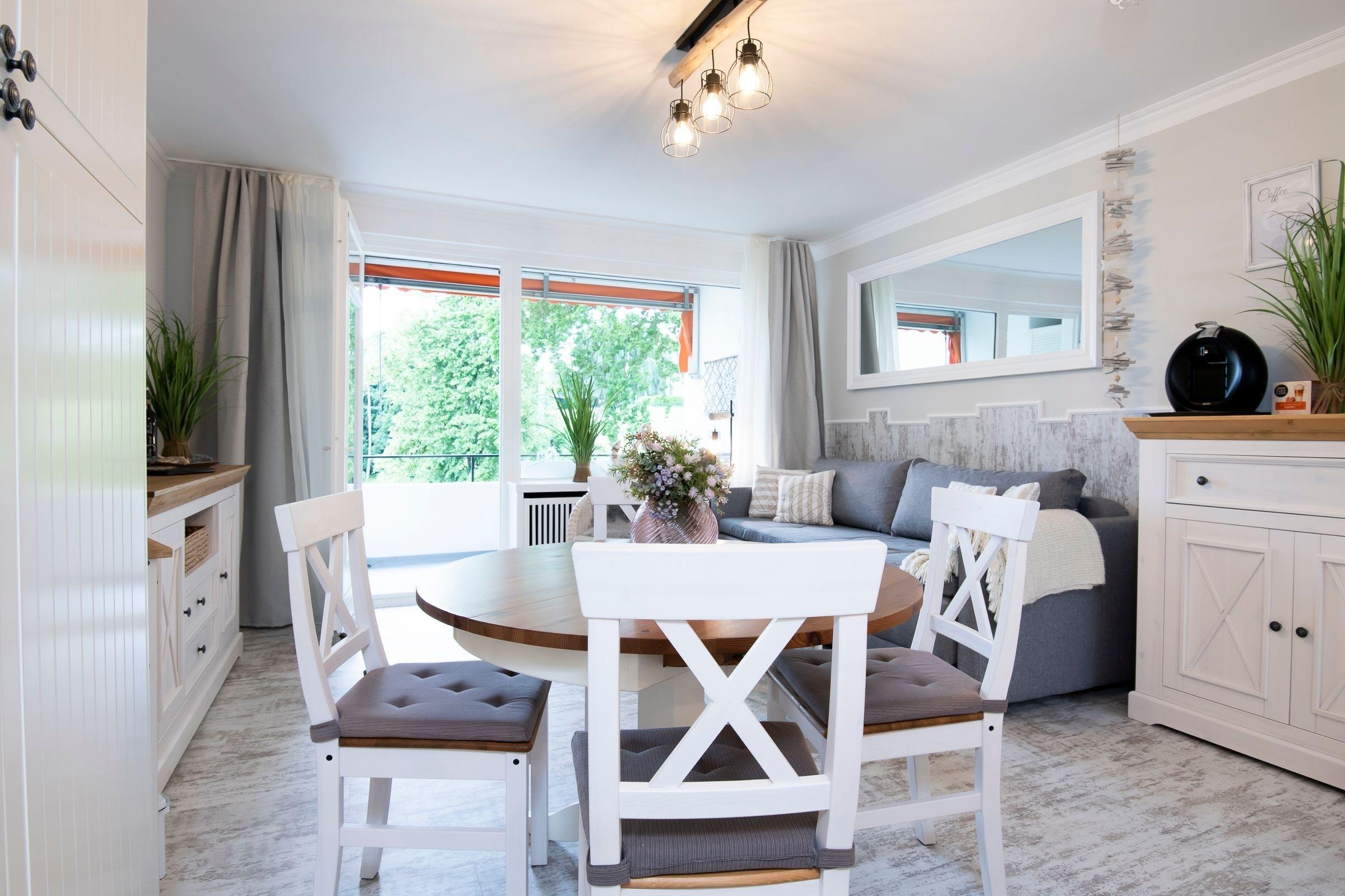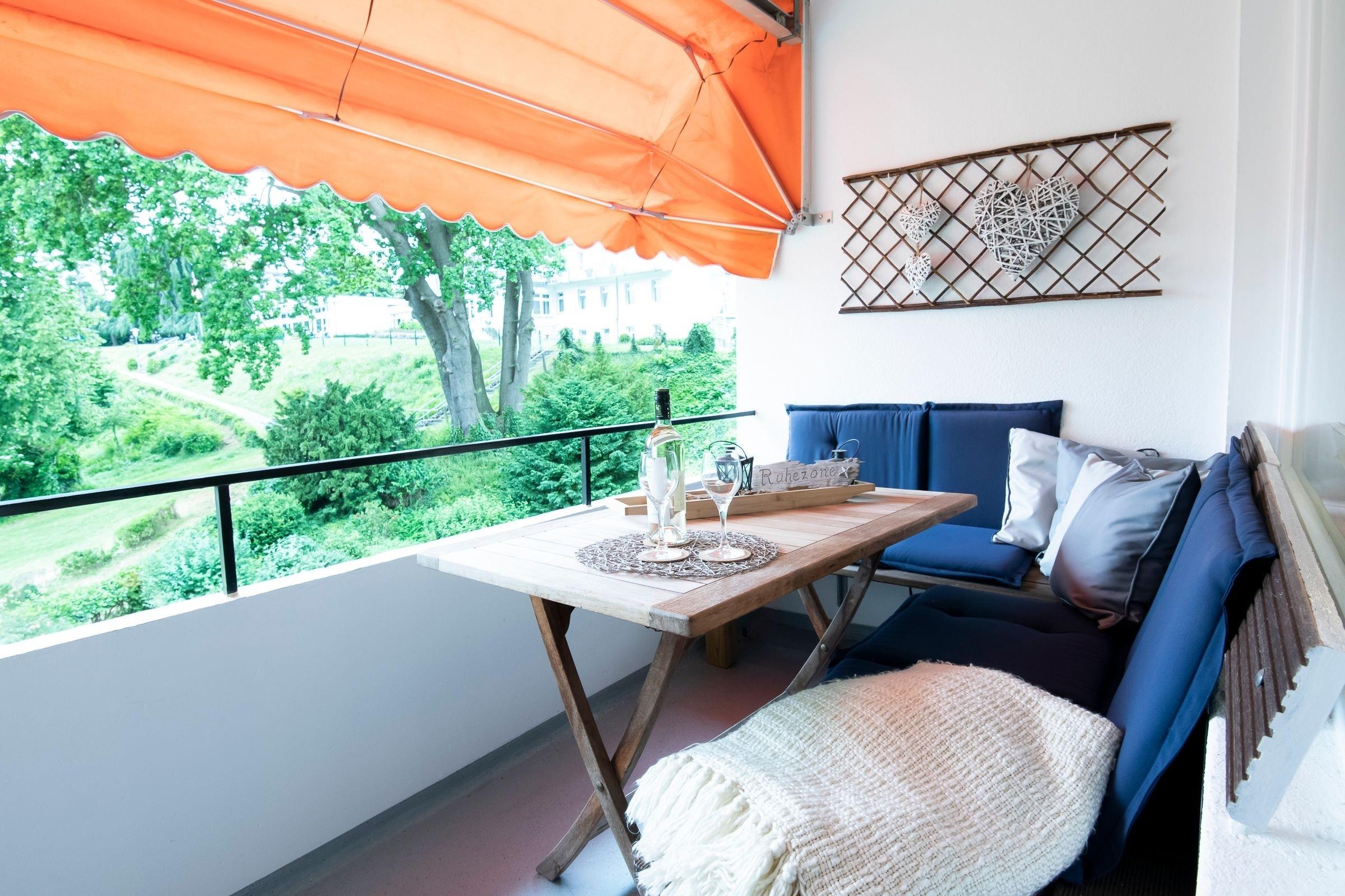 Moderne Ferienwohnung in Grömitz, nur 50 m vom Strand mit Balkon und Meerblick.