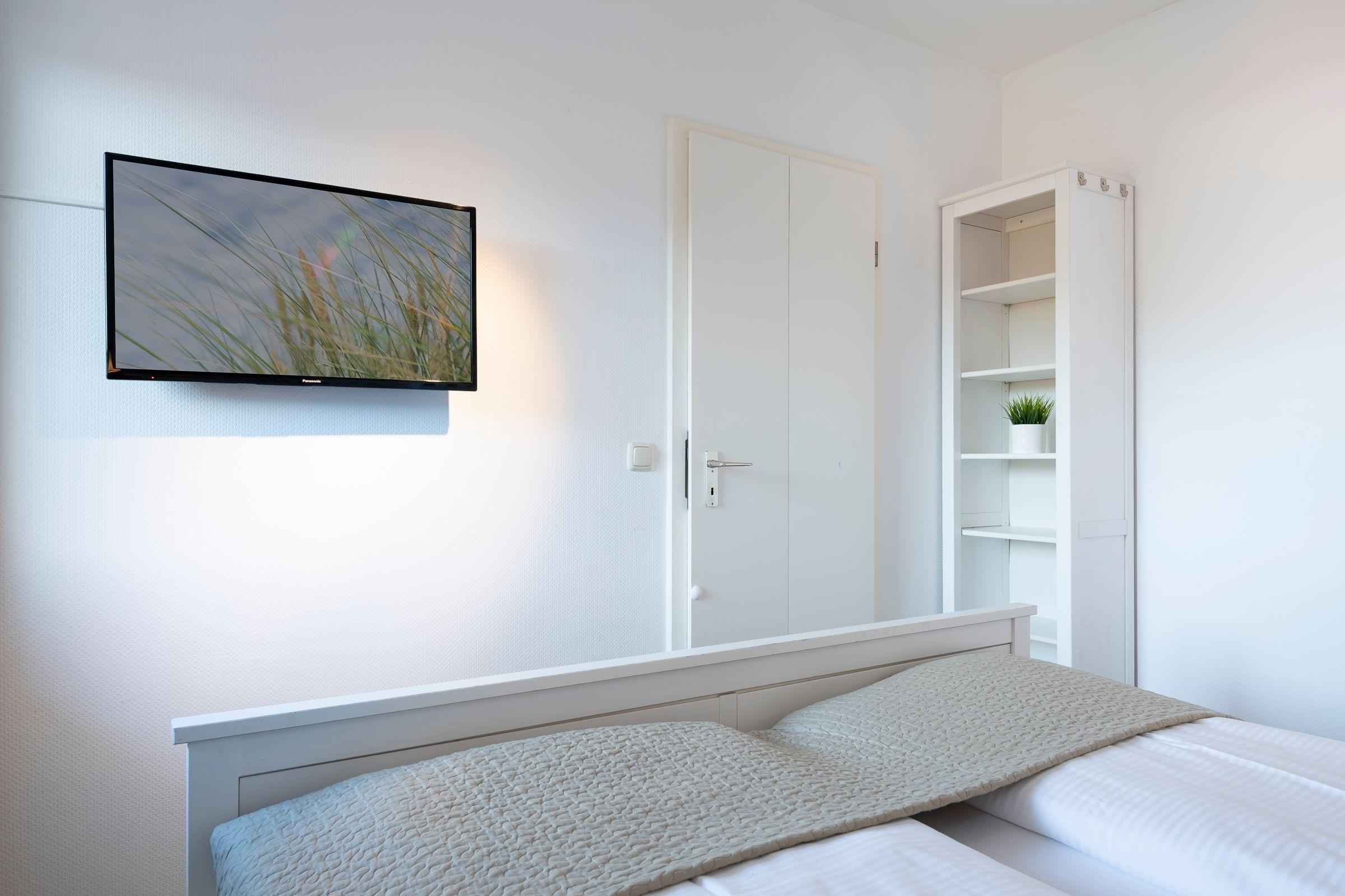 Schlafzimmer: 1 Doppelbett (2x90x200 cm), Rollläden, TV, Platz für ein Babybett