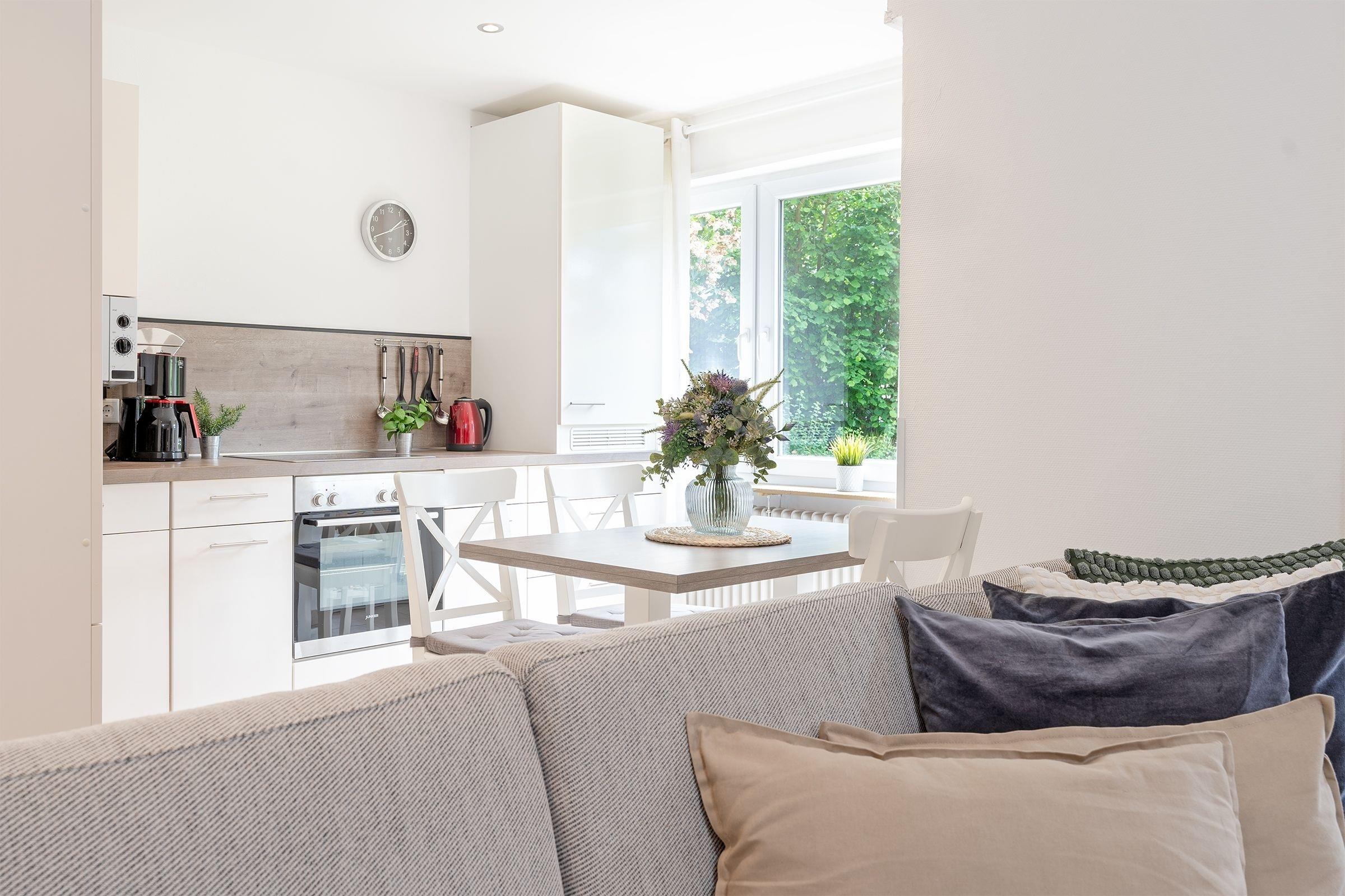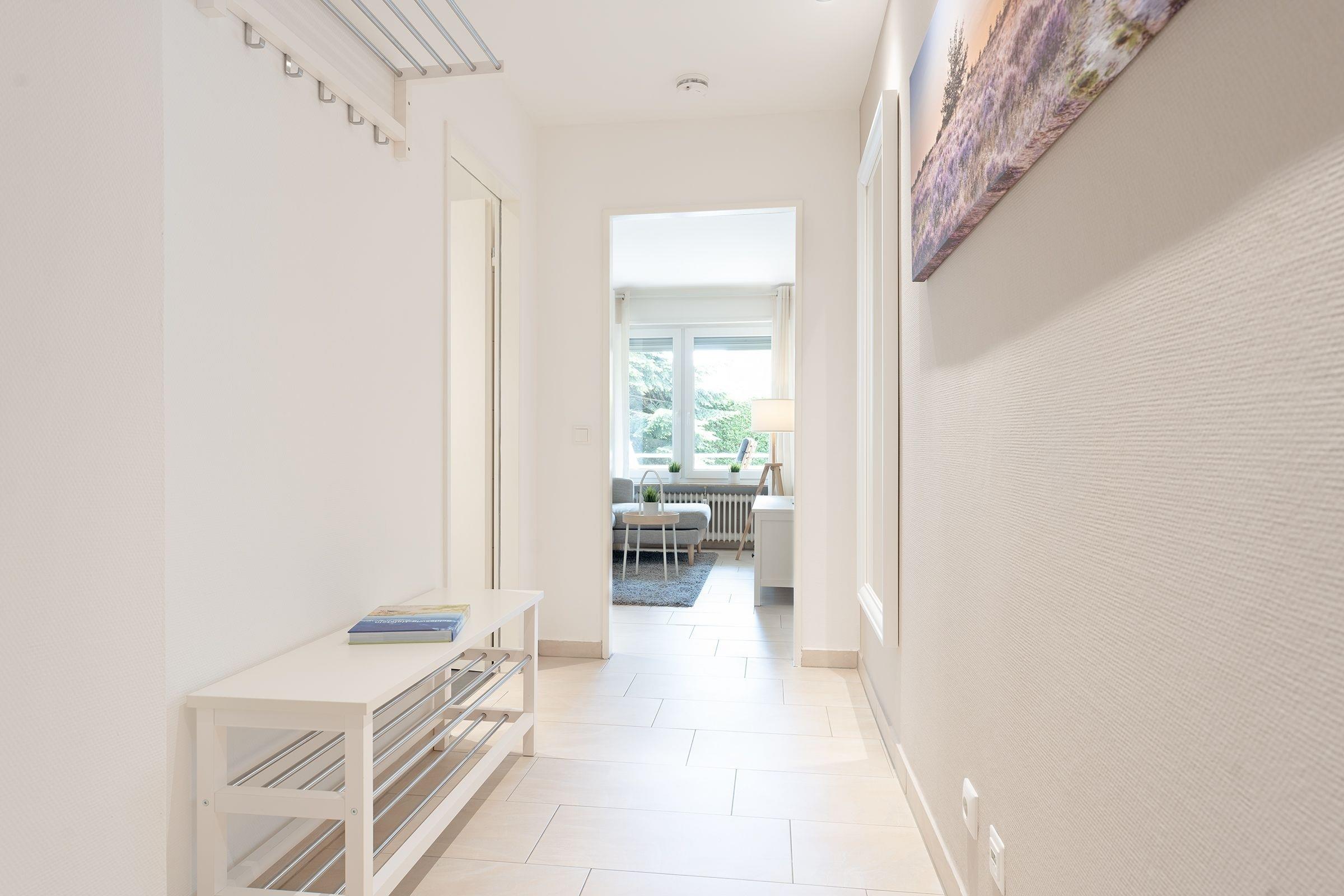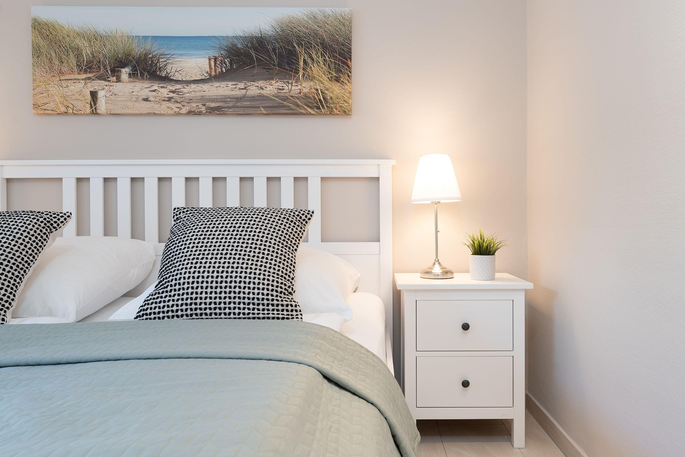 Herzlich willkommen in der Wohnung Küstenkind - hier trifft Moderne auf guten Geschmack. Der helle und großzügige Wohn-Essraum mit bequemer Couch und 43-Flachbildfernseher sowie integrierter, sehr gut ausgestatteter Küche lädt zu geselligen Abenden ein. Von hier gelangen Sie auf den Balkon mit Südwest-Ausrichtung. Lassen Sie den Urlaubstag gemütlich bei einem Glas Wein ausklingen, während Ihnen die frische Meeresluft um die Nase weht. Die beiden separaten Schlafzimmer verfügen jeweils über ein Doppelbett (2x 90x200 cm bzw. Boxspringbett mit 140x200 cm) sowie einen Kleiderschrank bzw. eine Kommode. In beiden Schlafzimmern befindet sich zudem ein 32-Flachbildfernseher. Das moderne Duschbad ist hell gefliest.