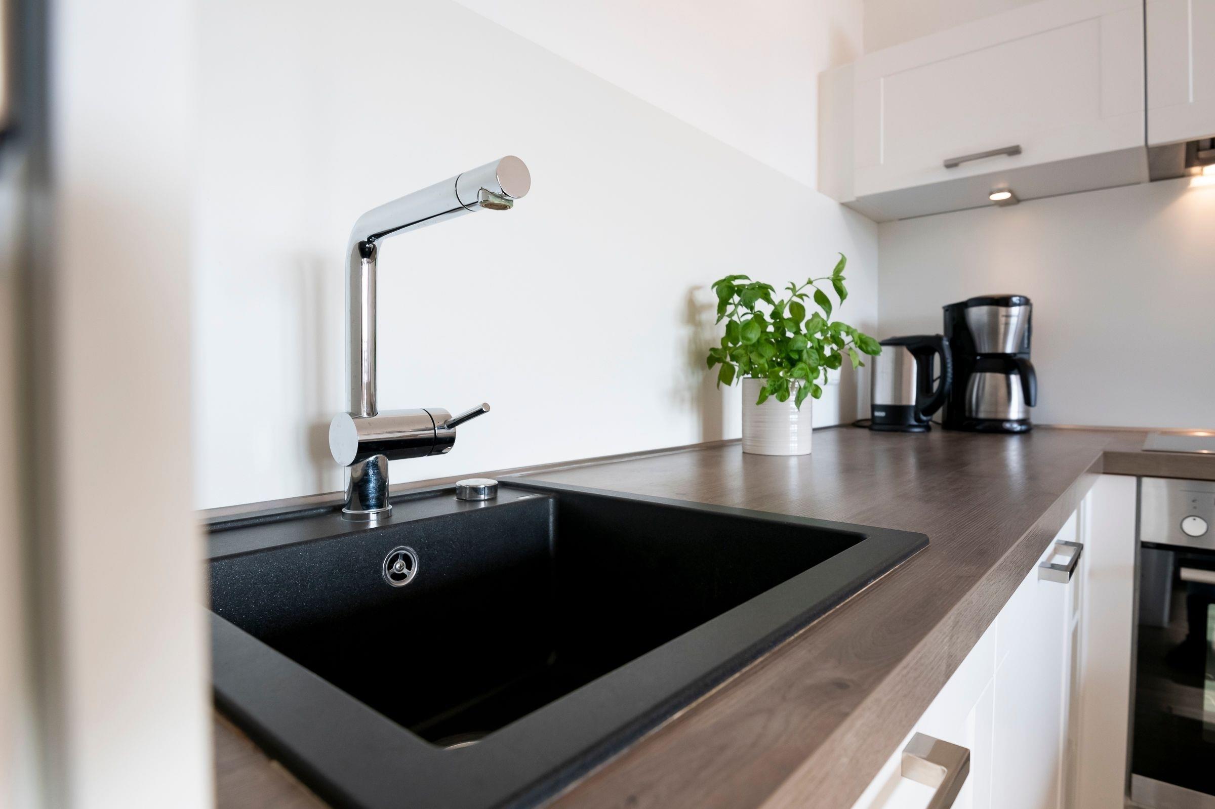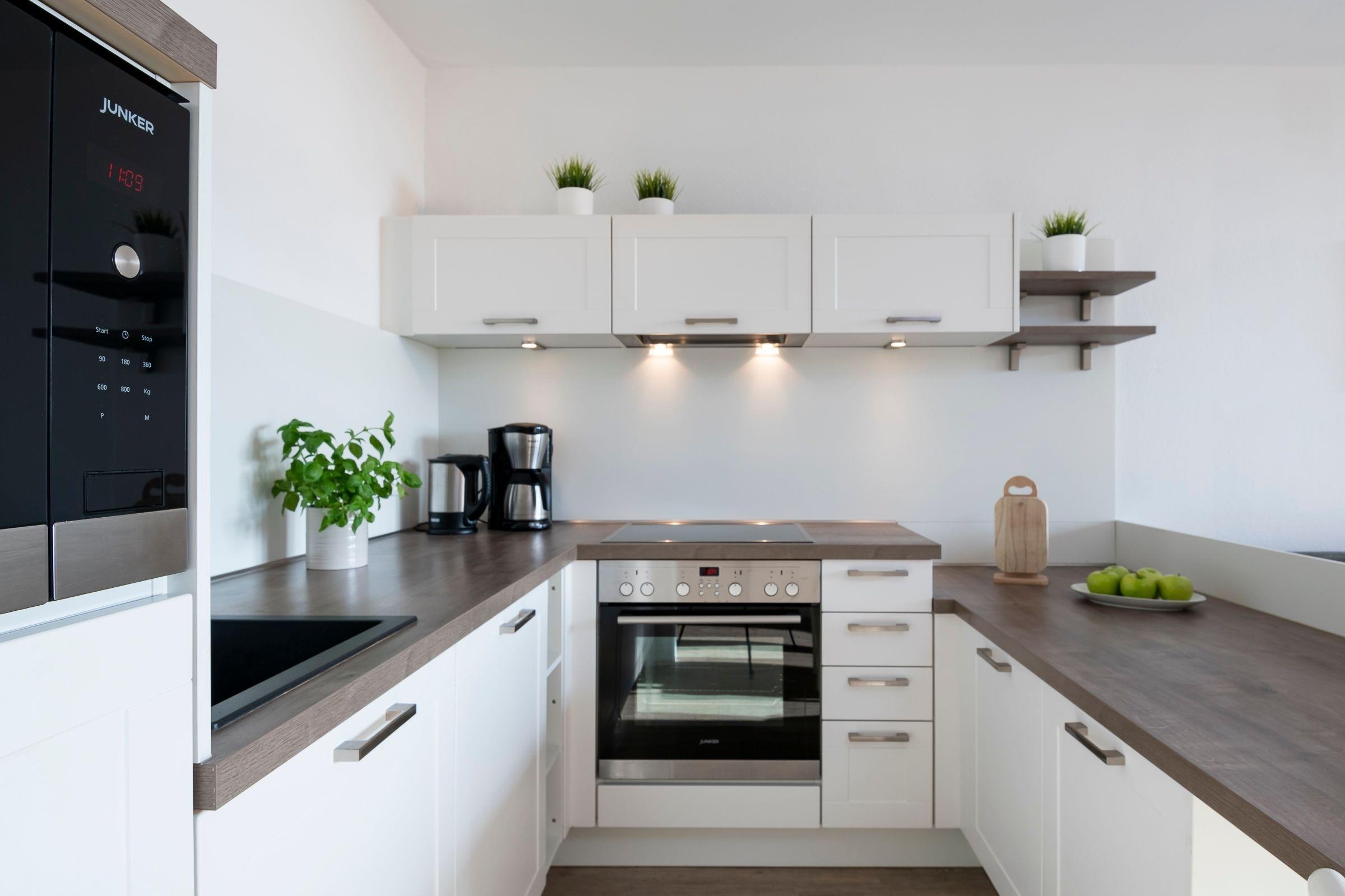 Ein Fahrstuhl bringt Sie bequem in Ihr Urlaubsdomizil im 1. Obergeschoss, welches Sie mit einem gut durchdachten Grundriss willkommen heißt. Durch einen kleinen Flur erreichen Sie über einige Stufen den offenen Wohn- und Kochbereich. Auf der kuscheligen Couch mit integrierter Kaltschaummatratze, die zur Nacht in ein bequemes Schlaflager verwandelt werden kann (ca. 145x200 cm), können Sie relaxen und die Füße hochlegen. Für Unterhaltung sorgen ein Bluetooth-Radio mit USB-Anschluss sowie der vorhandene WLAN-Zugang.