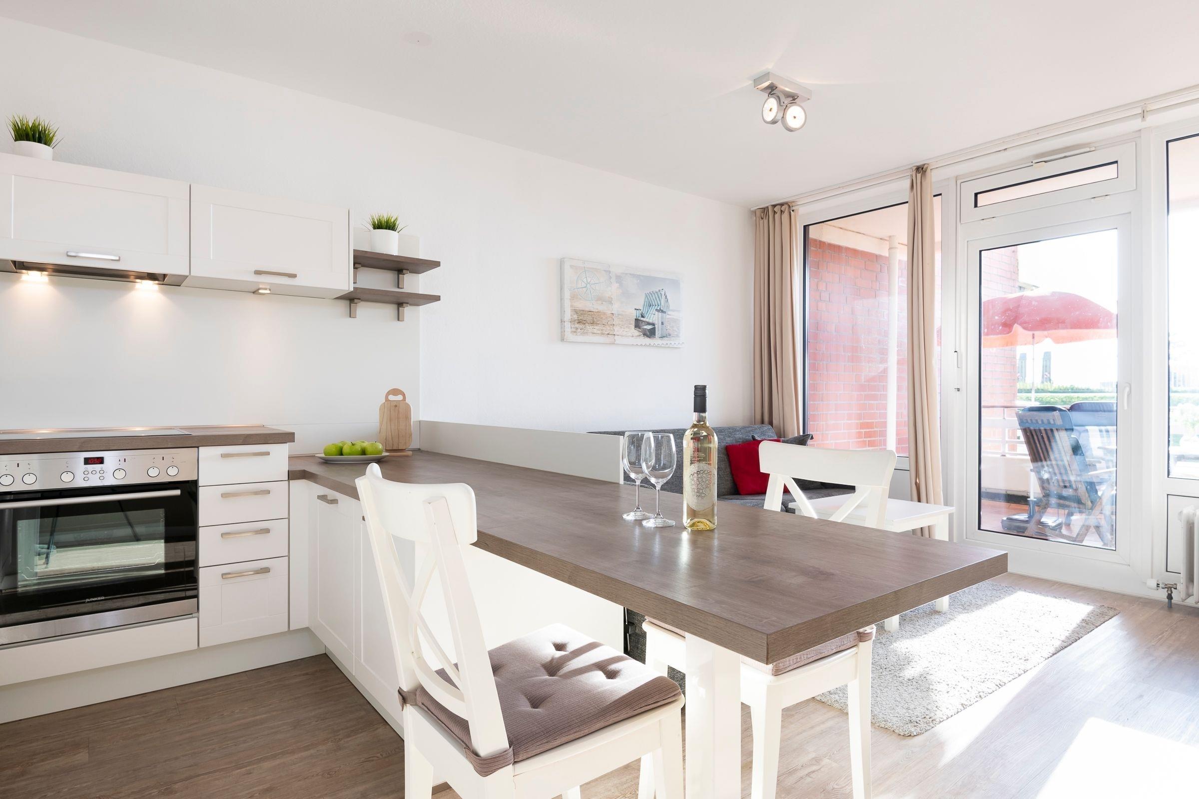 Verwöhnen Sie sich und Ihre Lieben mit selbst zubereiteten Mahlzeiten - in der offenen gut ausgestatteten Küche finden Sie alles, was Sie brauchen. Genießen Sie herrliche Stunden auf dem großzügigen möblierten Balkon und schmökern Sie in Ihrem Lieblingsbuch bei einem guten Glas Wein und gesunder Ostseeluft. Nach einem ereignisreichen Urlaubstag ziehen Sie sich dann ins separate Schlafzimmer mit Kleiderschrank zurück und tanken neue Energie im komfortablen Doppelbett (2x 90x200 cm). Das Duschbad komplettiert diese tolle Ferienwohnung.