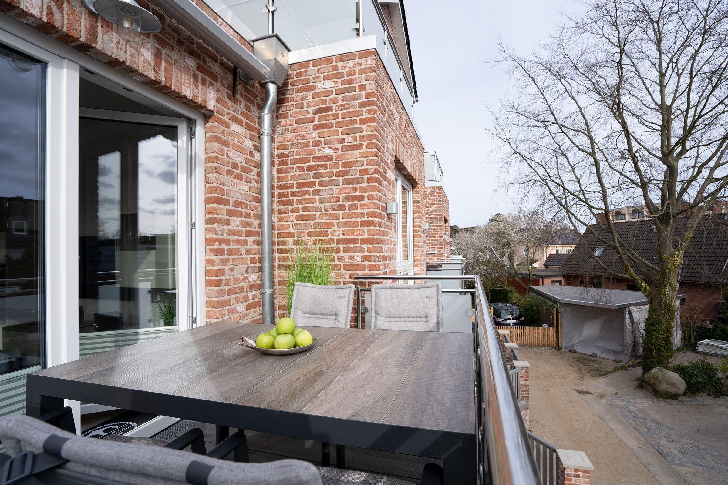 Moderne Ferienwohnung mit Balkon in Grömitz, nah am Strand und mit E-Ladesäule für e-Autos.