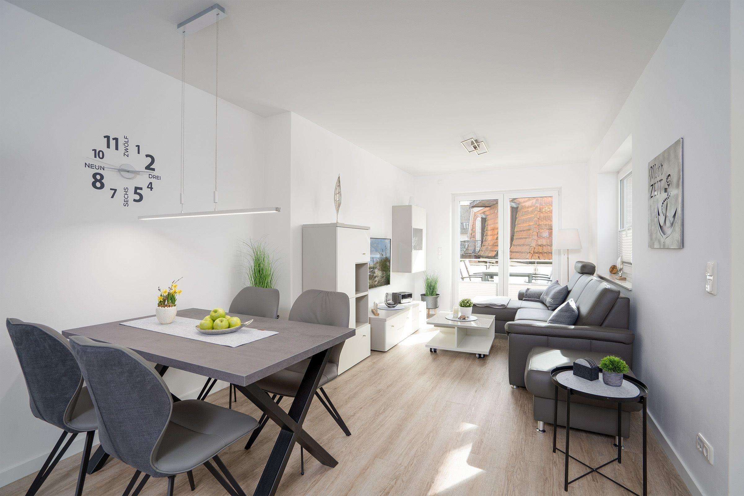 In dieser modern eingerichteten 3-Zimmer-Ferienwohnung mit Süd-Balkon können sich bis zu 4 Personen auf ca. 64 m² Wohnfläche vom Alltag erholen.