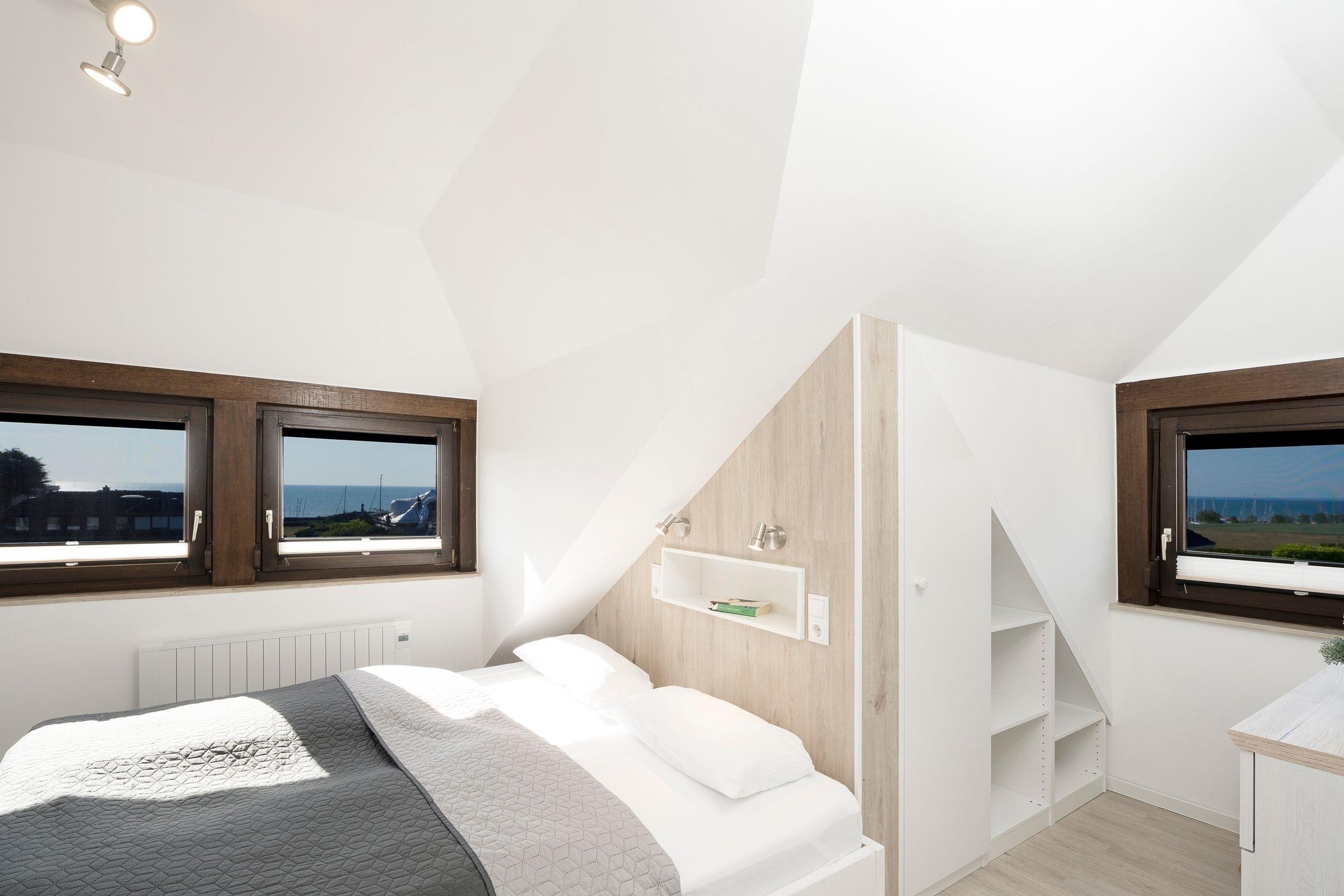 Sie werden durch die hellen großen Fenster im großzügigen Wohn-, Ess- und Kochbereich von der Sonne begrüßt. Die möblierte Terrasse mit Süd-Ost Ausrichtung punktet mit Blick zur Ostsee. Hier können Sie es sich windgeschützt im Strandkorb gemütlich machen und die Sonne genießen. Kleine Feriengäste werden sich besonders über den Garten zum Toben freuen. Im Obergeschoss befindet sich ein Schlafzimmer mit großem Doppelbett (180x200cm), Kleiderschrank und TV. Ein 2. Schlafzimmer bietet mit 2 Einzelbetten (je 90x200cm), Kleiderschrank und TV ebenfalls Platz für 2 Personen. Ein helles Duschbad und ein zusätzliches Gäste-WC runden die Ausstattung dieser Ferienimmobilie ab.