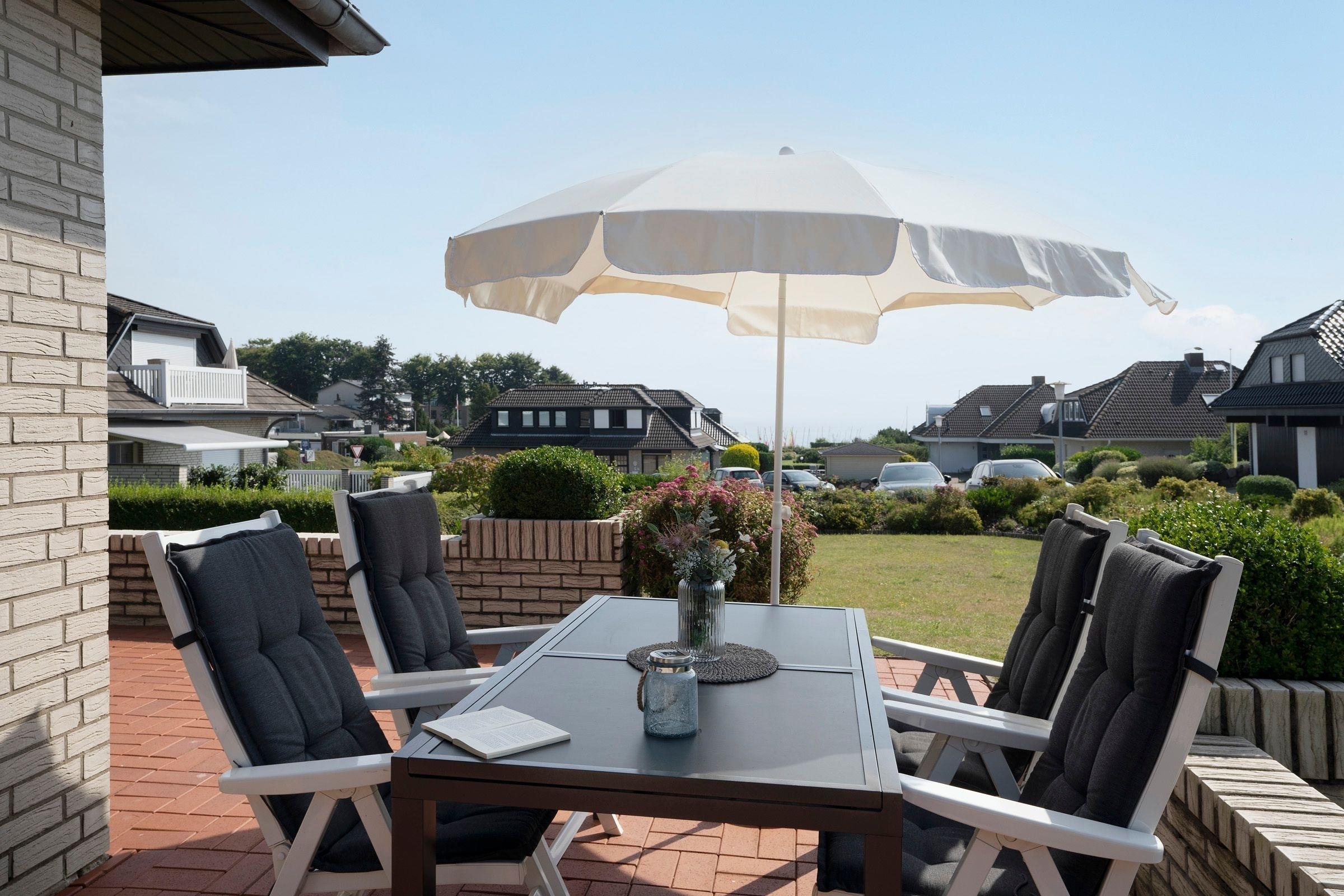 Modernes Ferienhaus mit Meerblick, Terrasse und Garten nahe dem Yachthafen in Grömitz für erholsamen Ostseeurlaub.